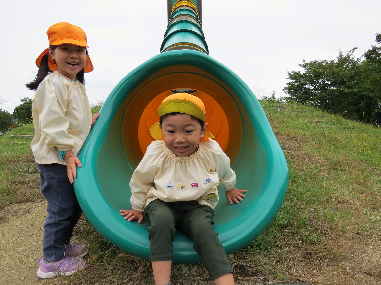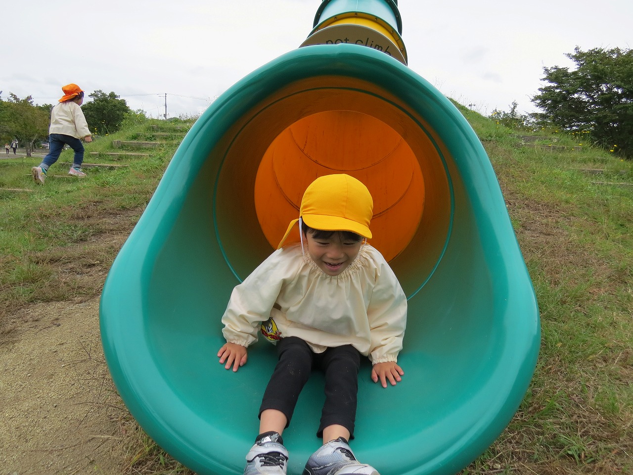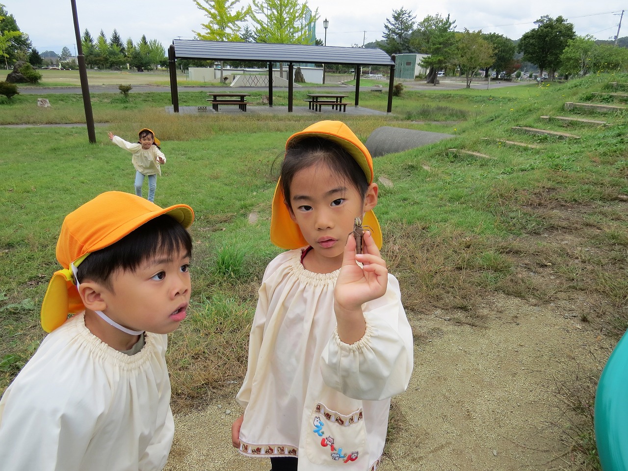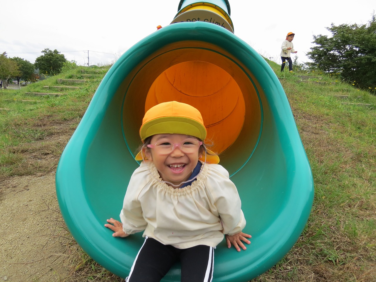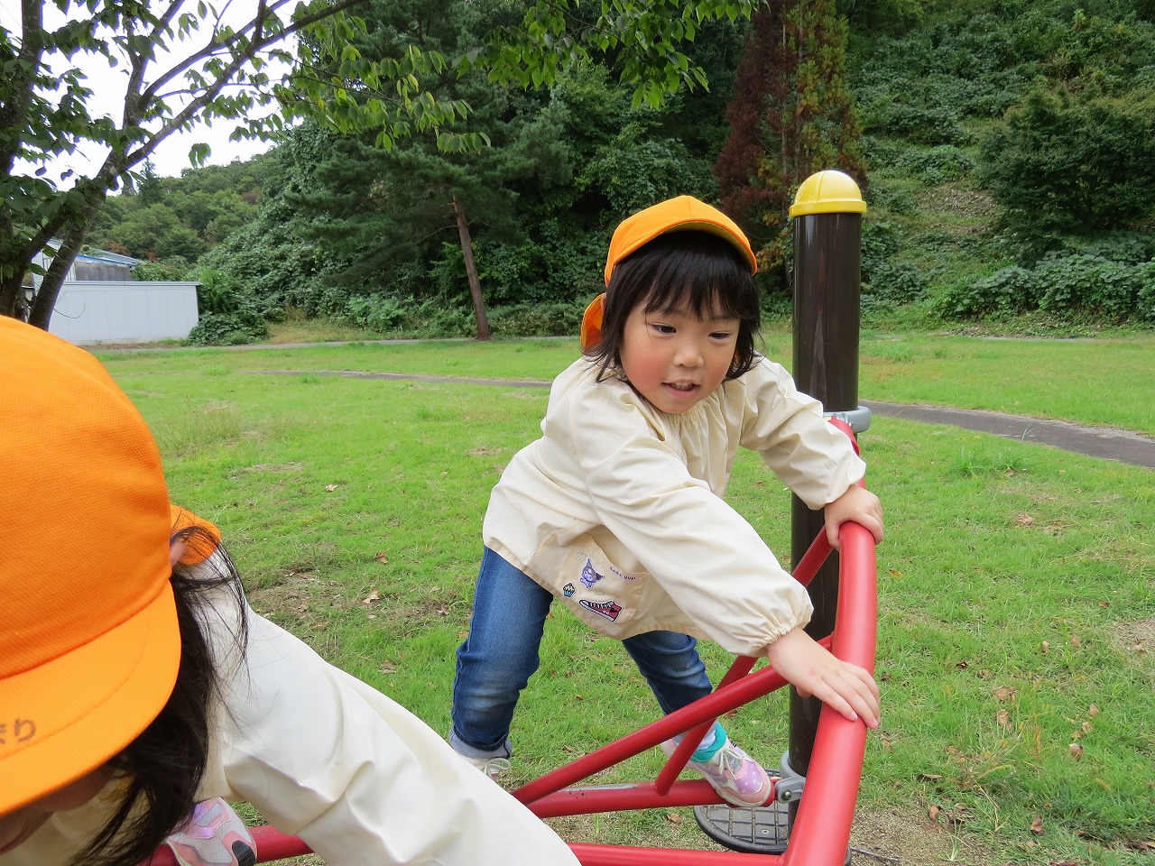 10月14日(火)は、すみれ組で園外保育に出かけました。目的地は高畠中央公園です。子どもたちもワクワクしながらバスに乗り込み出かけました。公園では、何度も長い滑り台を滑ることを楽しんだり、アスレチック遊具での遊びを楽しみました。たくさん体を動かして遊び、「お腹すいたー!」と給食の先生に作ってもらったお弁当はあっという間に完食でした。昼食に入った頃にパラパラと雨が落ちてきて心配しましたが、すぐに降りやみホッと一安心。楽しい時間を過ごしてくることができました。