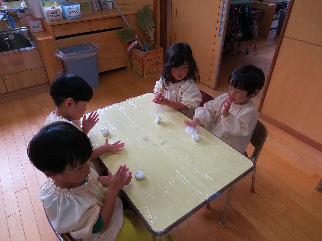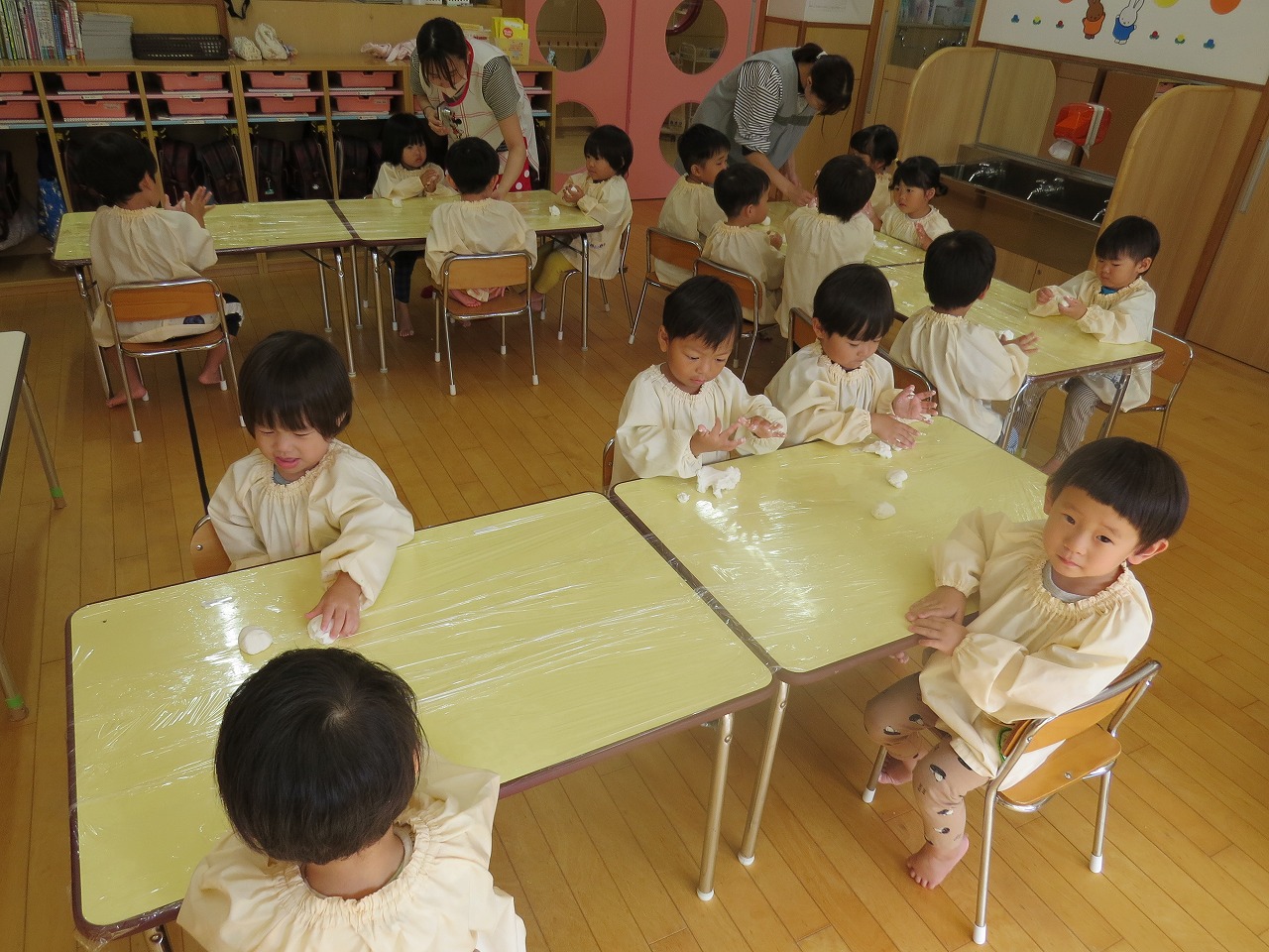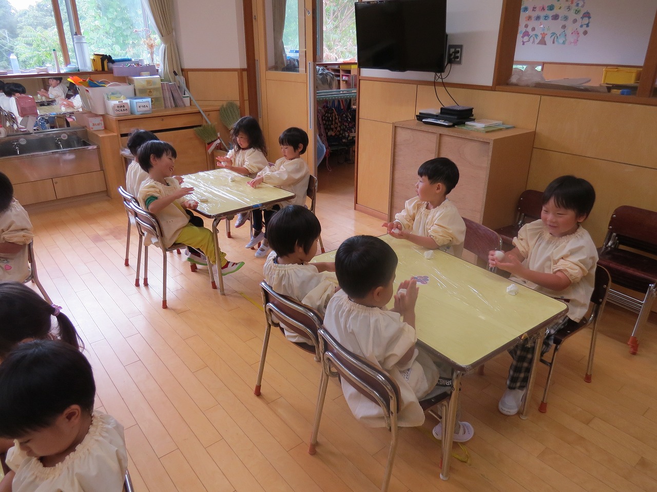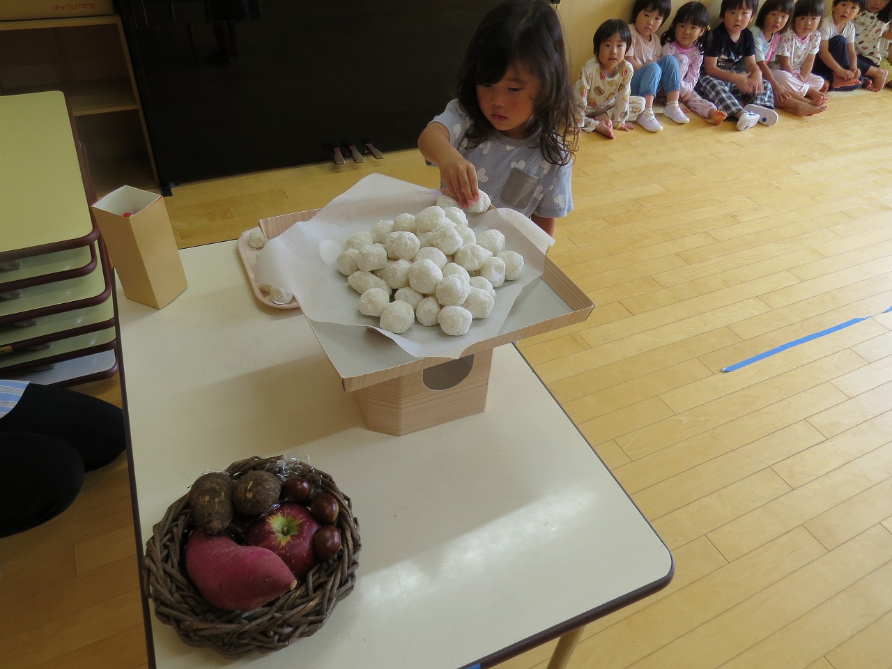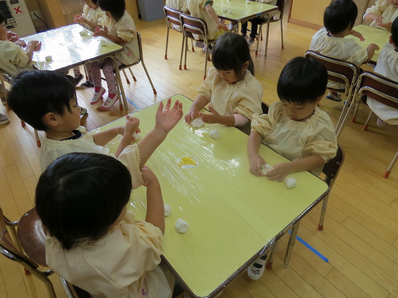 今年は10月6日が十五夜ということで、さくら組さんとぱんだ組さんでお月見団子作りをしました。コロコロとお団子を丸めて、お月さまにお供えするお団子作りを楽しみました。十五夜は、一年で最も月が美しい日であり、秋の収穫を喜び感謝する日でもあります。日本ならではの行事に触れながら、感謝する心を大切にしていきたいですね。ちなみに、十三夜もあるようなので、ご家族で楽しんでみてはいかがでしょうか?
