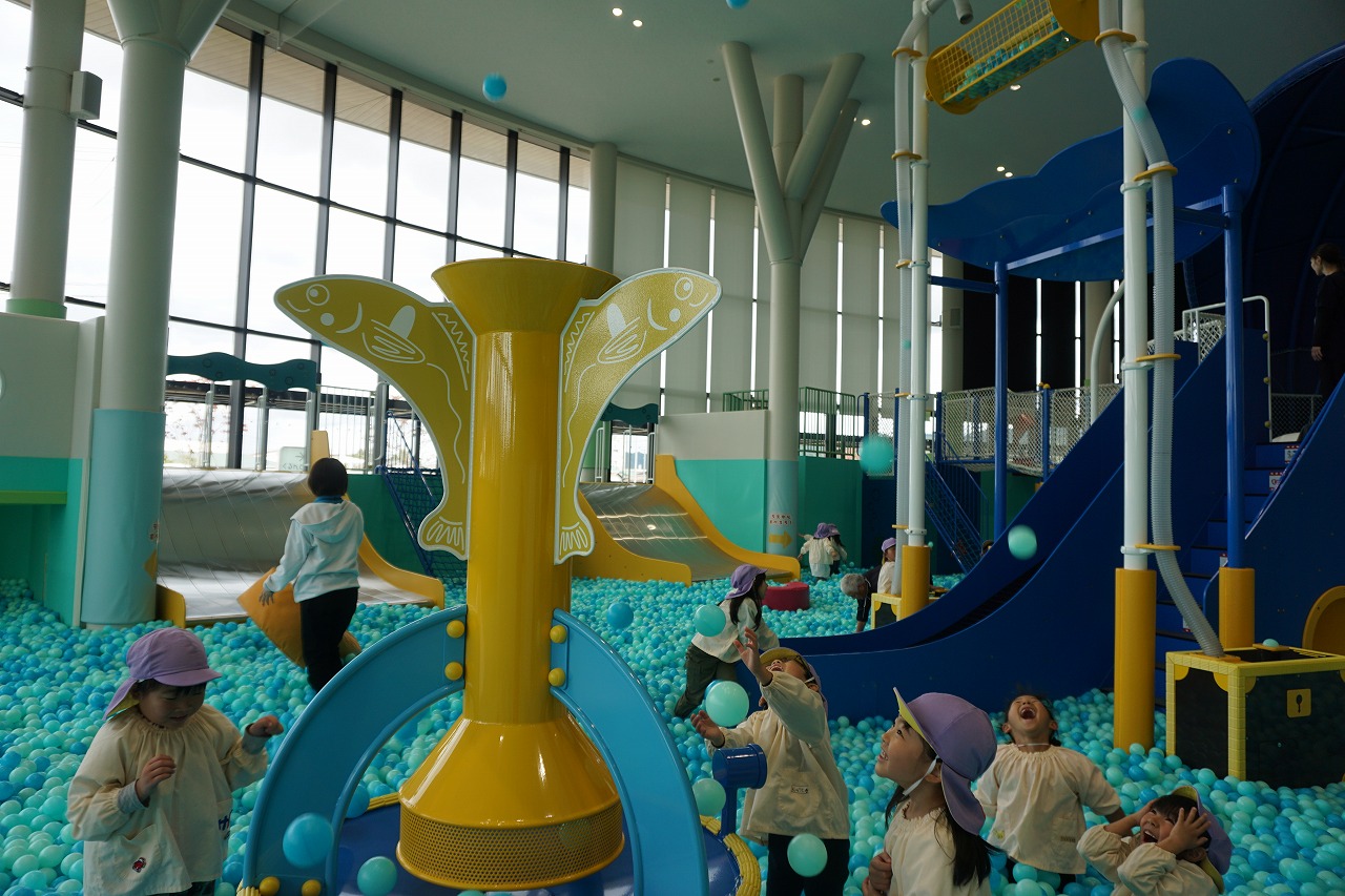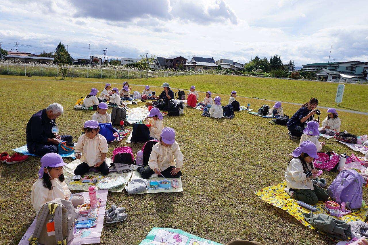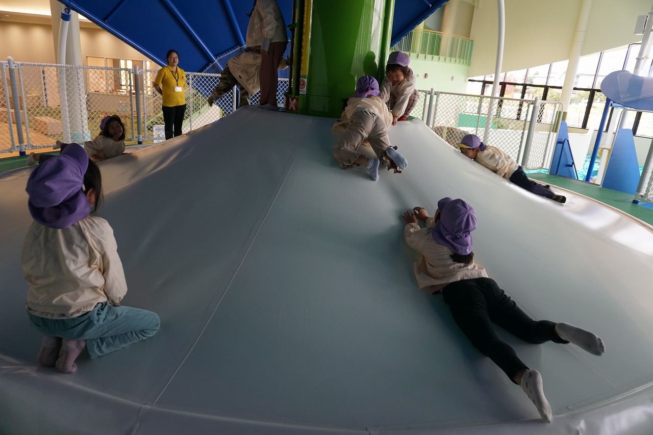 10月21日(火)は、ふじ組さんで長井市にある遊びと学びの交流施設くるんとに遊びに行きました。ほとんどの子が遊びにいったことがある様子でしたが、お友だちと一緒に行くのは特別!お友だちと誘いあいながら大きなボールプールに飛び込み、思い思いに遊んでいました。ハロウィンも近いということで、バッグ作りイベントに参加して楽しむ子の姿も見られました。屋外の広場でも大きな滑り台を滑ったり、ブランコなどの遊具を友だち同士で楽しんでいました。お昼は、持参したシートを敷いてお家の方の愛情たっぷりのお弁当を食べることもでき、大喜びの子どもたち!たくさん身体を動かして遊び、子どもたちも「楽しかった!!」と大満足な園外保育となったようです。