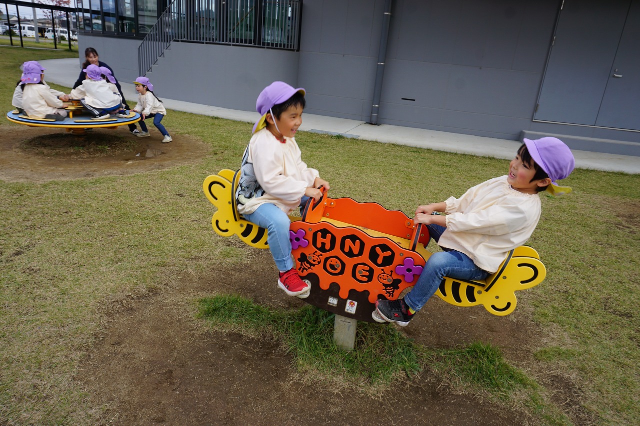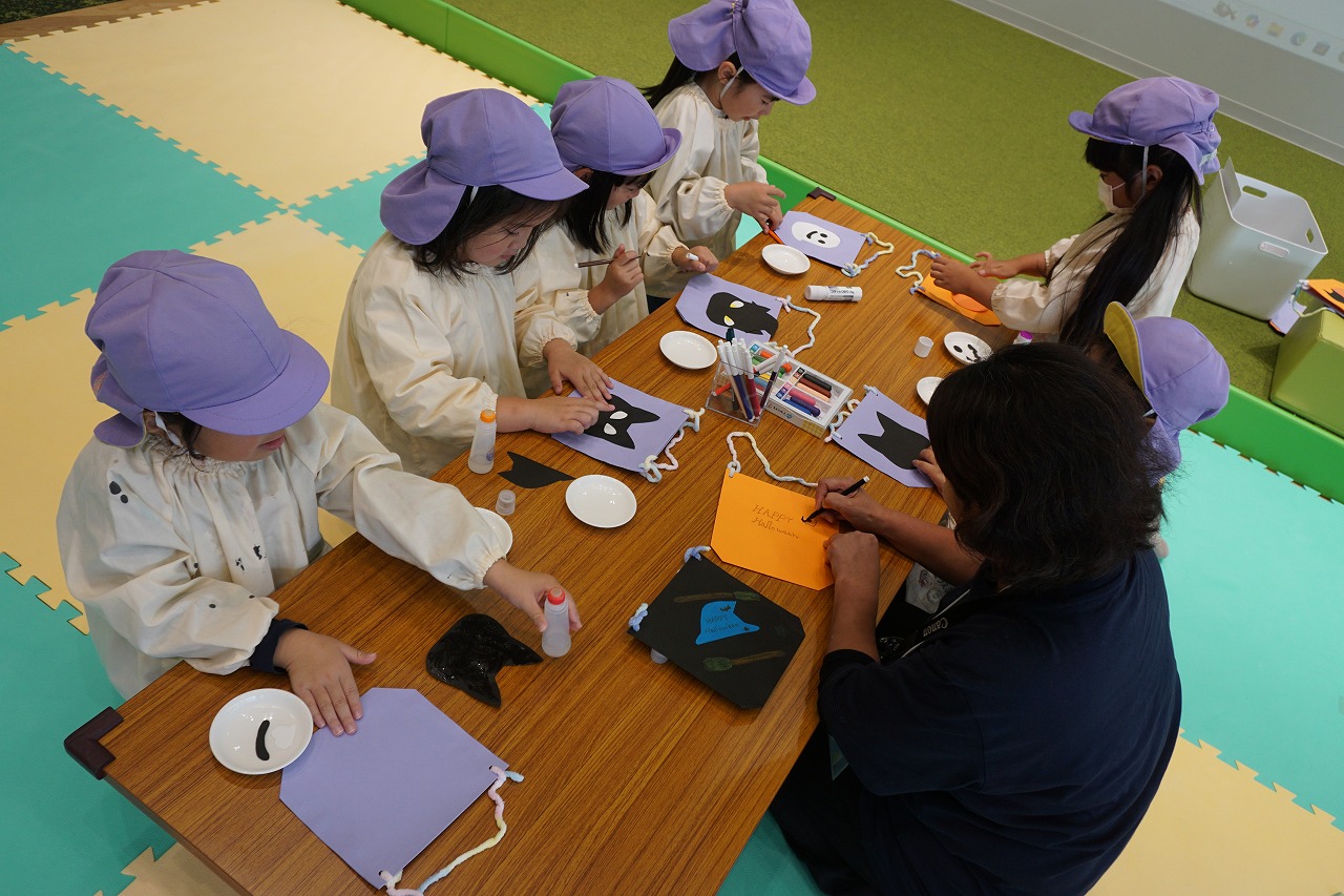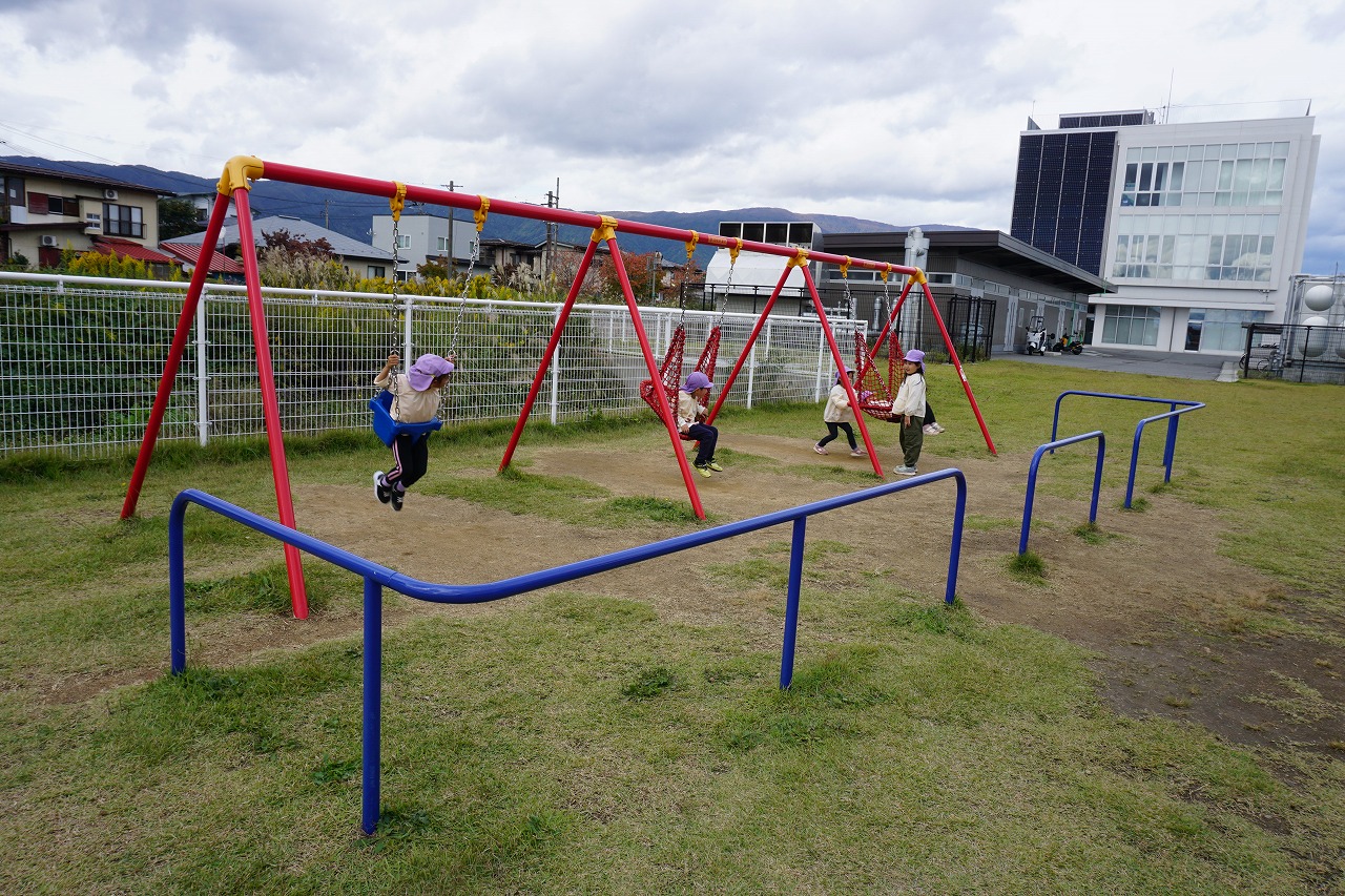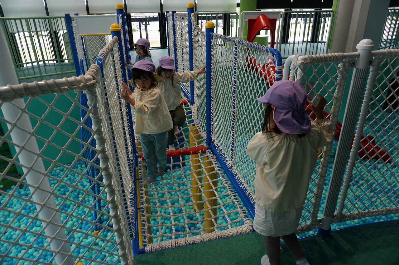 10月21日(火)は、ふじ組さんで長井市にある遊びと学びの交流施設くるんとに遊びに行きました。ほとんどの子が遊びにいったことがある様子でしたが、お友だちと一緒に行くのは特別!お友だちと誘いあいながら大きなボールプールに飛び込み、思い思いに遊んでいました。ハロウィンも近いということで、バッグ作りイベントに参加して楽しむ子の姿も見られました。屋外の広場でも大きな滑り台を滑ったり、ブランコなどの遊具を友だち同士で楽しんでいました。お昼は、持参したシートを敷いてお家の方の愛情たっぷりのお弁当を食べることもでき、大喜びの子どもたち!たくさん身体を動かして遊び、子どもたちも「楽しかった!!」と大満足な園外保育となったようです。