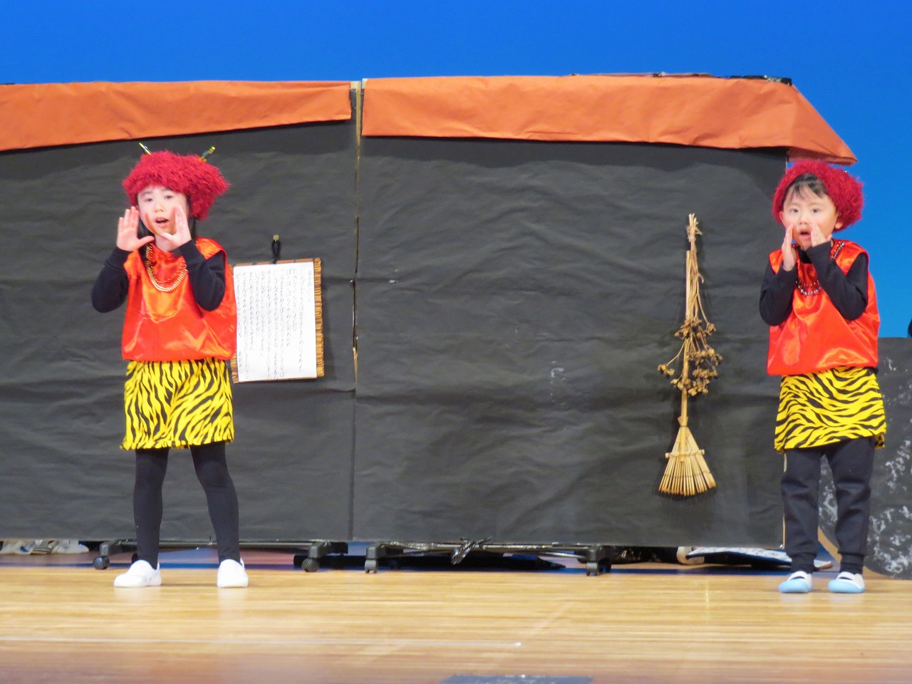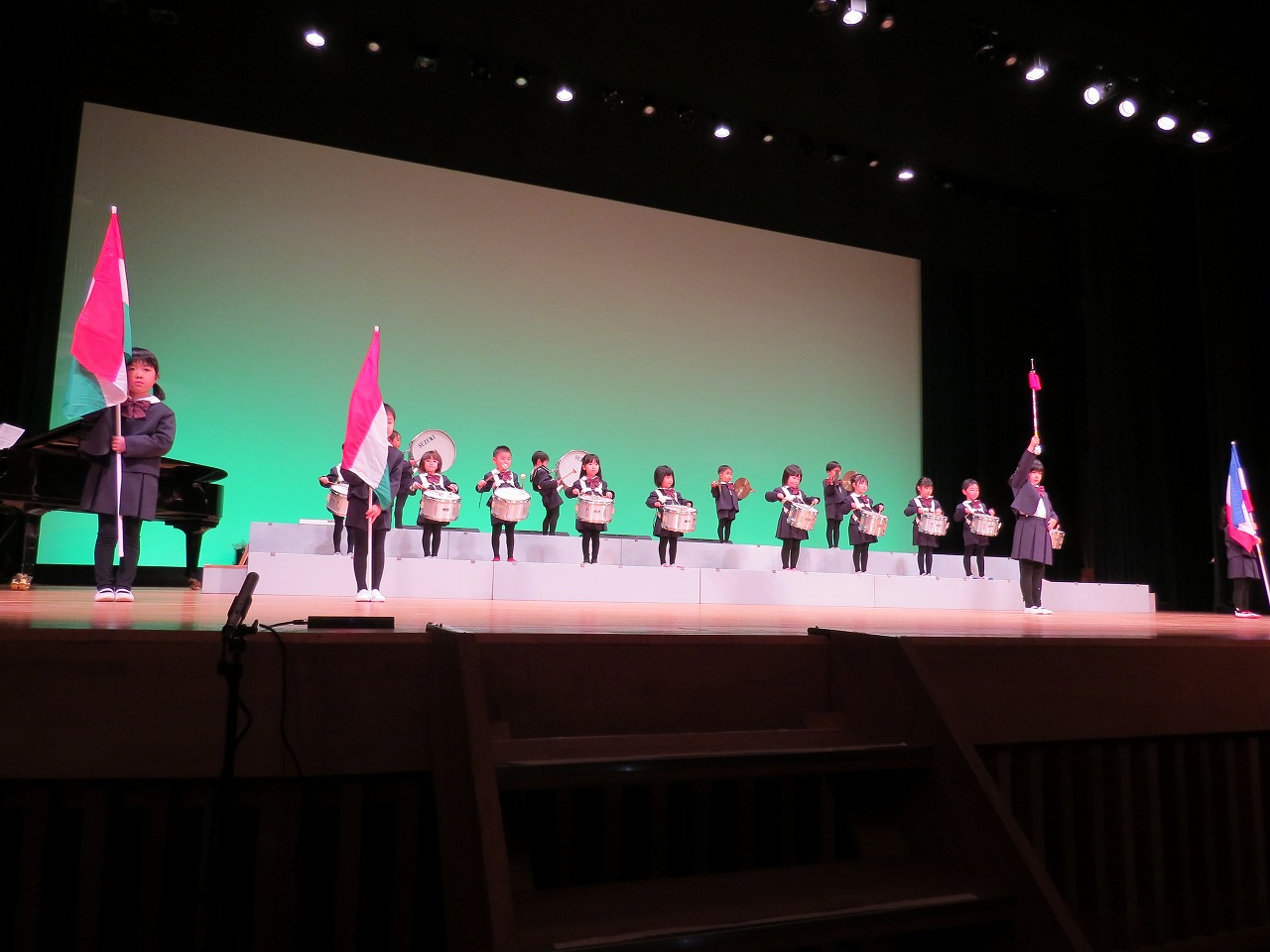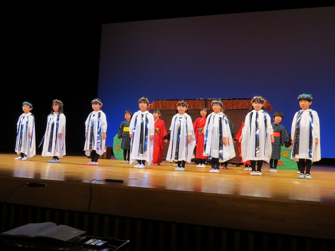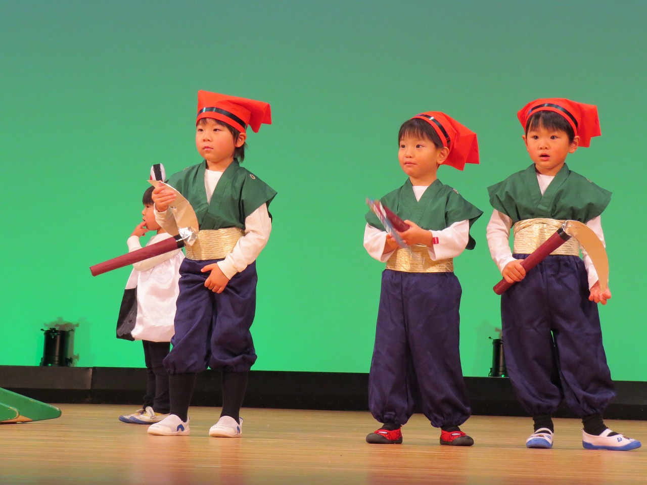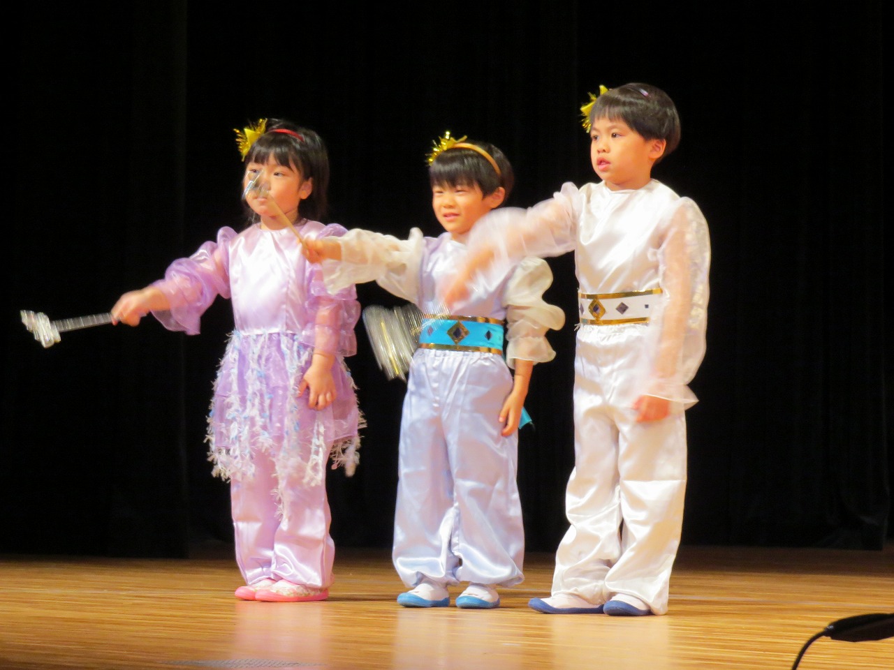 12月18日(木)は発表会を行いました。今年一年こどもたちが頑張ってきたことを保護者の方にも見て頂けるよう、それぞれのクラスが工夫しながら取り組んできました。さくら組さんは合奏や歌、オペレッタ「おむすびころりん」に挑戦!すみれ組さんは鼓隊演奏とミュージカル「シンデレラ」に挑戦しました。そして、ふじ組さんはアンサンブル奏「ディズニーメドレー」と劇「泣いたあかおに」を年長児らしく発表してくれました!本番の舞台裏では、「緊張するー」とドキドキする子どもたちの様子が見られましたが、いざ舞台の上に立つと、みんな一生懸命に笑顔で演じることができました!発表が終わると「楽しかったー!!」という声がたくさん聞こえ、達成感や喜びを感じ、大きな自信へと繋がったようです。「また発表会やりたい!」という子もいた程、一人ひとり輝くことができました。