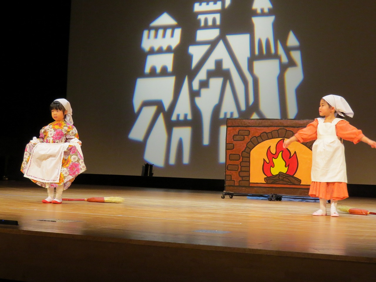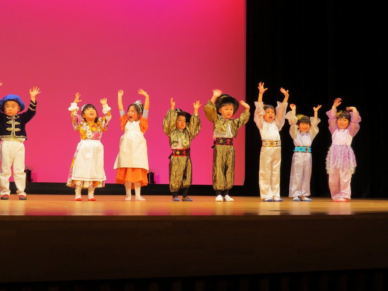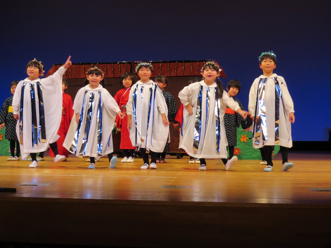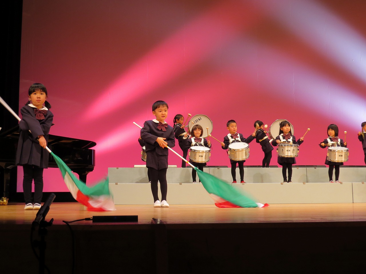 12月18日(木)は発表会を行いました。今年一年こどもたちが頑張ってきたことを保護者の方にも見て頂けるよう、それぞれのクラスが工夫しながら取り組んできました。さくら組さんは合奏や歌、オペレッタ「おむすびころりん」に挑戦!すみれ組さんは鼓隊演奏とミュージカル「シンデレラ」に挑戦しました。そして、ふじ組さんはアンサンブル奏「ディズニーメドレー」と劇「泣いたあかおに」を年長児らしく発表してくれました!本番の舞台裏では、「緊張するー」とドキドキする子どもたちの様子が見られましたが、いざ舞台の上に立つと、みんな一生懸命に笑顔で演じることができました!発表が終わると「楽しかったー!!」という声がたくさん聞こえ、達成感や喜びを感じ、大きな自信へと繋がったようです。「また発表会やりたい!」という子もいた程、一人ひとり輝くことができました。