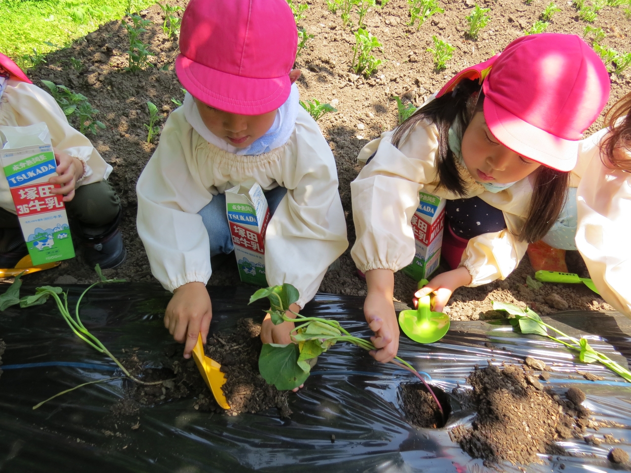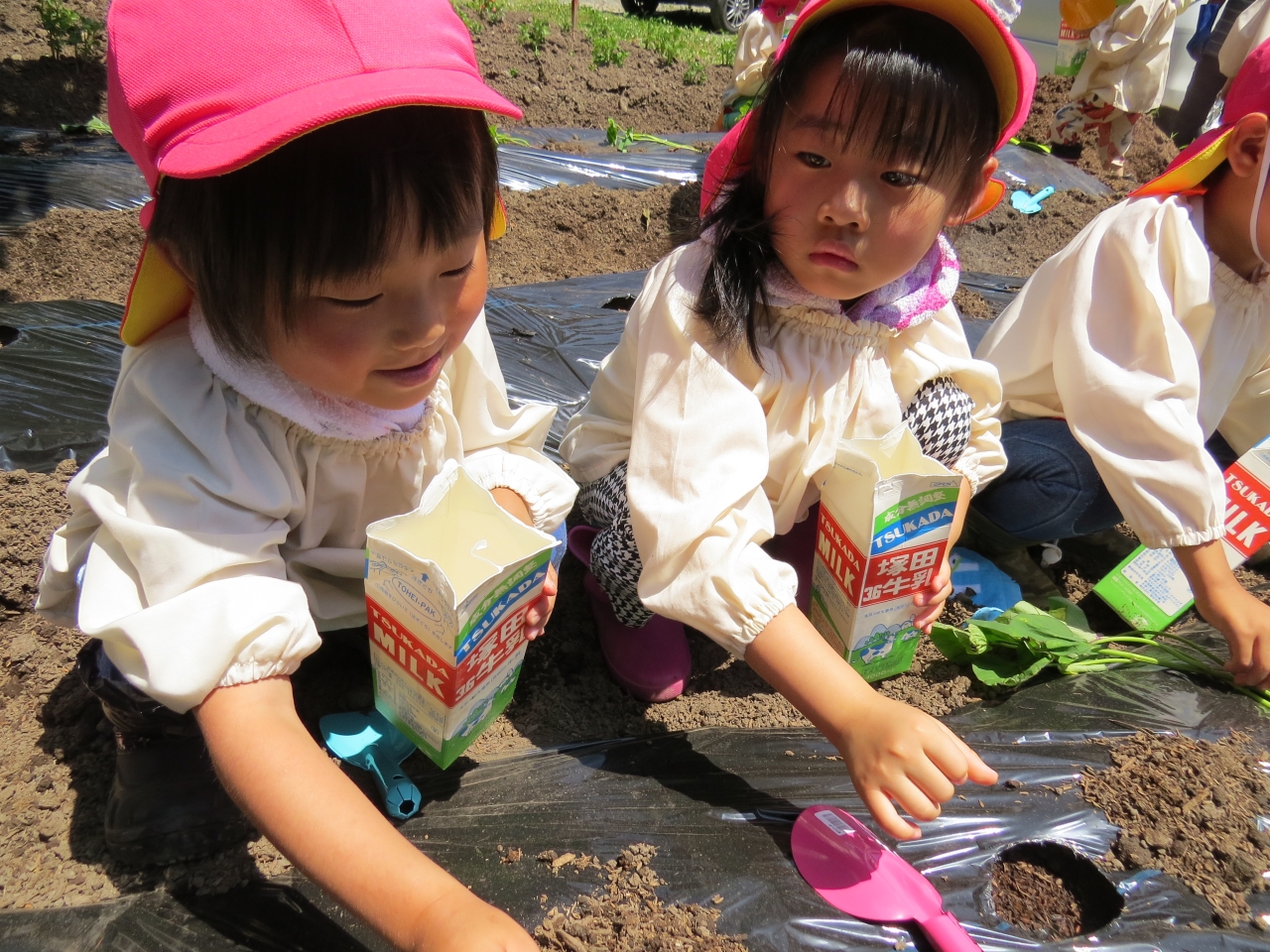 さつまいもの苗を見たことがない子も多く、苗を植えるのも初めてという子がほとんどでした。