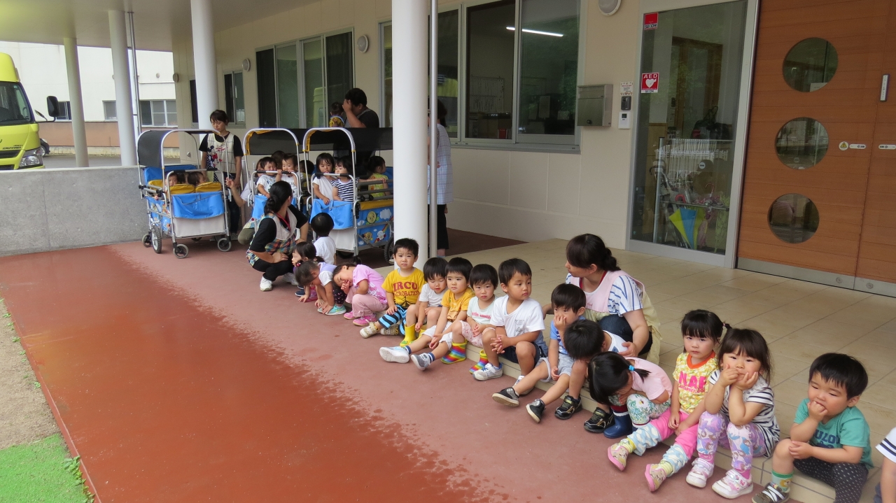 幼児組さんが代表で、プールわきのテントで参加をし、乳児組さんは、玄関のエントランスで見学をしました。