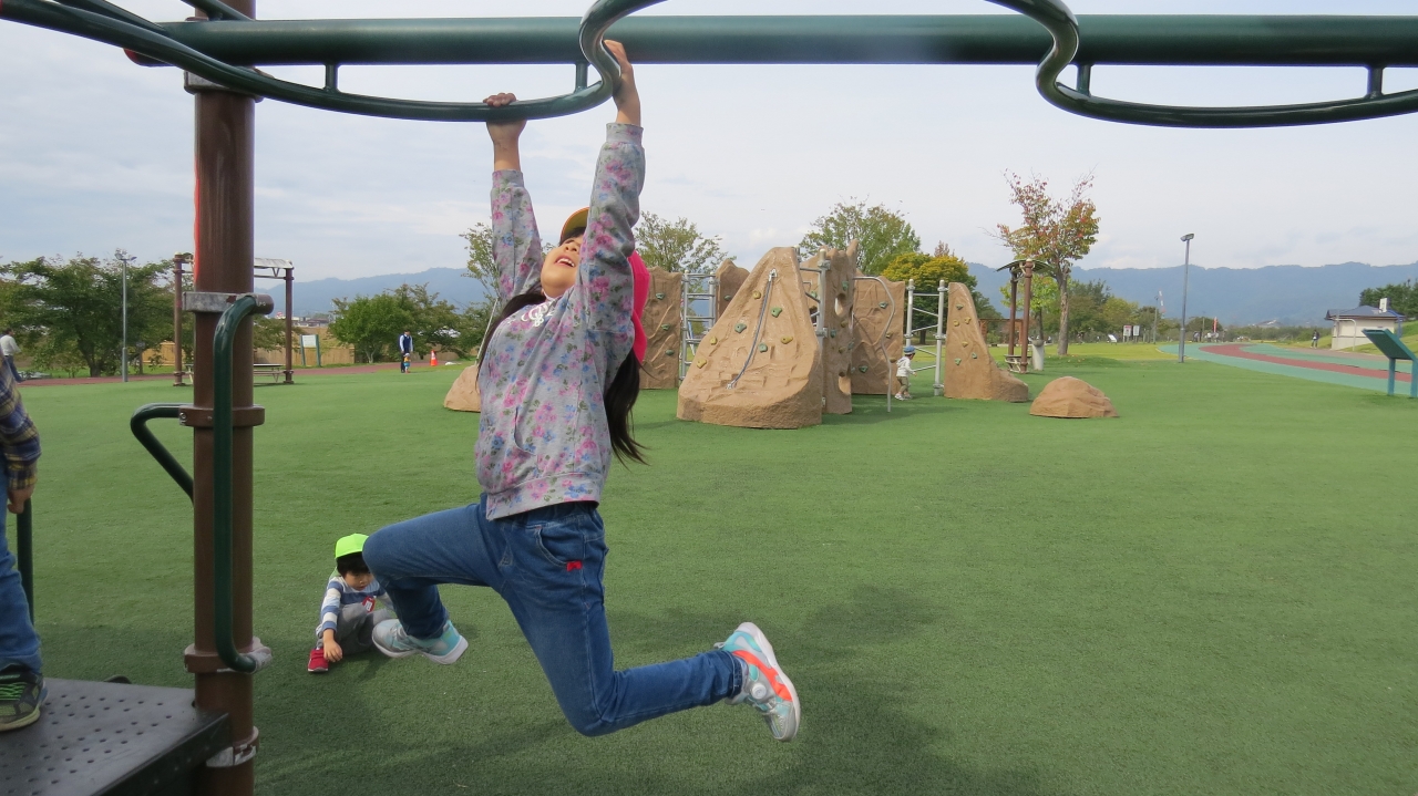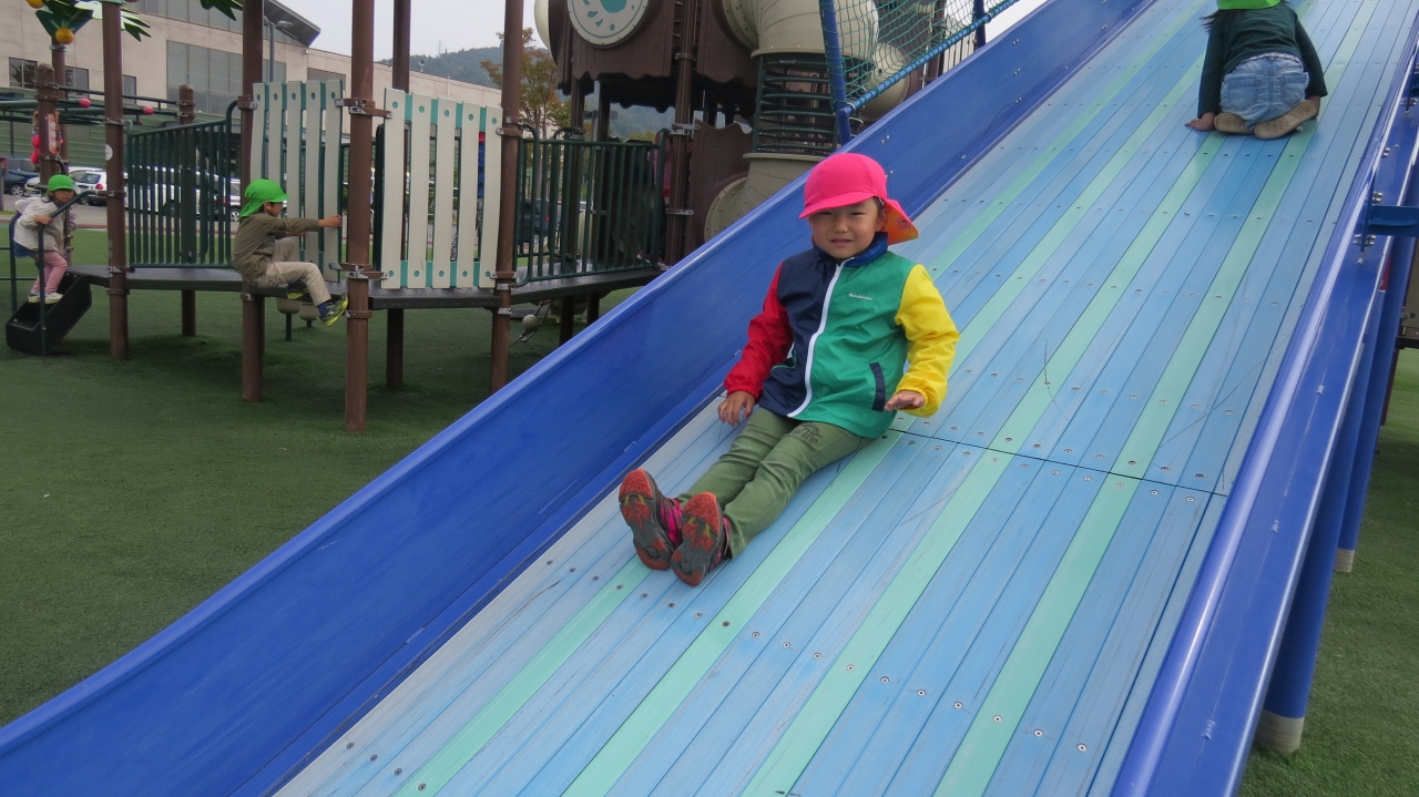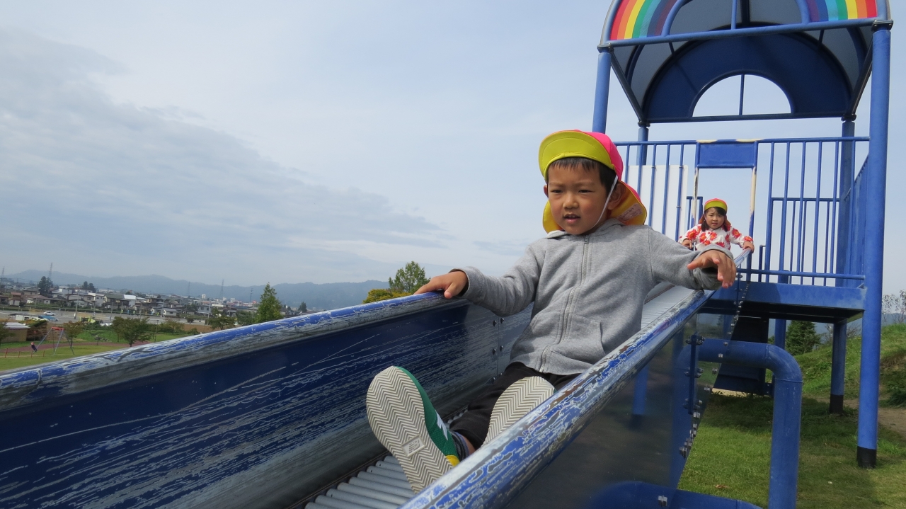 岩山登りや滑り台など、さまざまな遊具に挑戦し体をたくさん動かして遊びました。