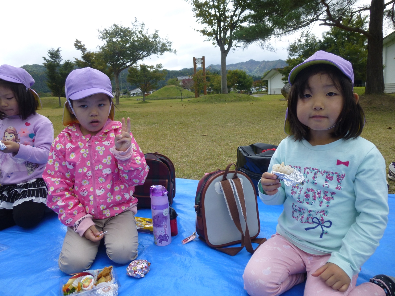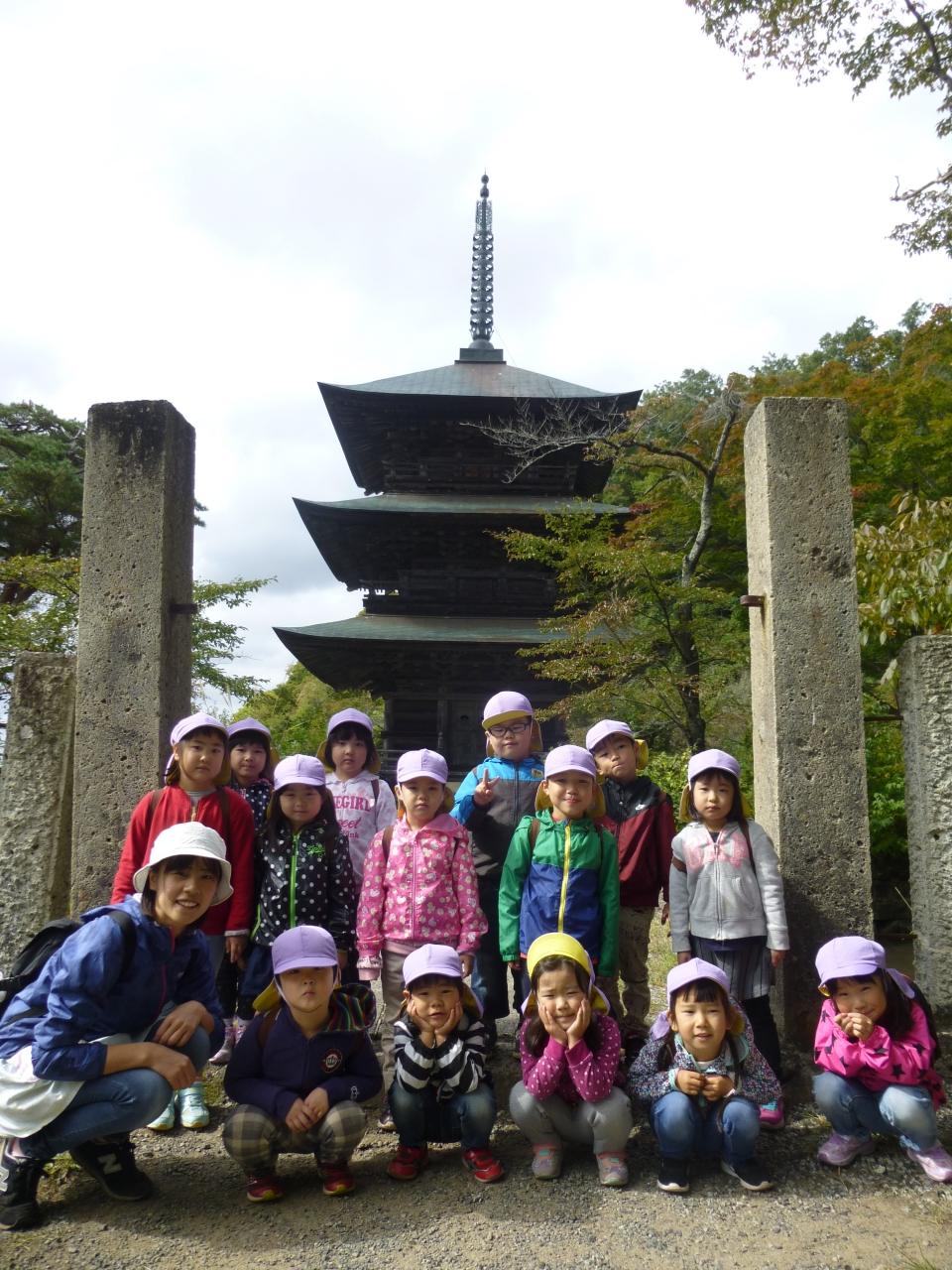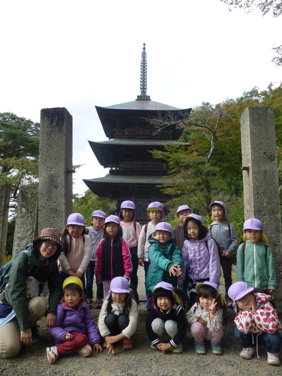 10月19日にすみれ組さん(年中児)が高畠町の安久津八幡宮と歴史公園に園外保育にいってきました。