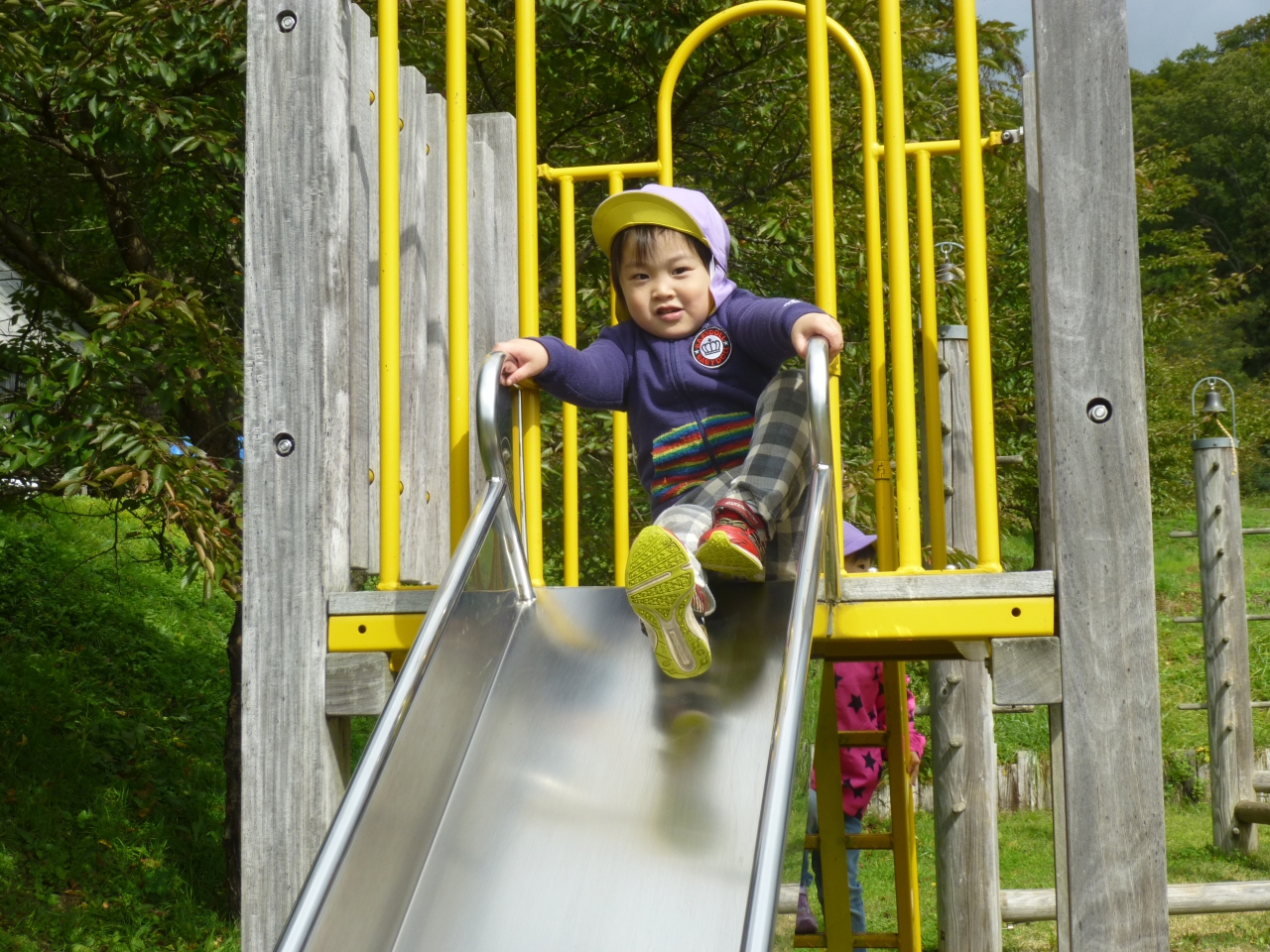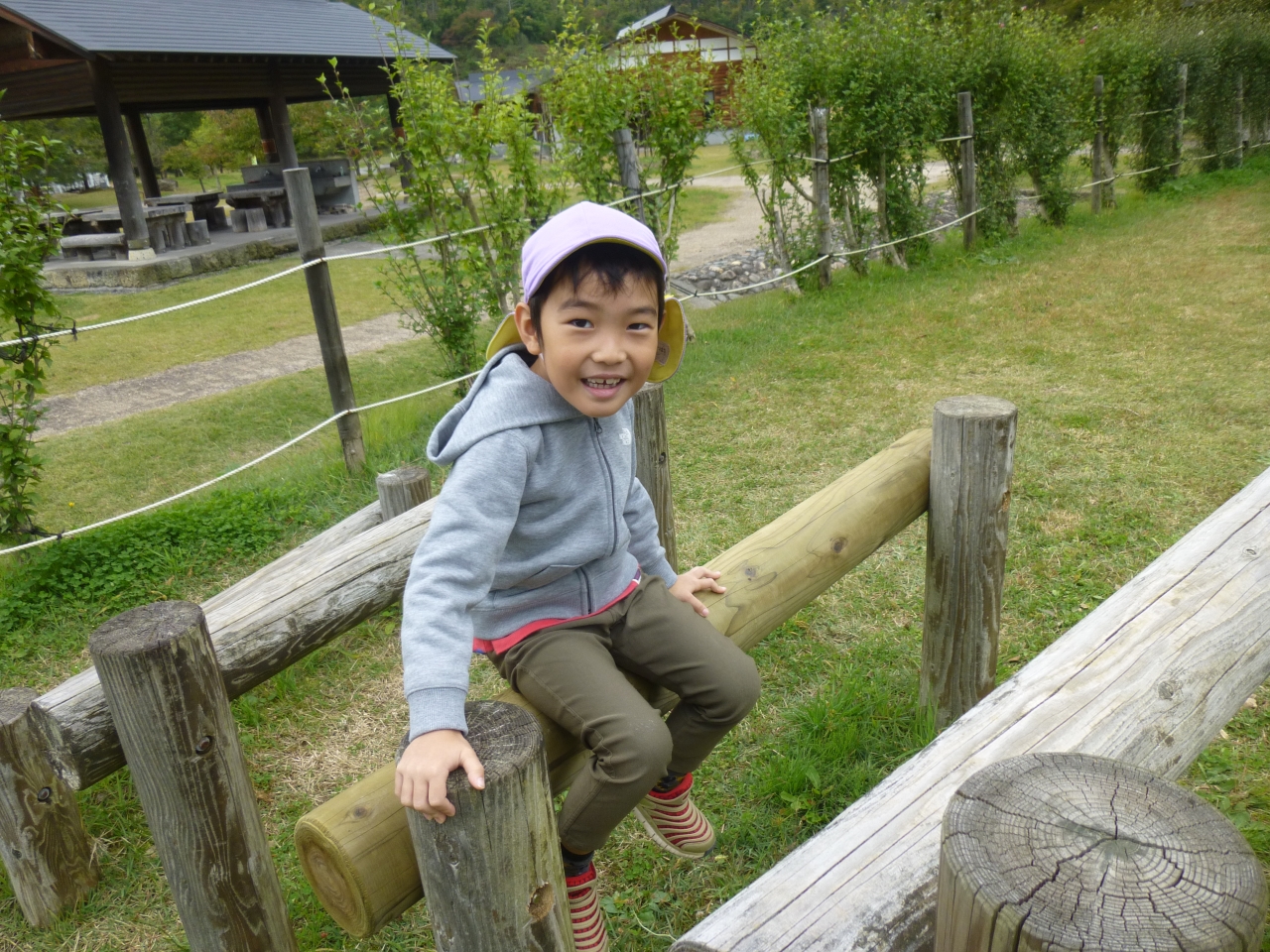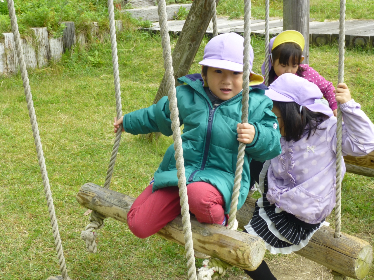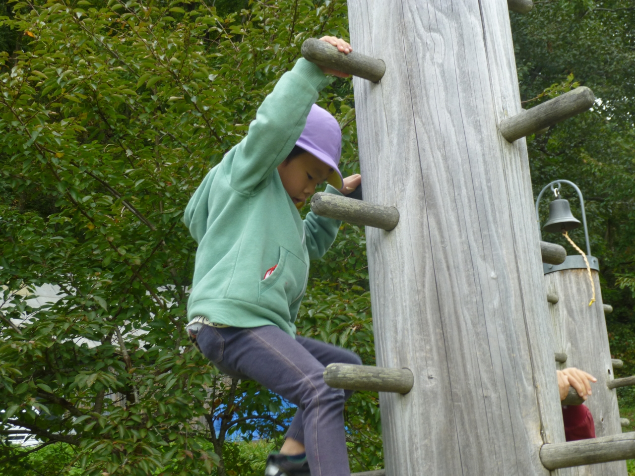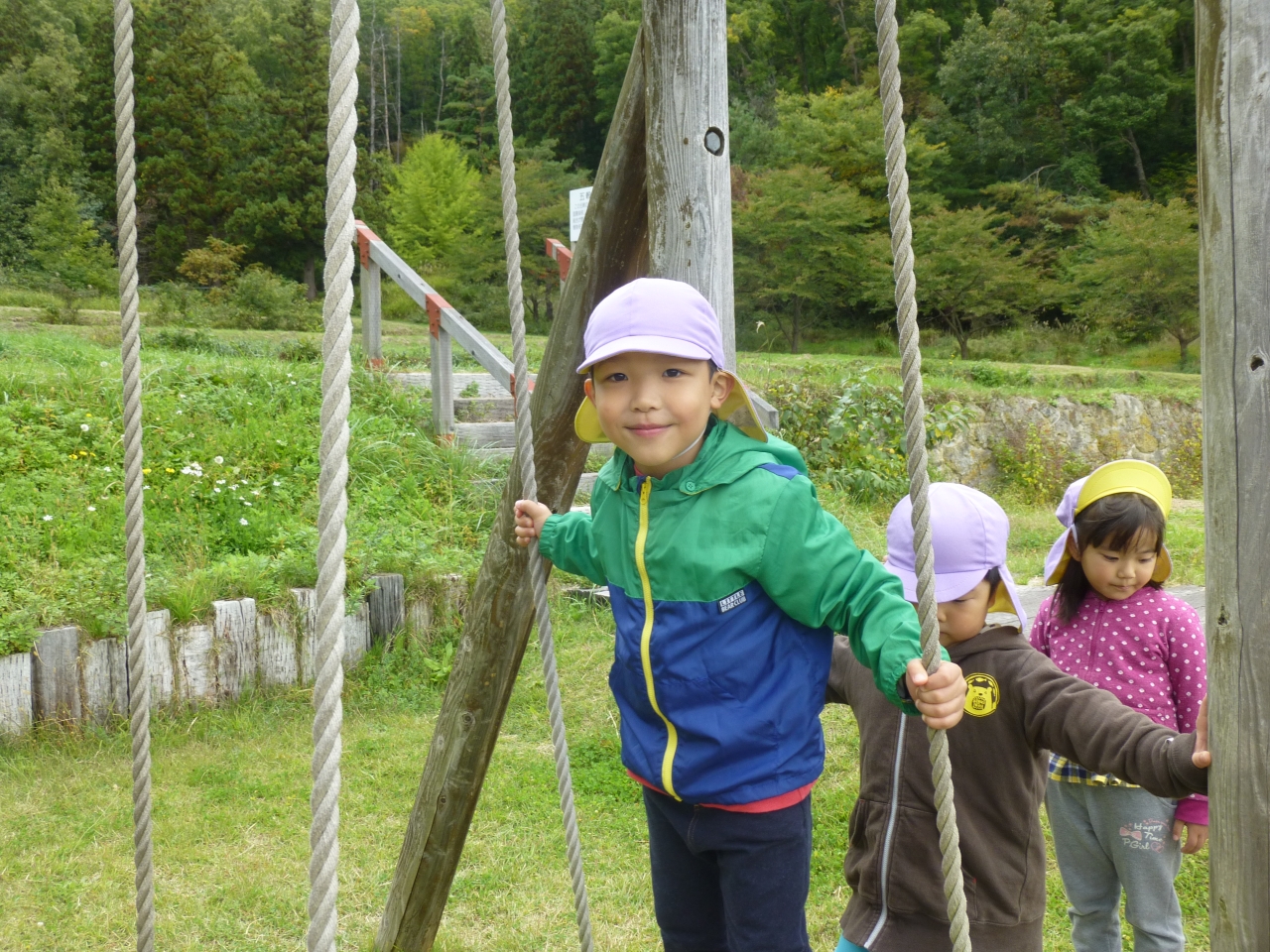 安久津八幡宮の三重塔を見学し、それから公園で遊びました。公園のアスレチックに挑戦し、繰り返し楽しみました。