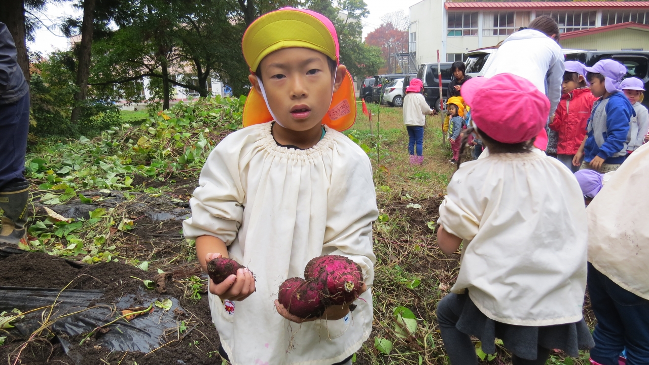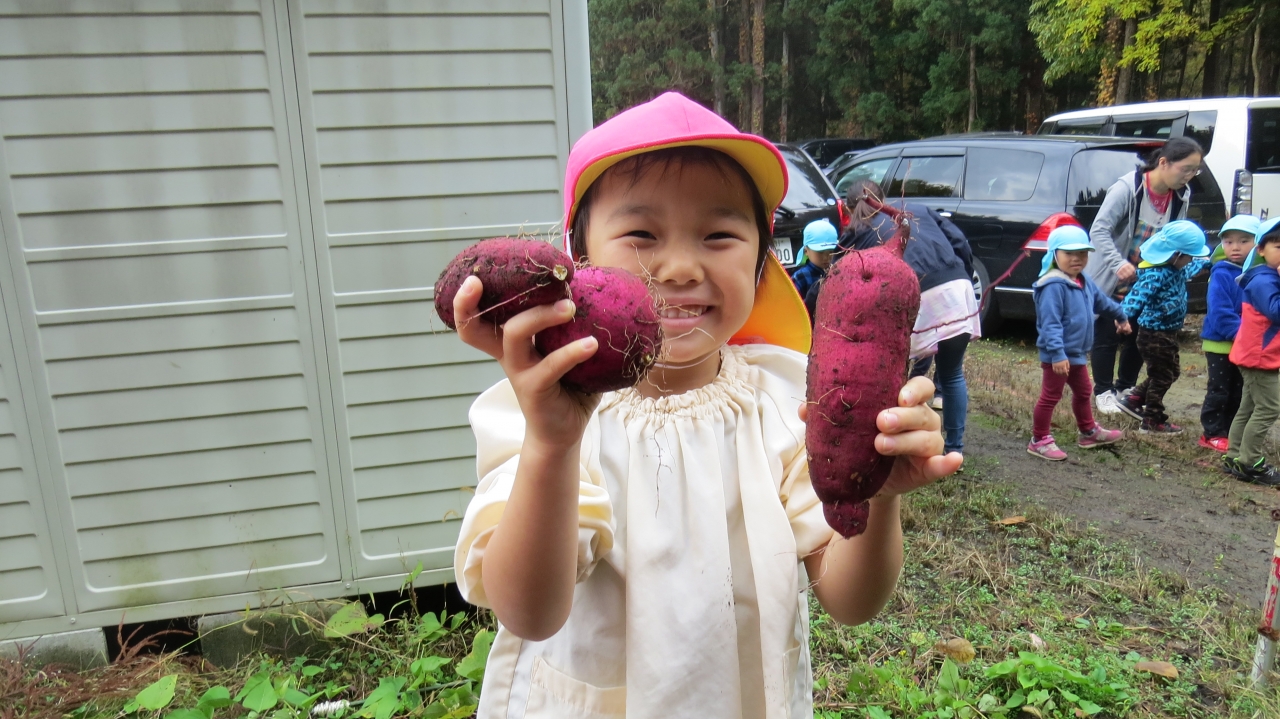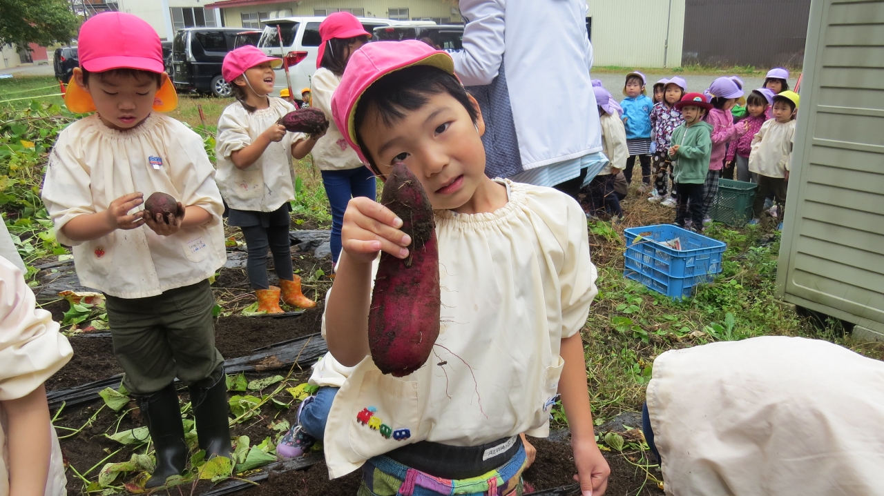 さつまいもの頭が見えると「あった!!」ととても喜んで掘り進めていました。大きいのから小さいのまでたくさんのおいもを収穫しました。