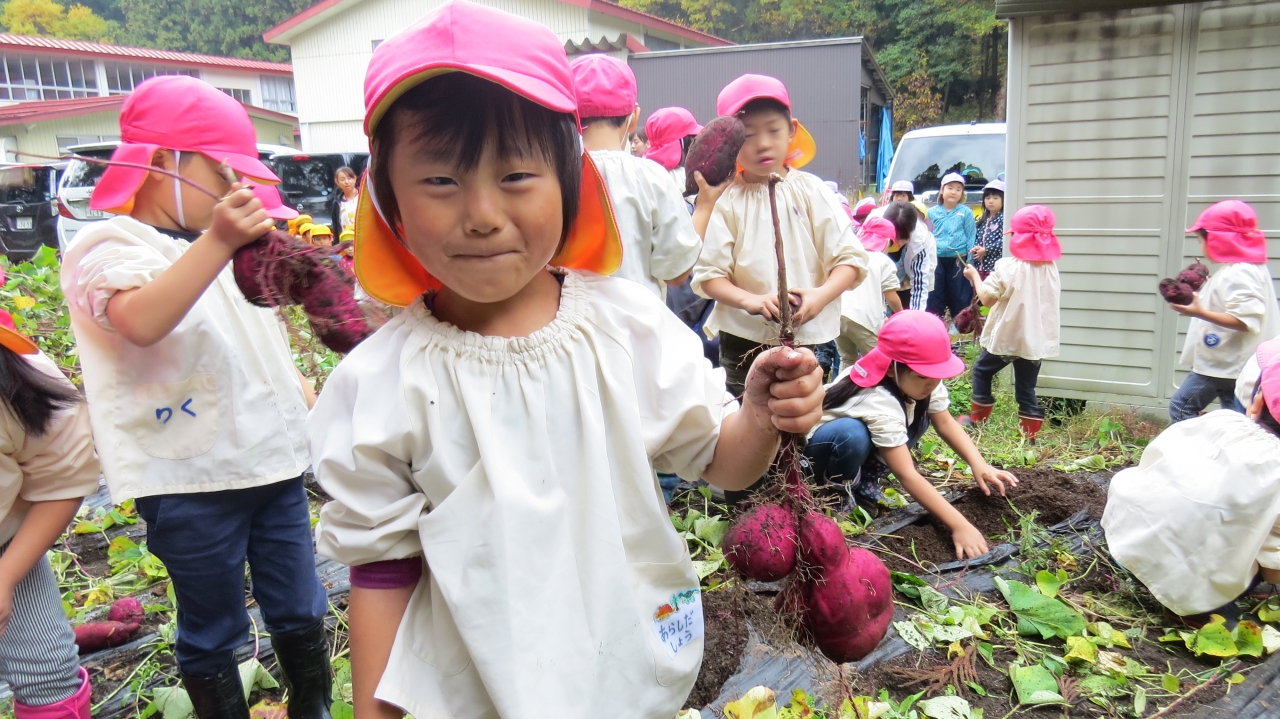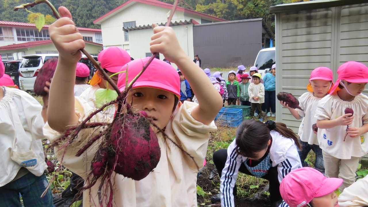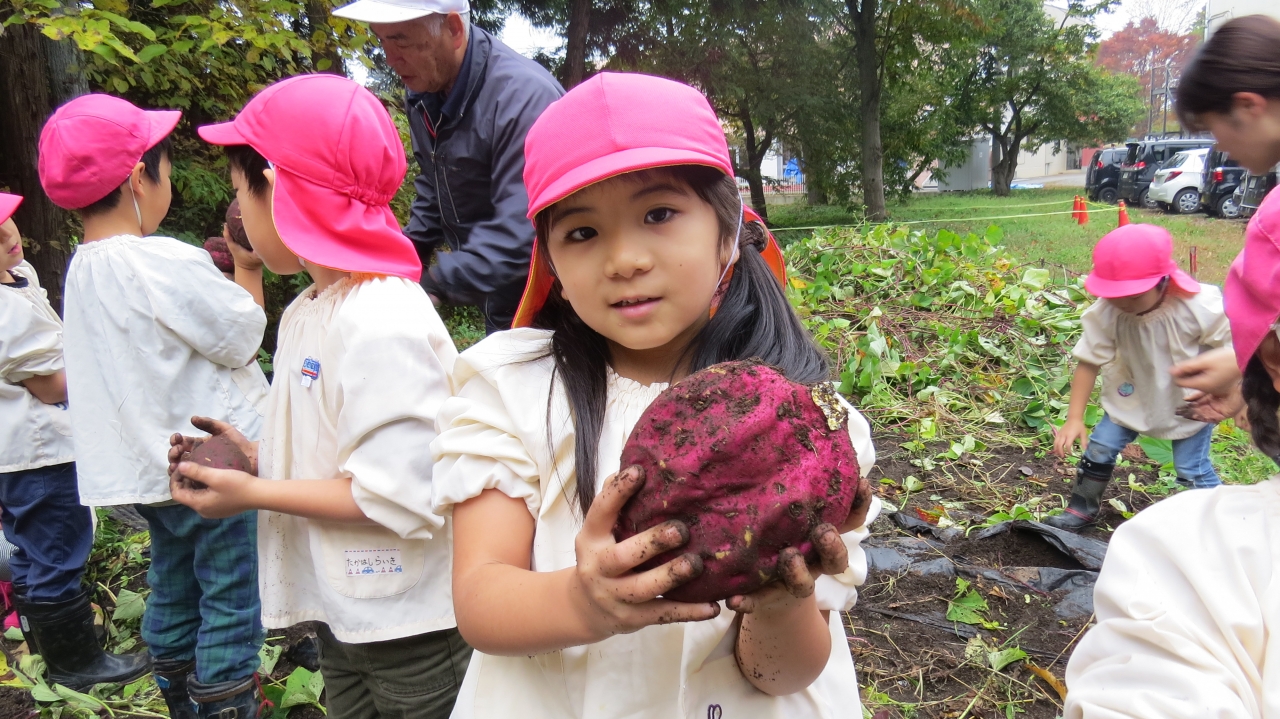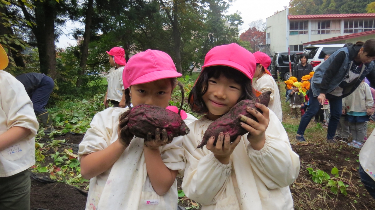 さつまいもの頭が見えると「あった!!」ととても喜んで掘り進めていました。大きいのから小さいのまでたくさんのおいもを収穫しました。