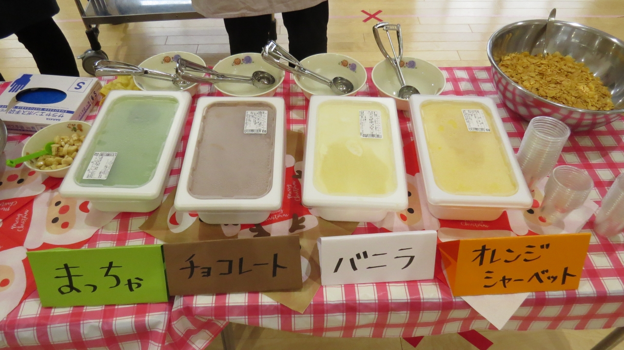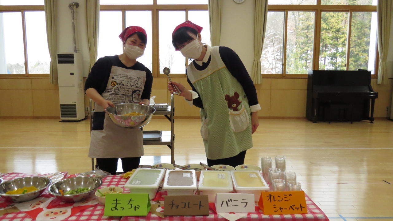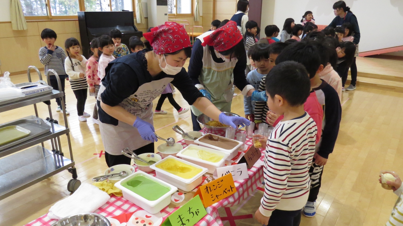 そして、デザートはお楽しみアイス!!幼児組さんは、お遊戯室にアイス屋さんがOPEN!