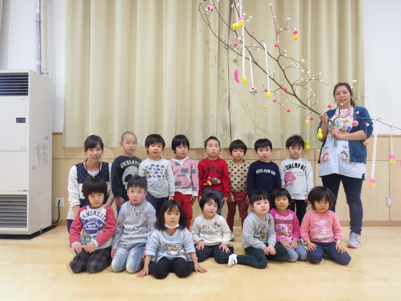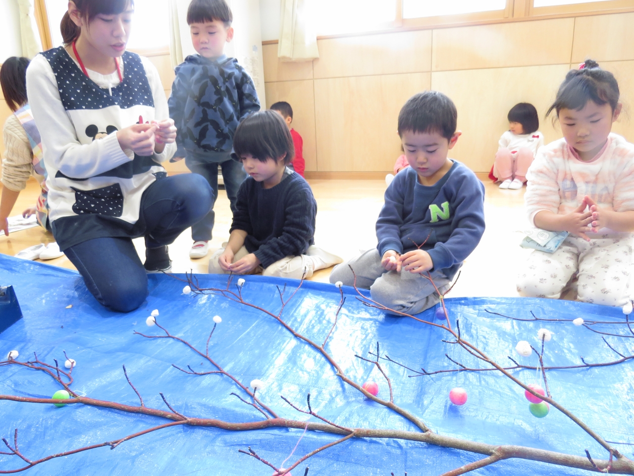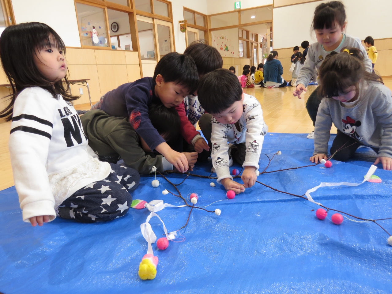 昨日は小正月。昔からある伝統的な行事を子ども達に経験して欲しいという願いから、毎年だんごの木飾りを行っています。