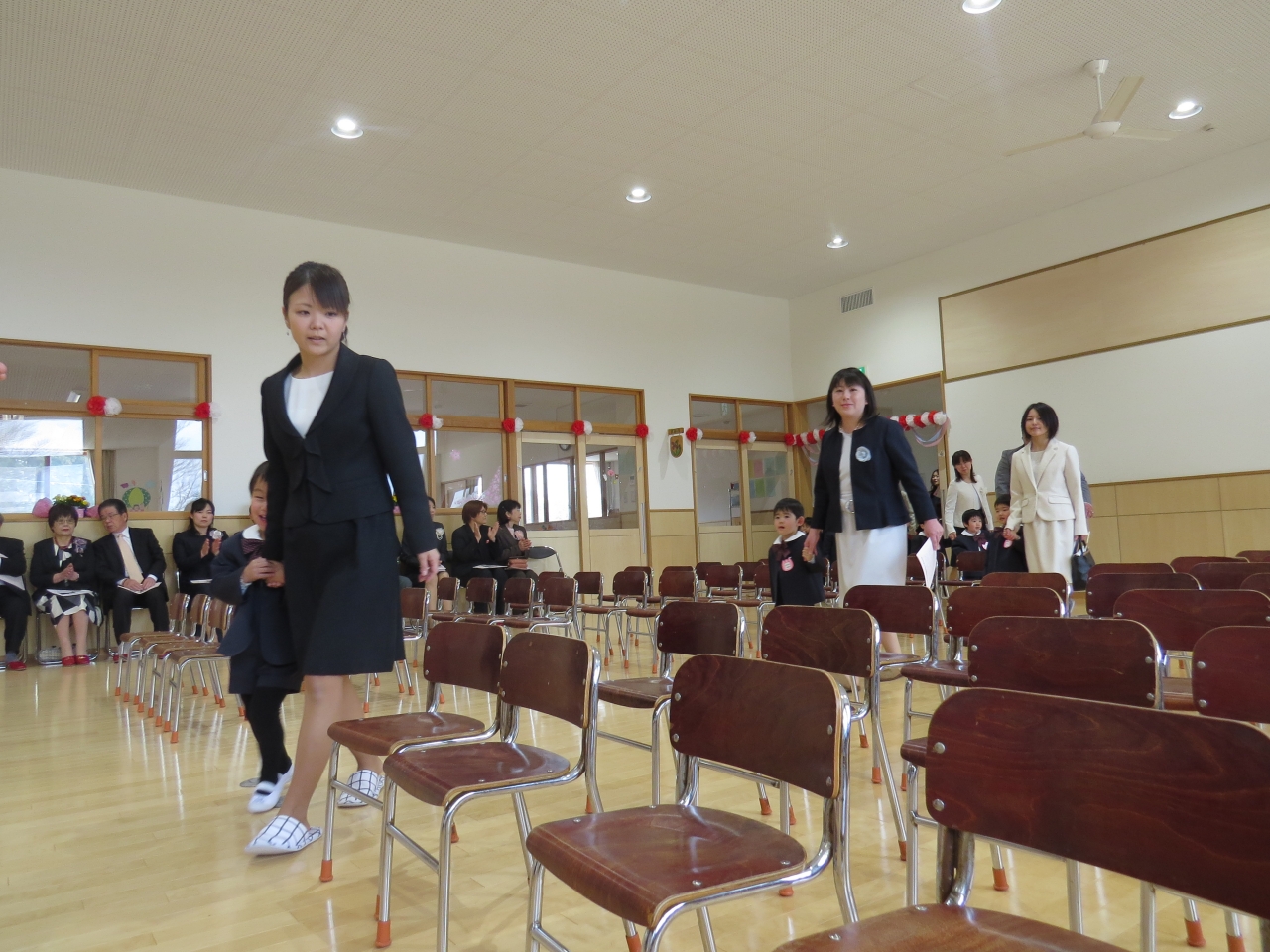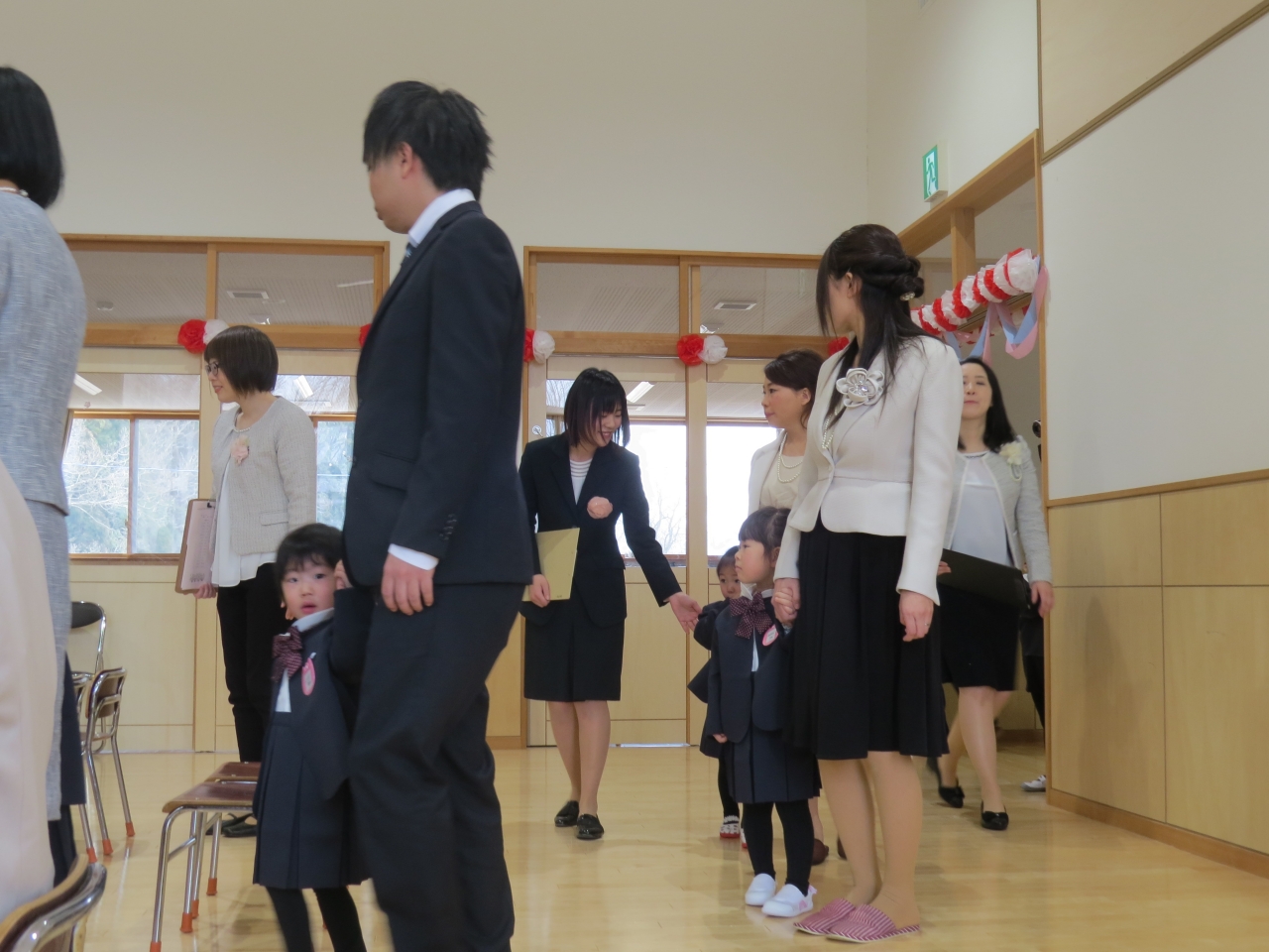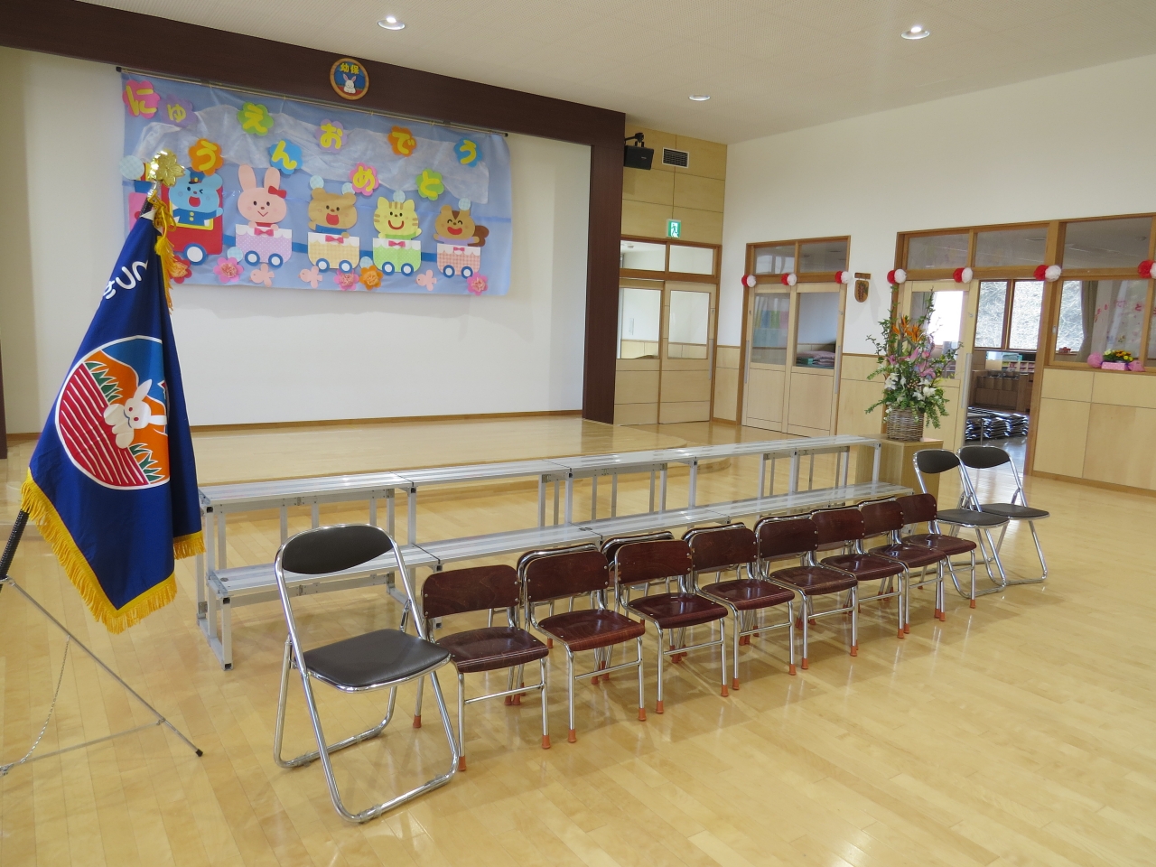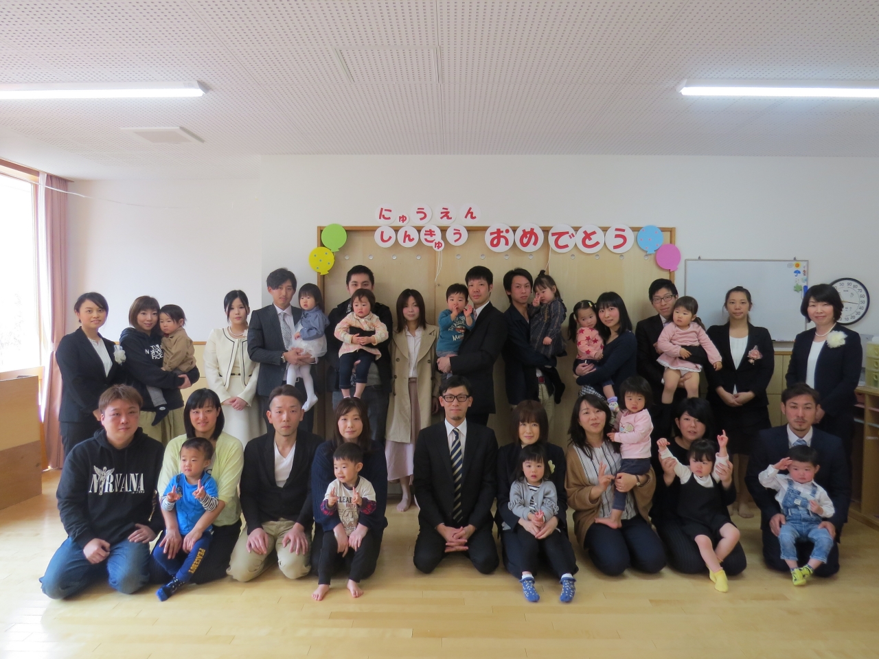 幼児組は、年少さんがお遊戯室で入園式を行いました。