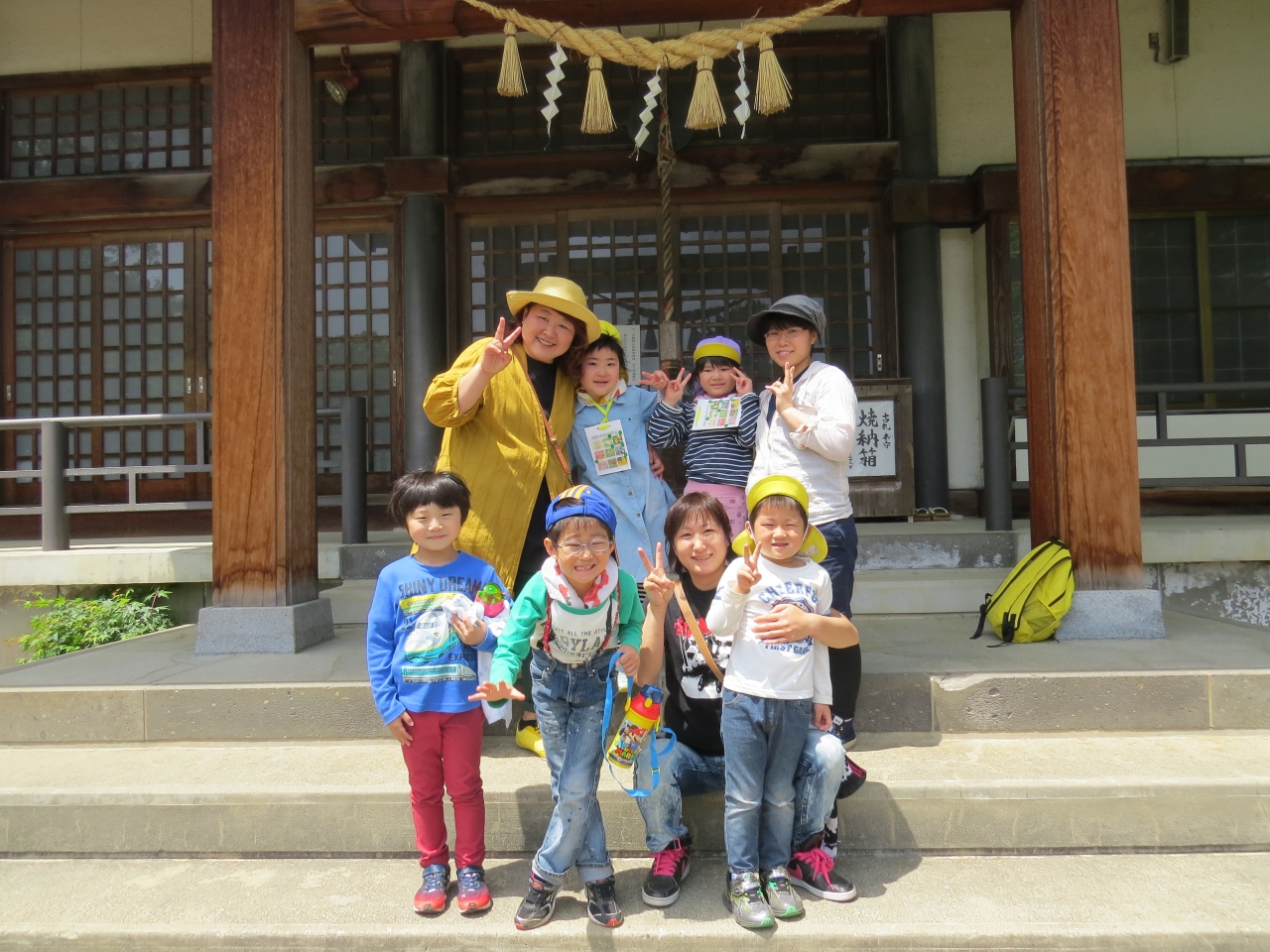 園の散歩コースを親子で歩き、春の自然の中を歩く心地良さや自然物に触れて欲しいという願いから、歩く遠足を行っています。