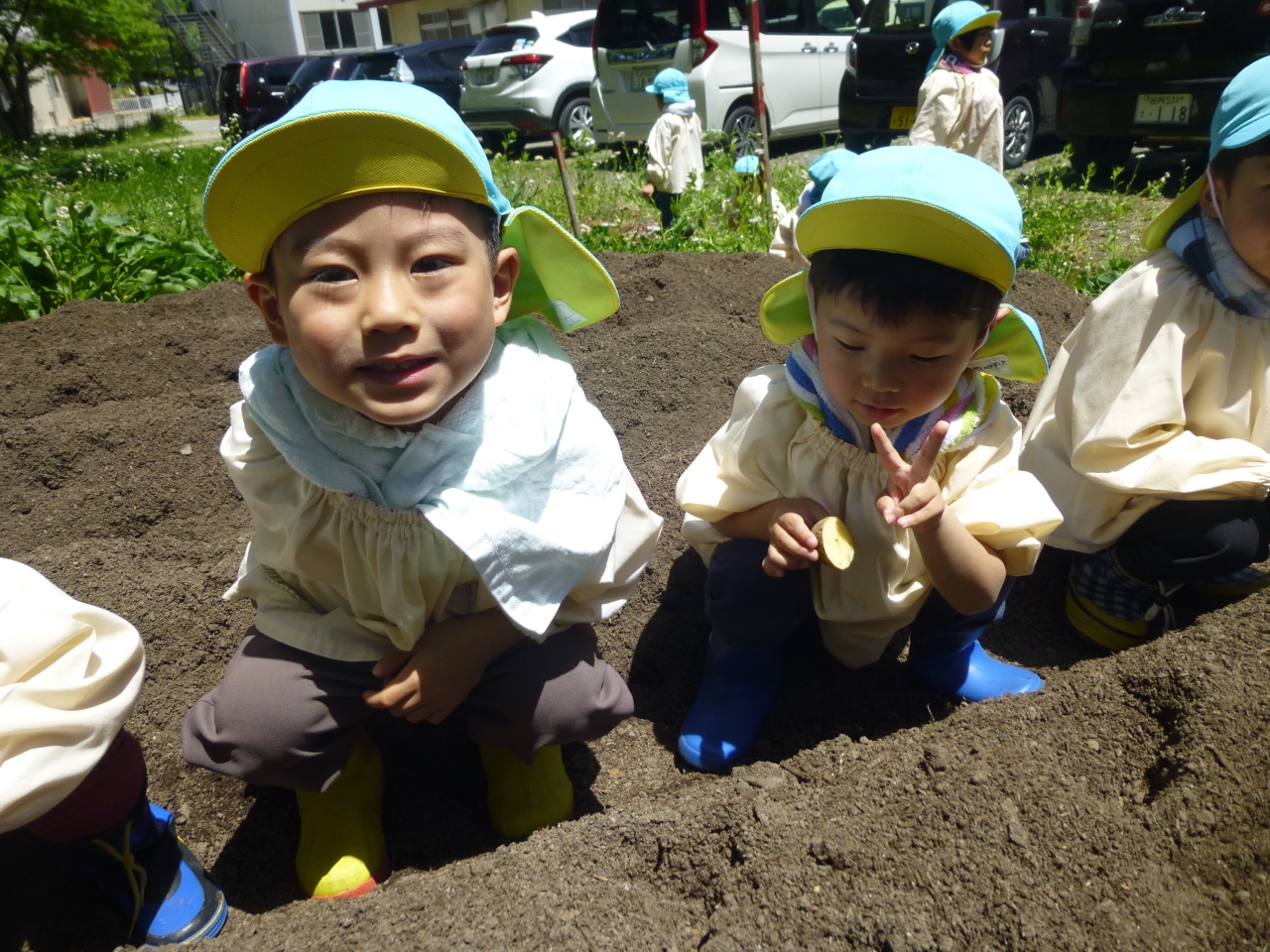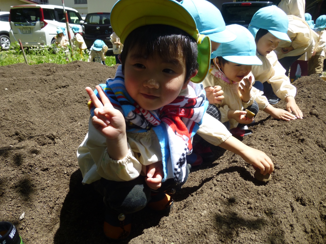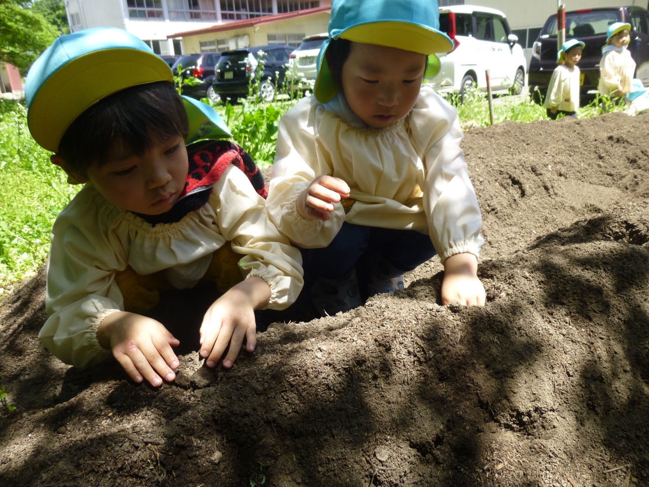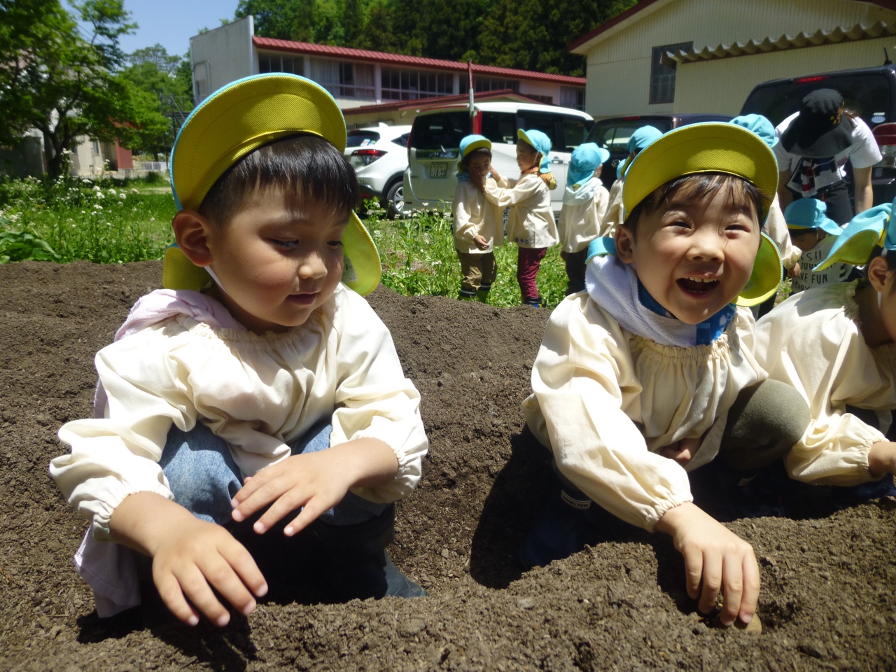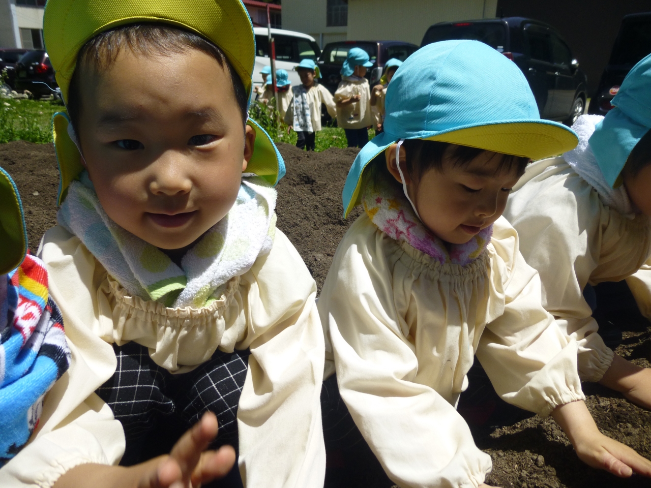 「大きくなあ~れ」「美味しくなあ~れ」という願いを込めてみんなで植えました。