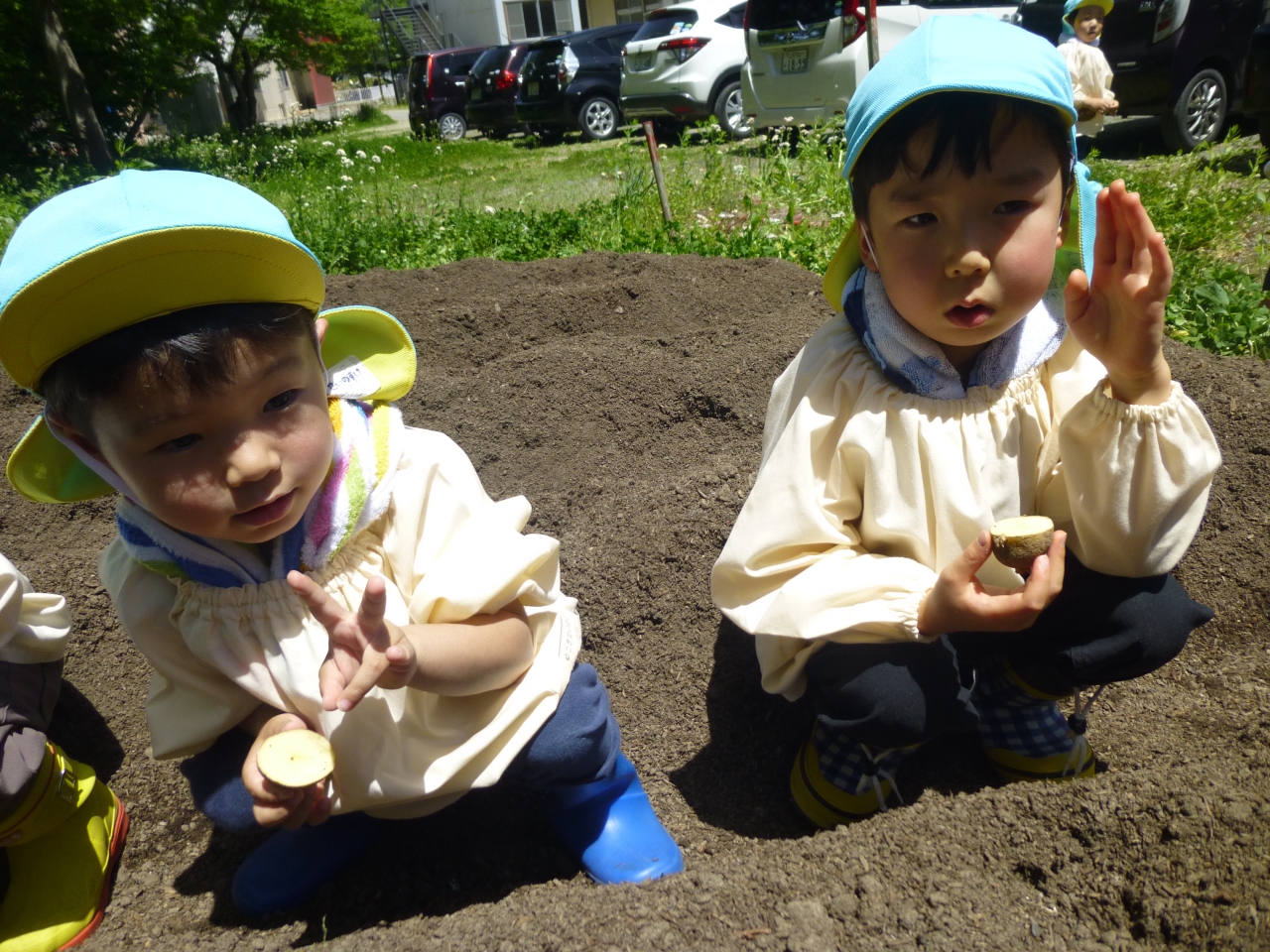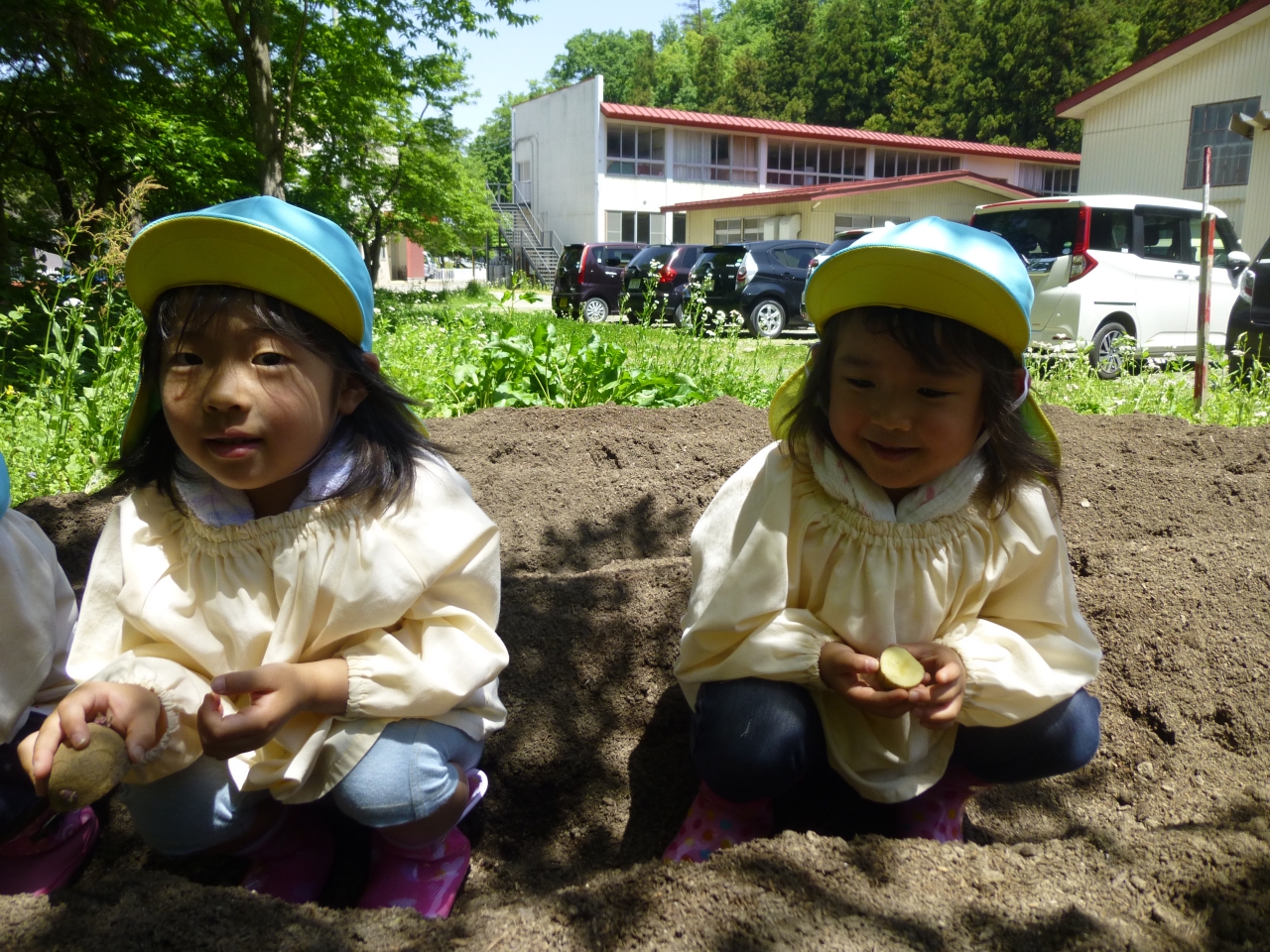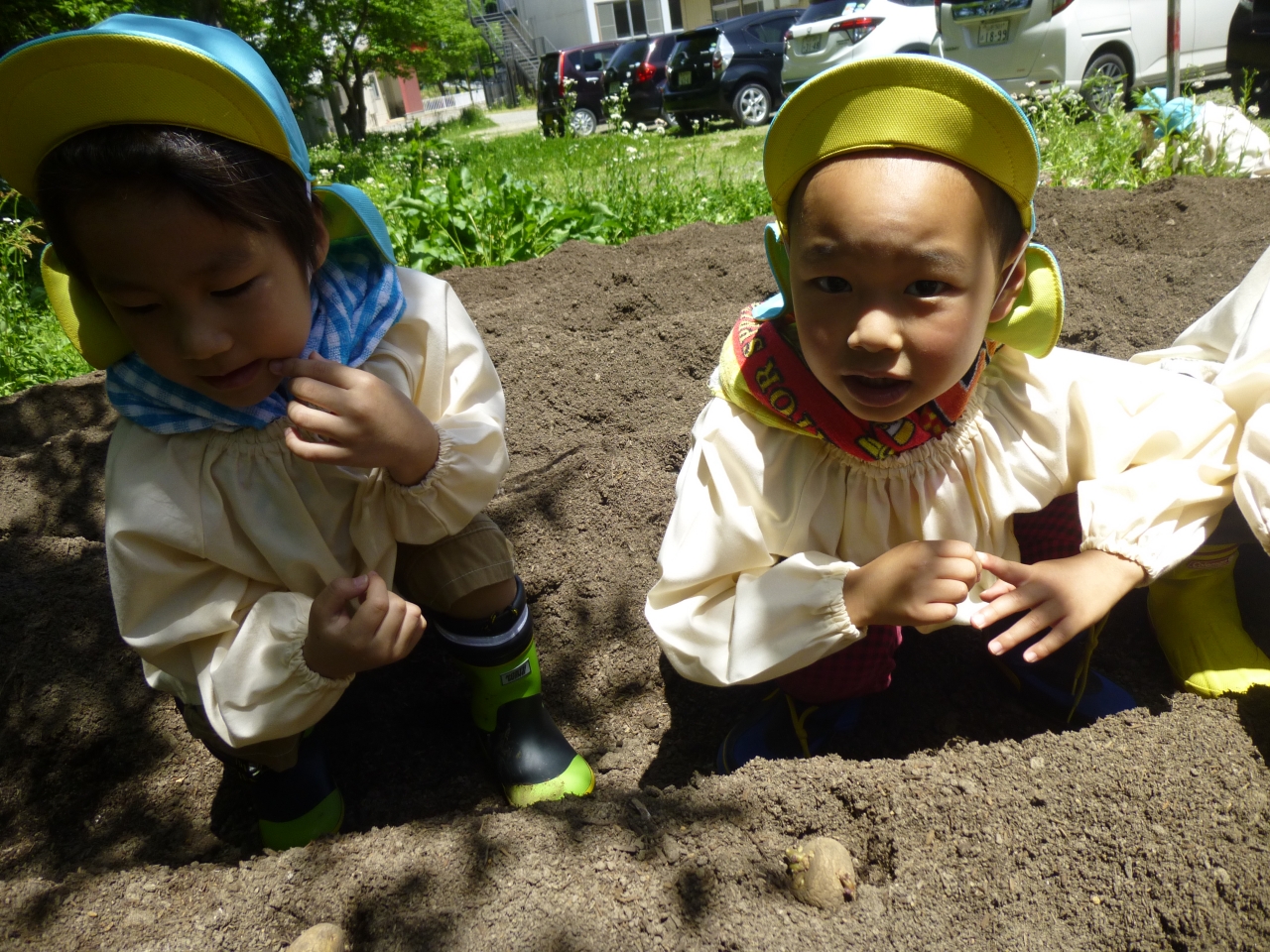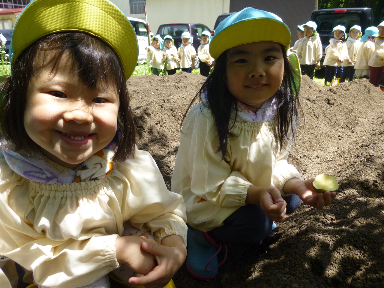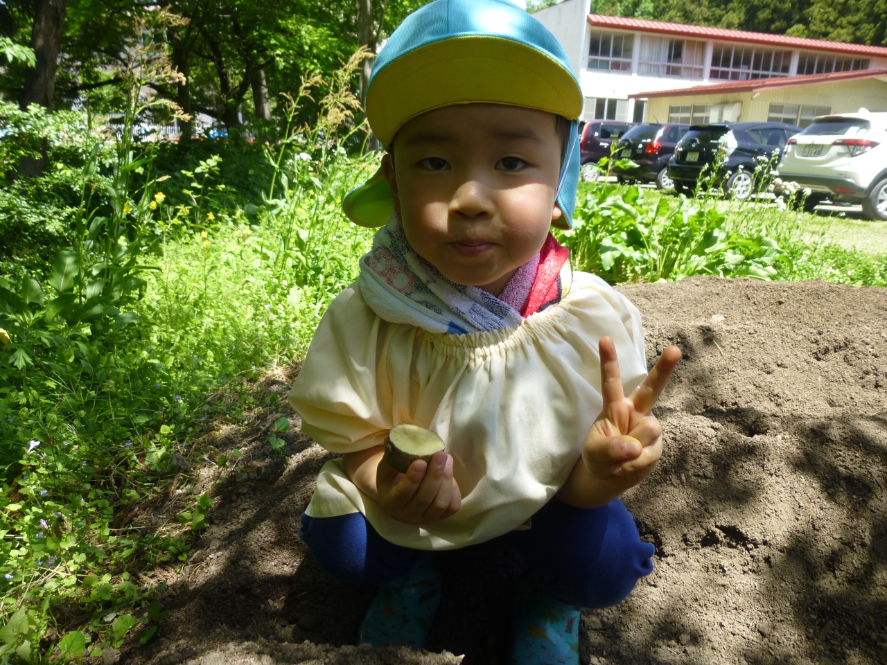 「大きくなあ~れ」「美味しくなあ~れ」という願いを込めてみんなで植えました。