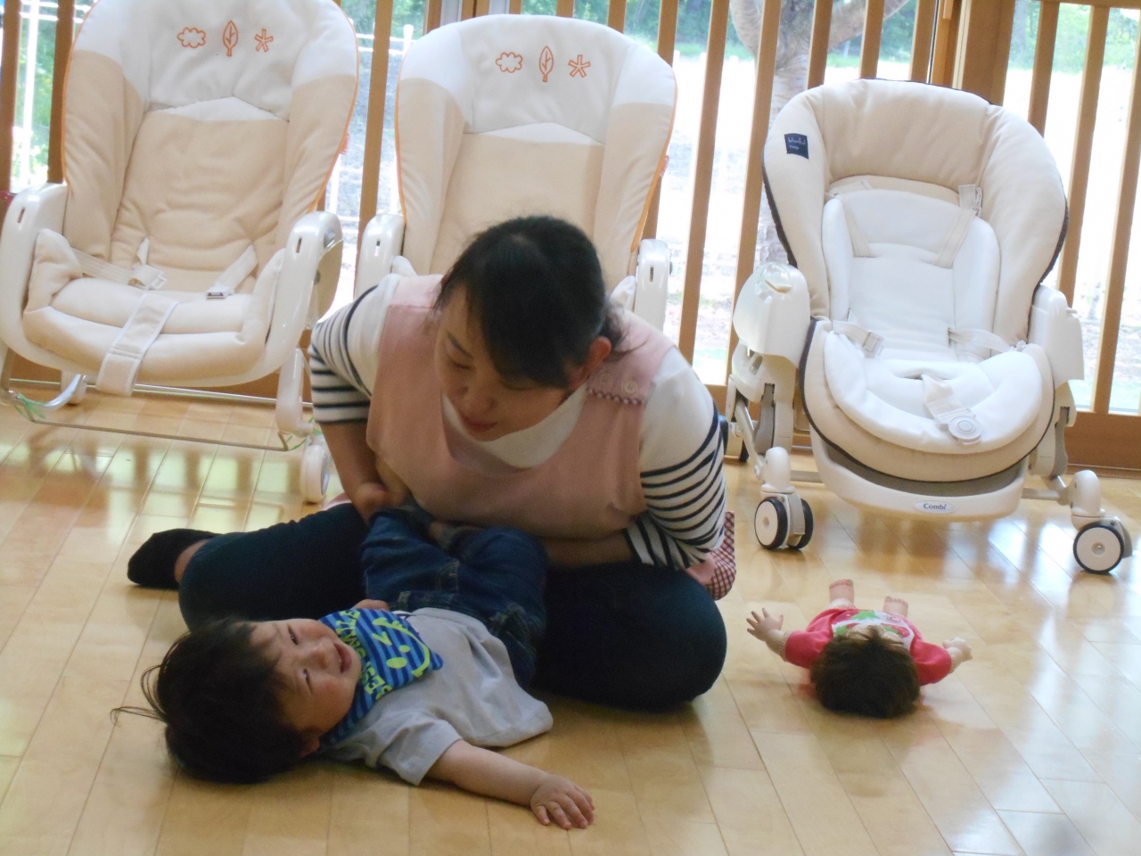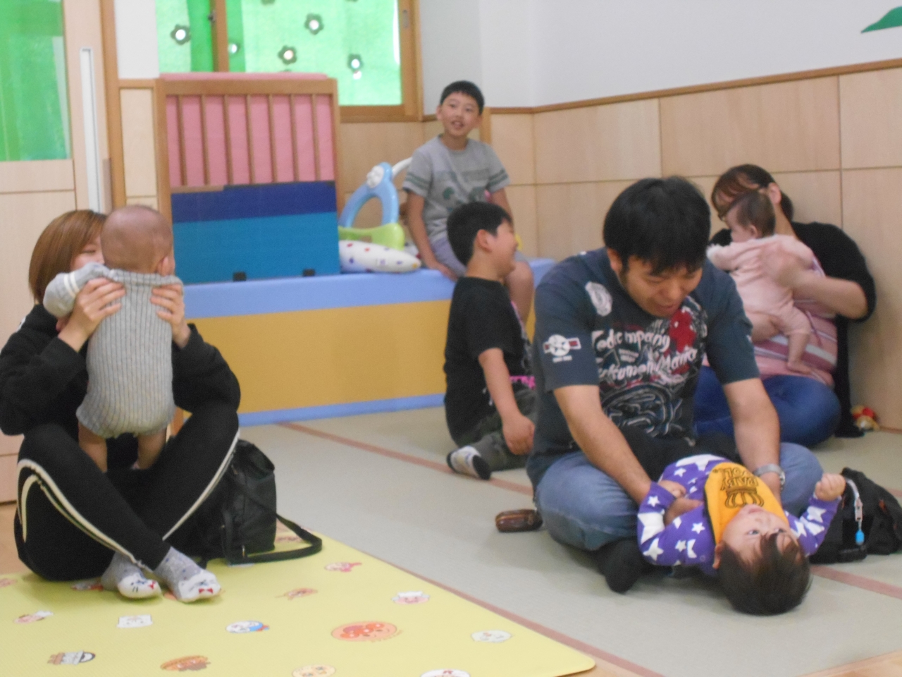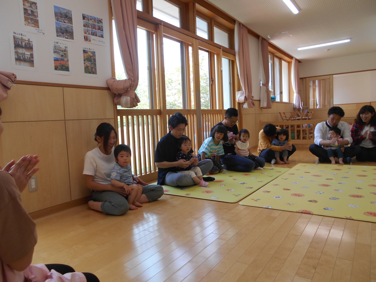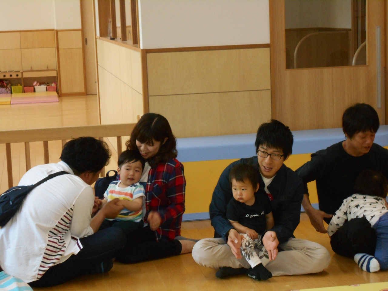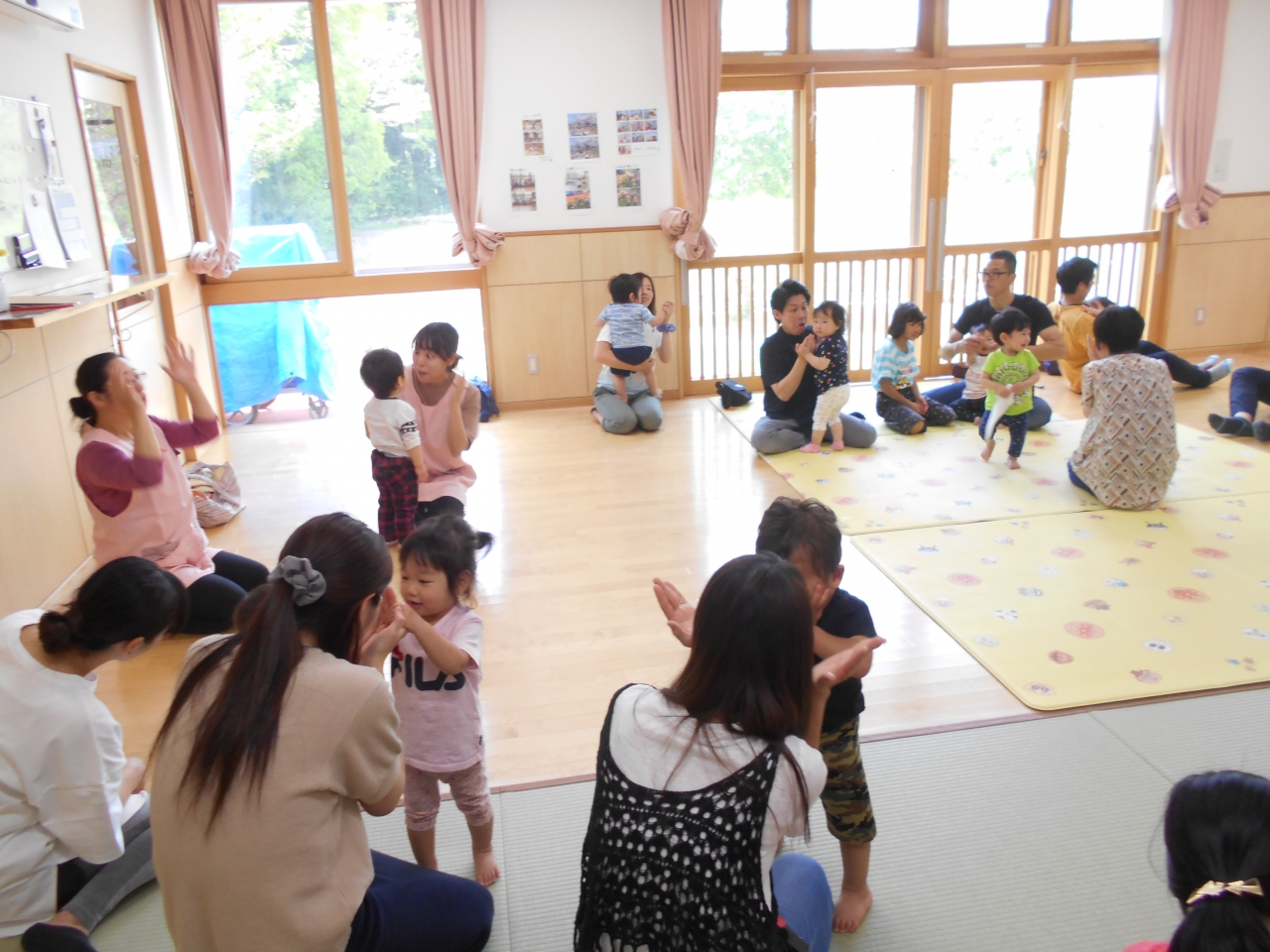 お家の人と一緒に登園をして各保育室で活動をおこないました。
