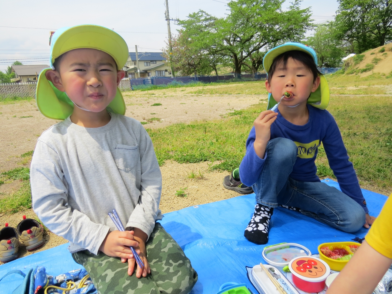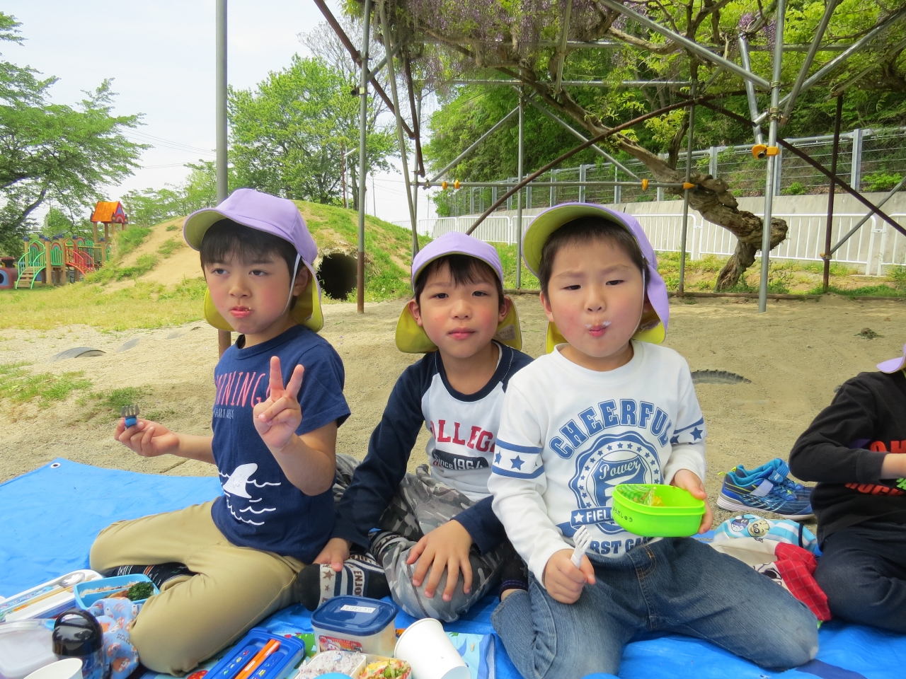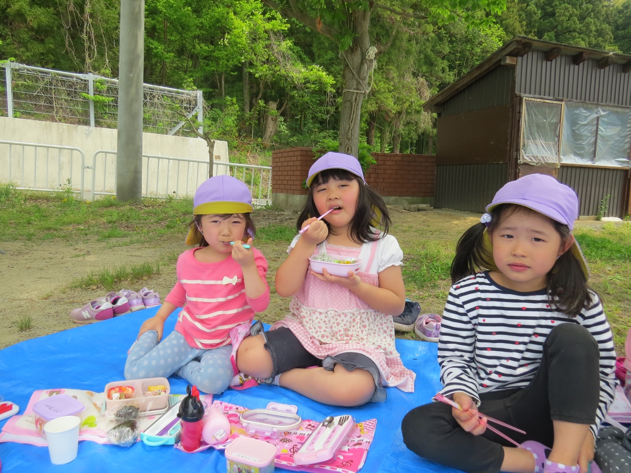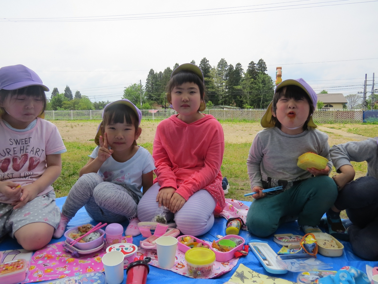 この日は、お天気も良くお外でお弁当を食べました。お外で食べるお弁当は一段と美味しかったです♡