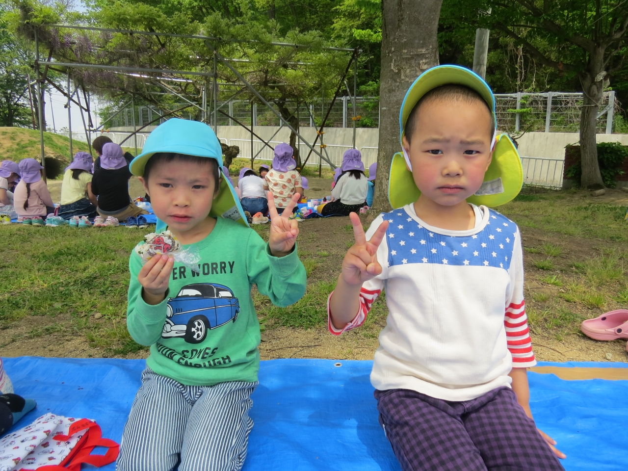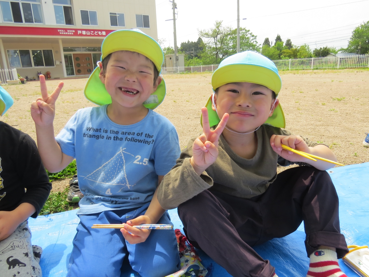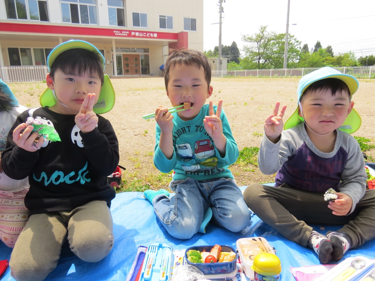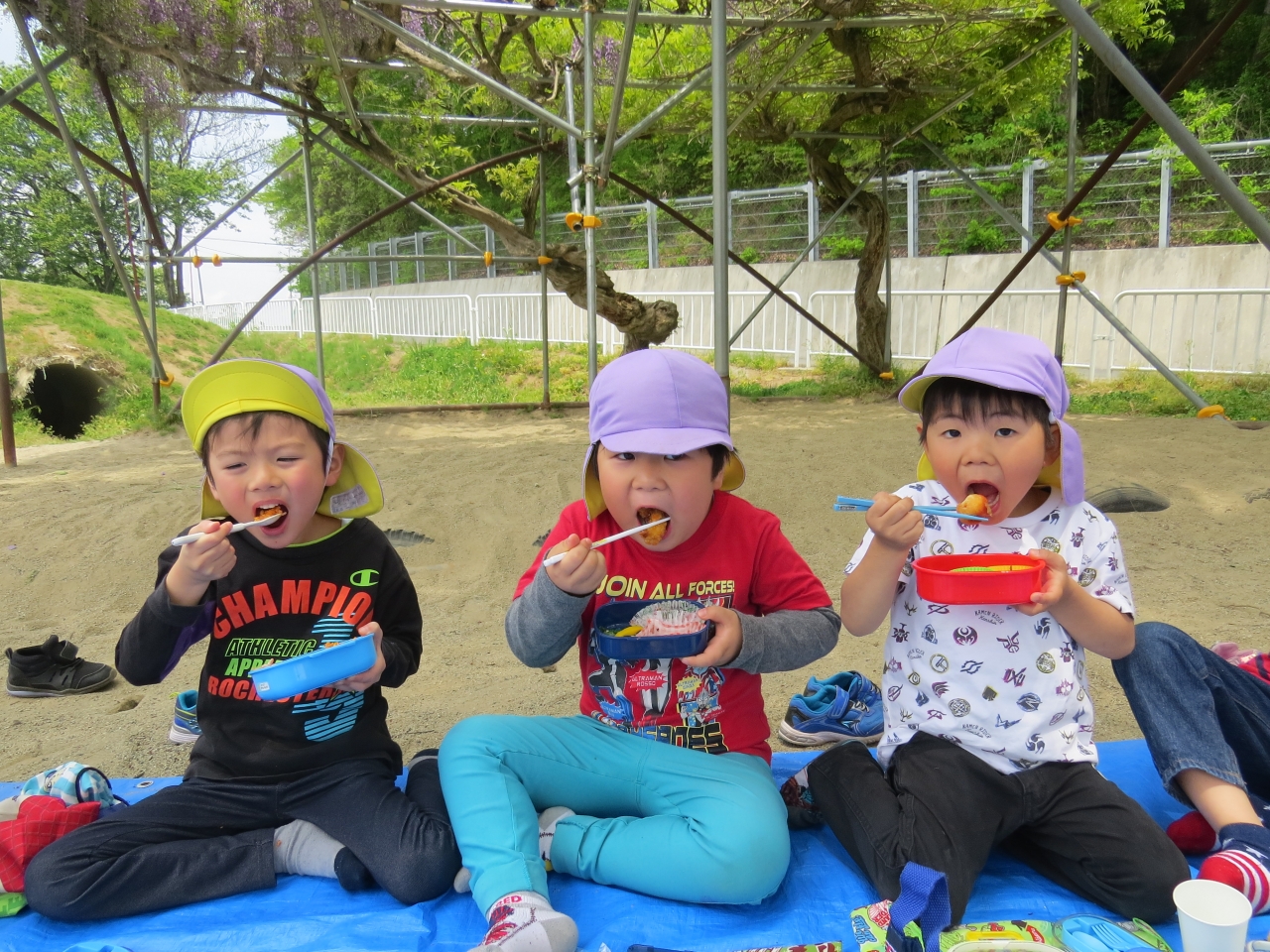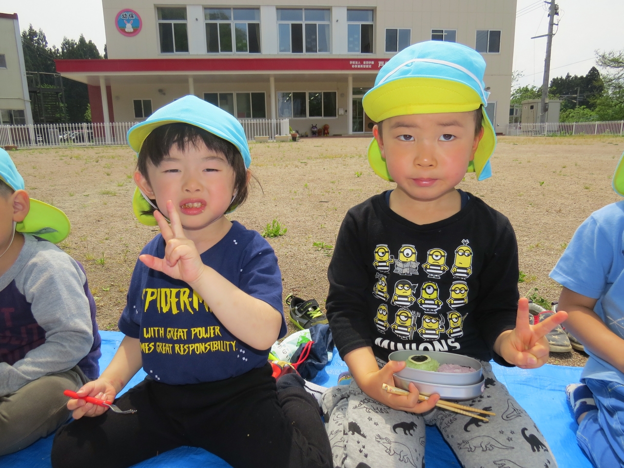 この日は、お天気も良くお外でお弁当を食べました。お外で食べるお弁当は一段と美味しかったです♡