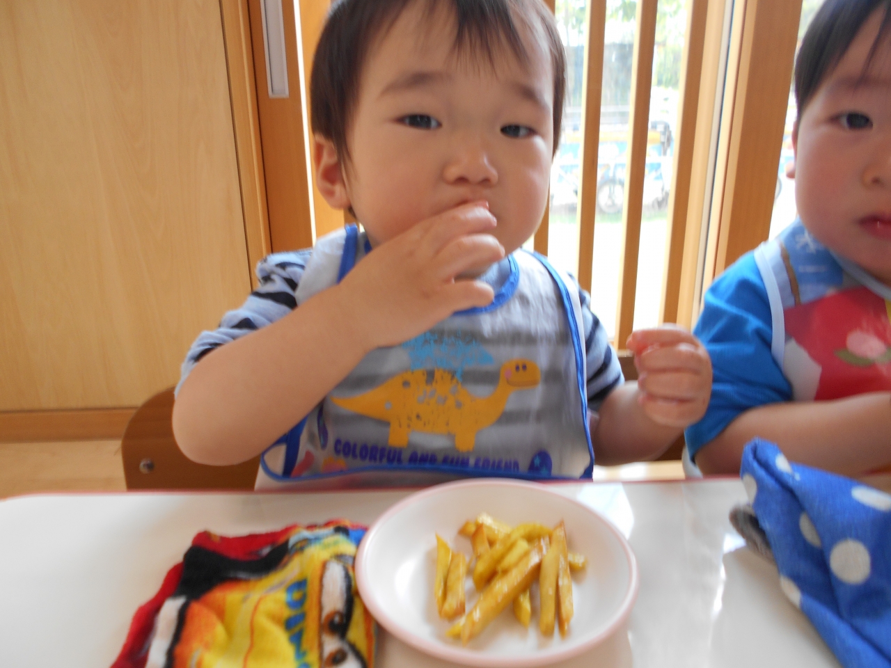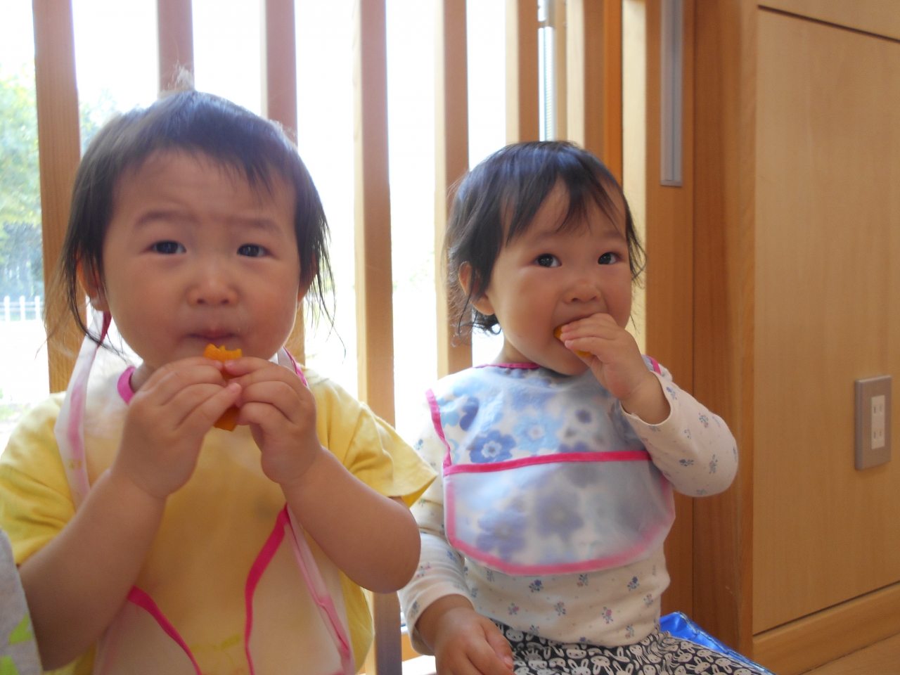 おやつの時も上手に食べ、コップを持つのも上手になり麦茶をゴクゴク飲んでいます。