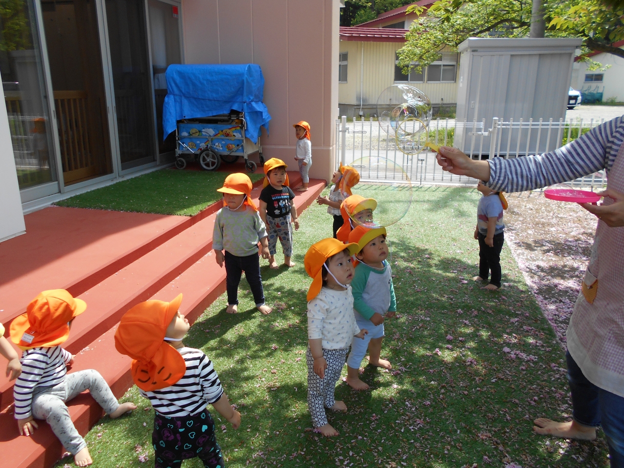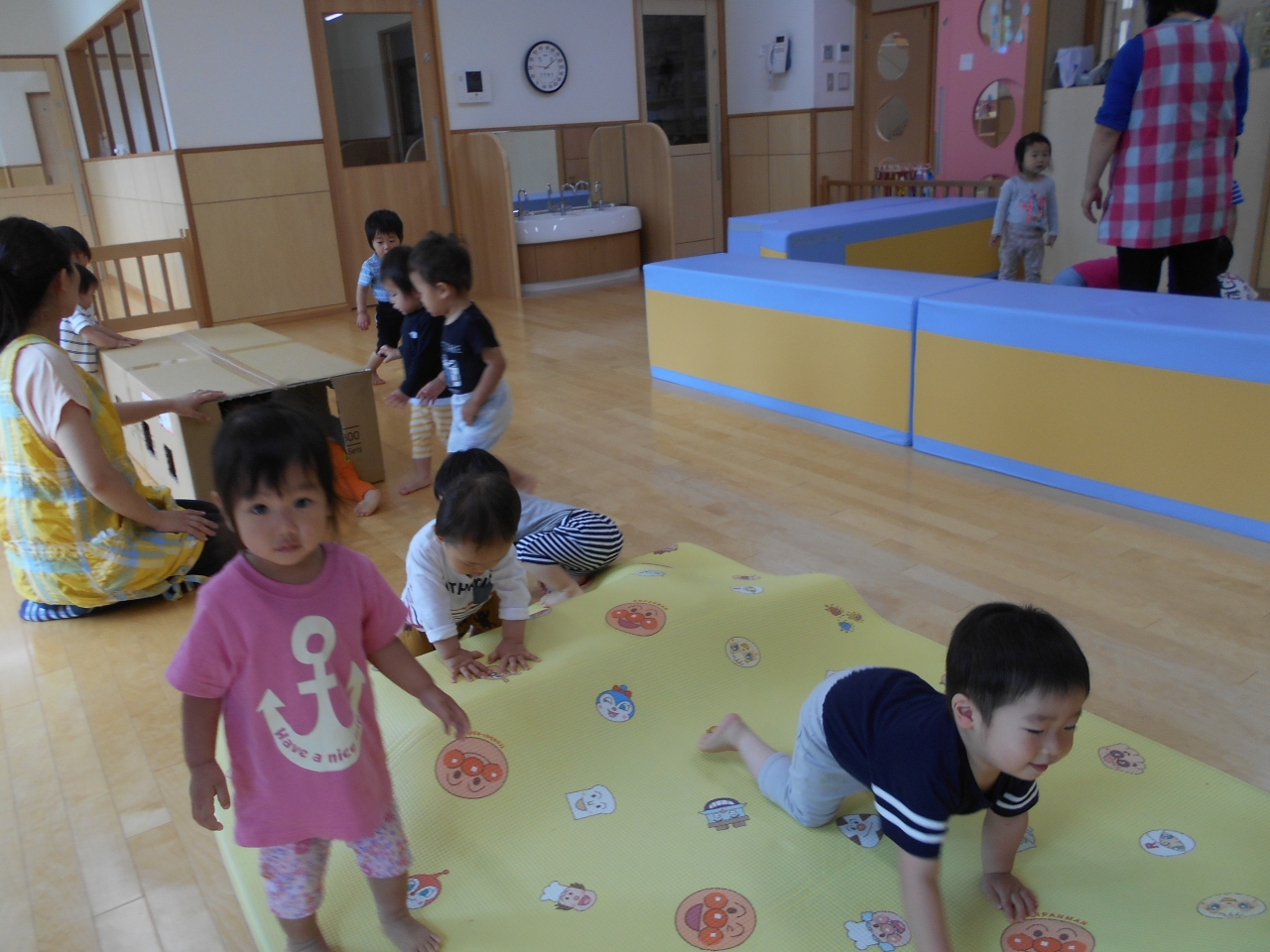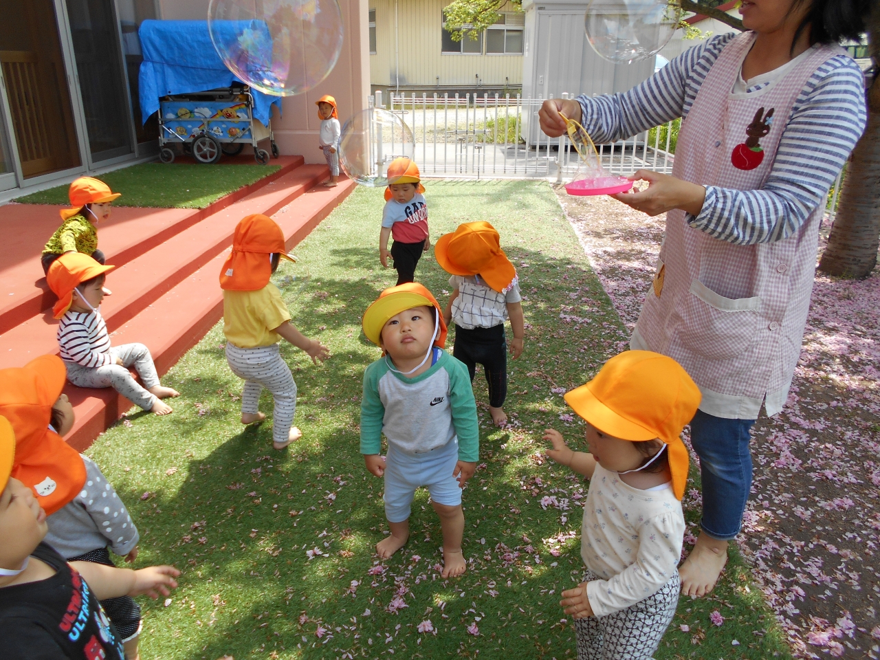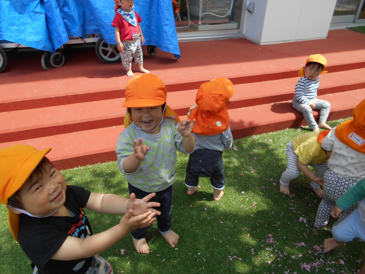 4月は、歩き方が安定しない子もいましたが、自ら様々な所に歩いたり、走っていったりし楽しんでおります。