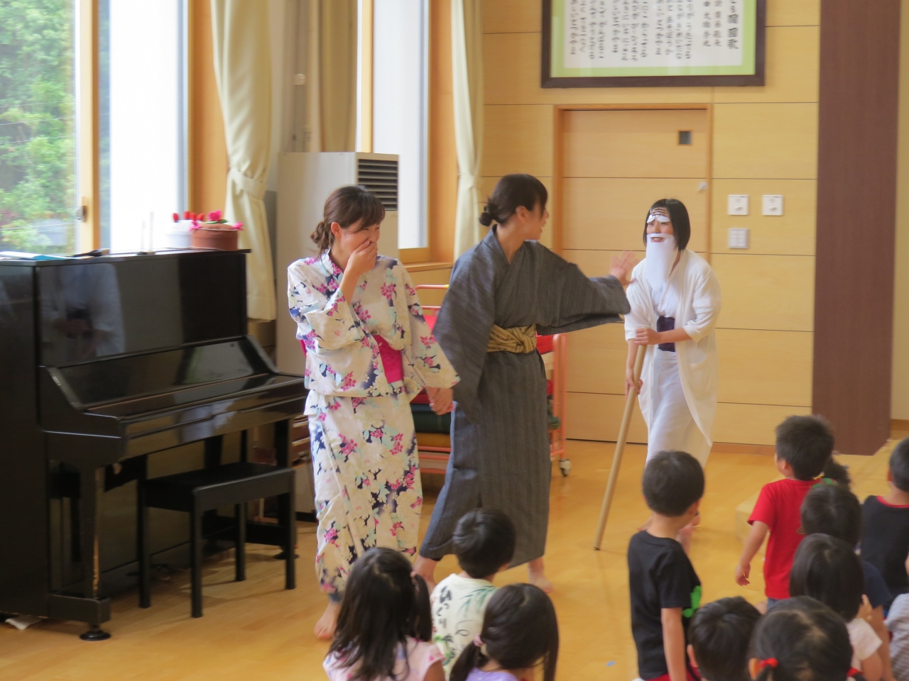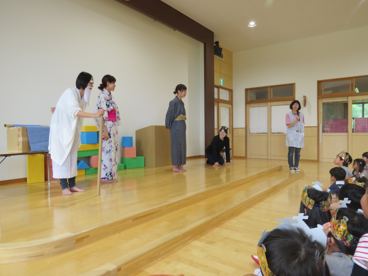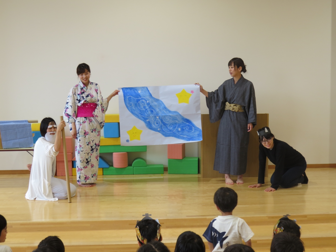 今月の誕生会では、先生達から「たなばた物語」という劇のプレゼントがありました。