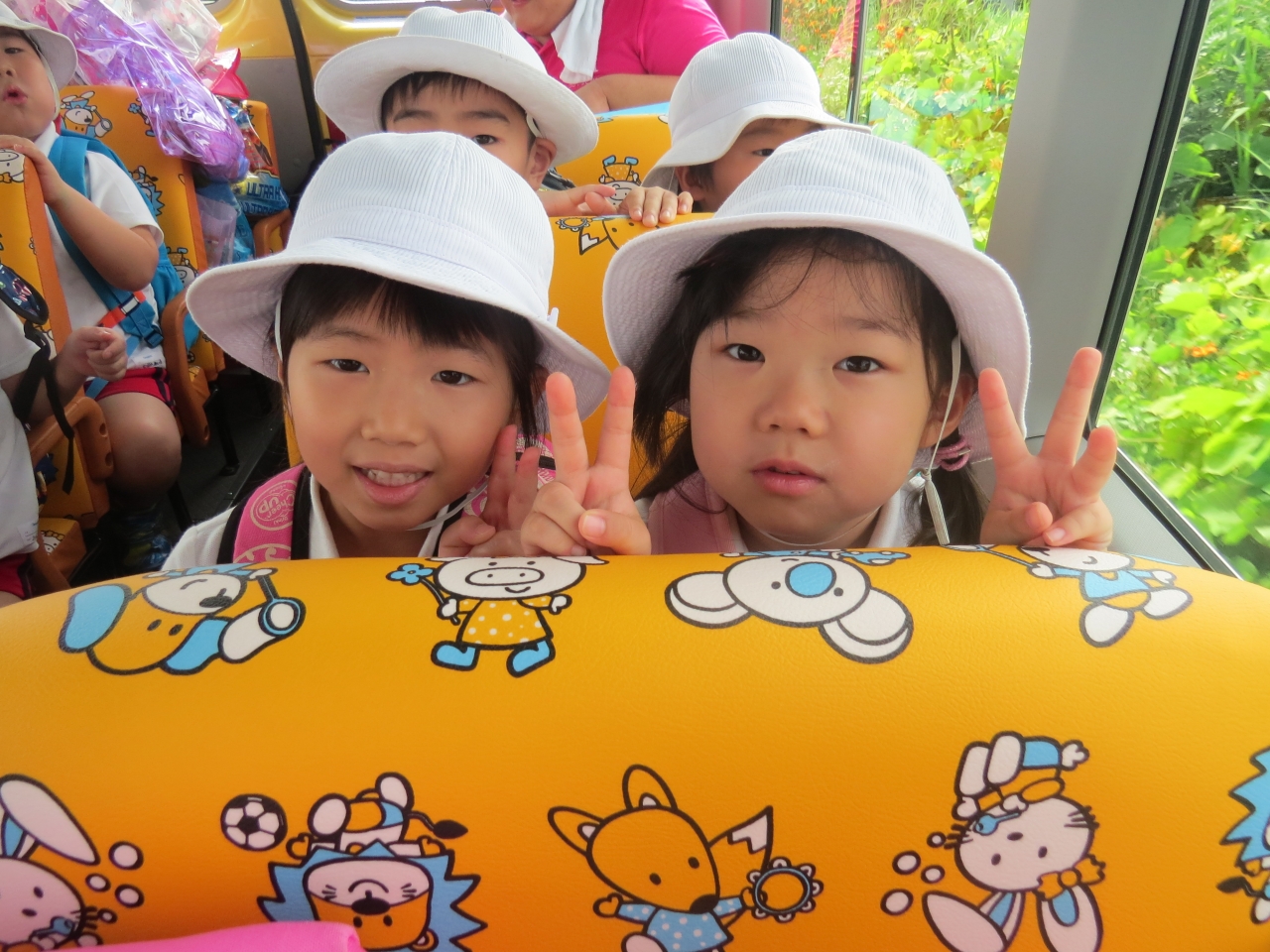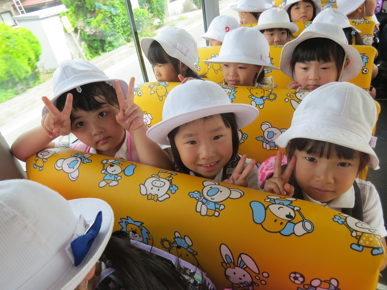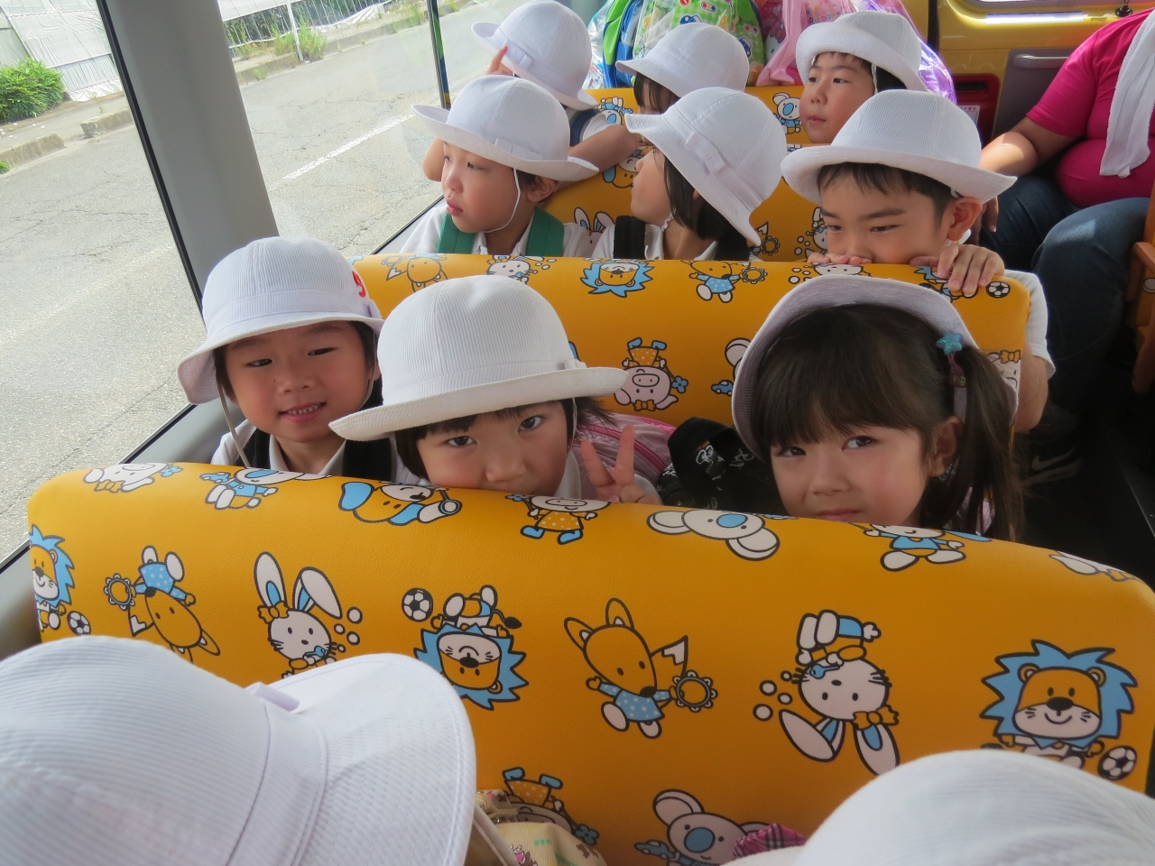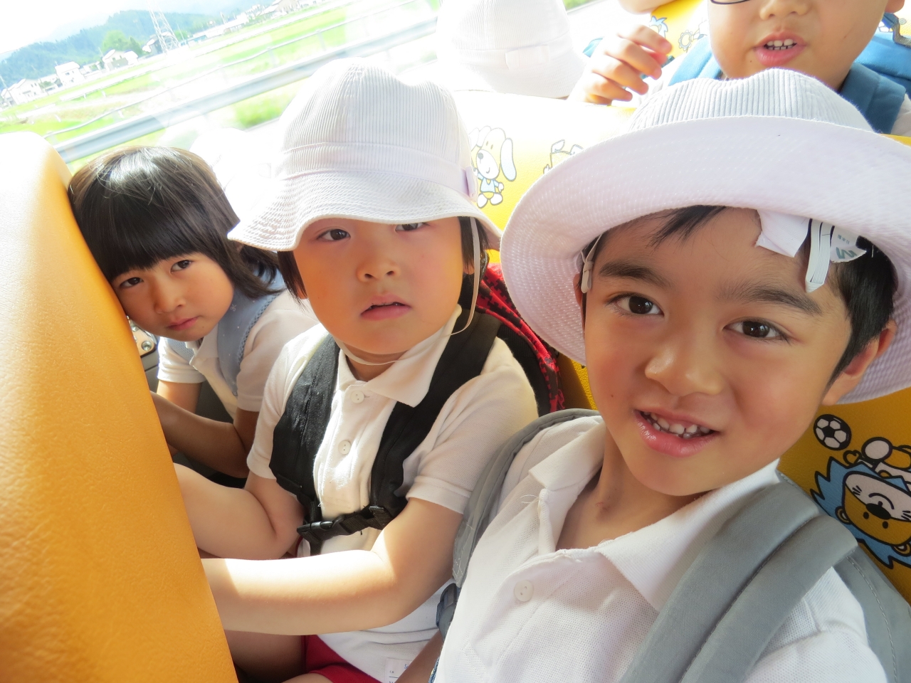 1日目は、宮城県にあるみちのく杜の湖畔公園に行きました。バスに乗り近場に園外保育には行きますが、遠くまで出かけるのは初めてです!みんなドキドキワクワク。