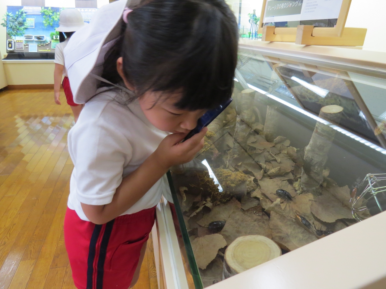 近くにある田んぼアートを見学し、次は昆虫館に行きました。虫が大好きな子ども達は、大興奮!いろんな種類の虫がいることや大きさや形など実際に見ることができ楽しかったです。