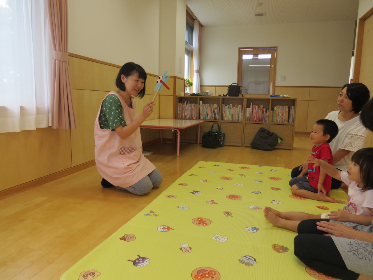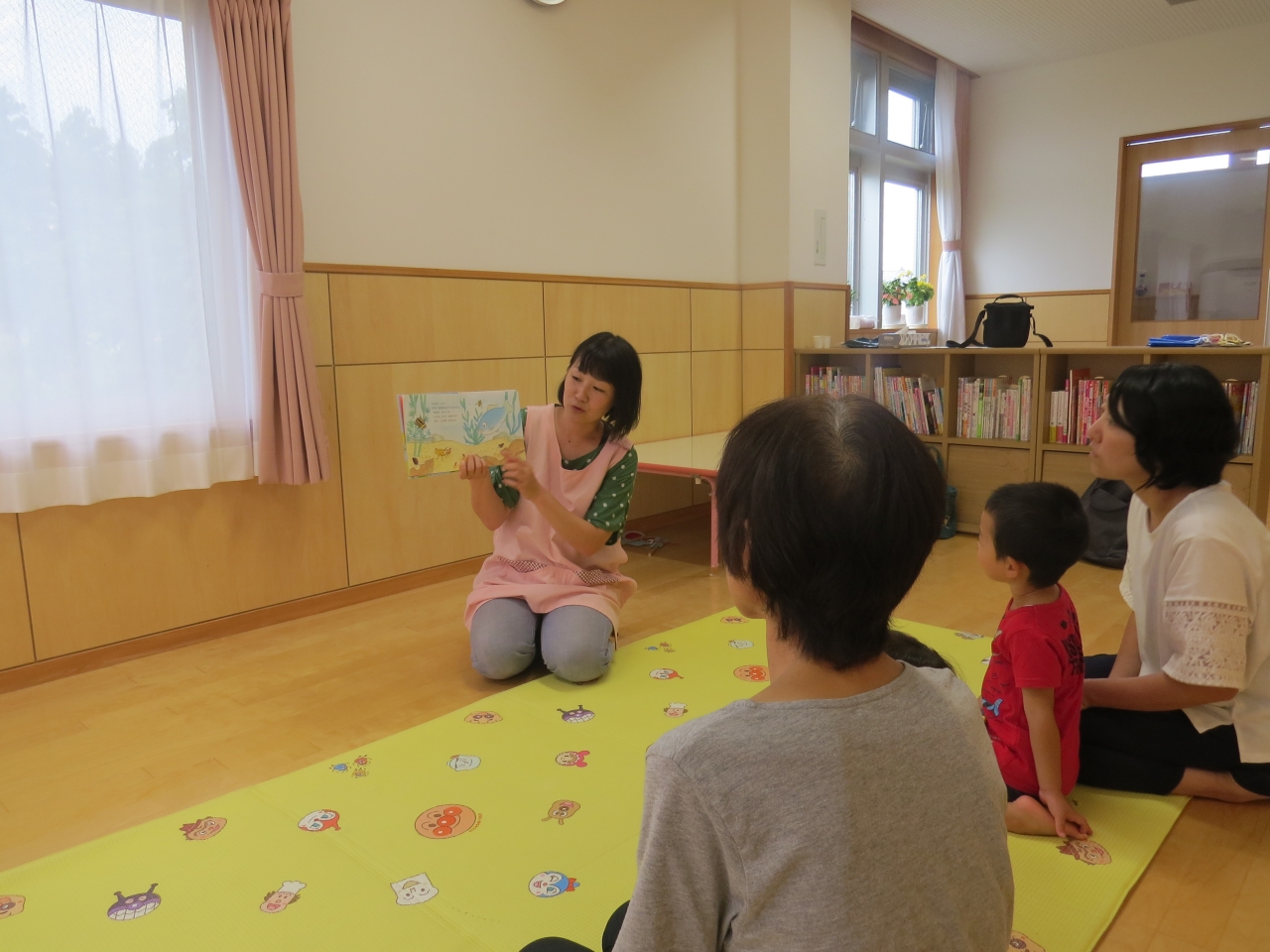 9月11日(水)に子育て支援「どんぐりん」を行いました。今回は2名のお友だちが遊びに来てくれました。