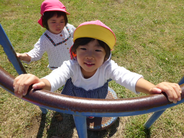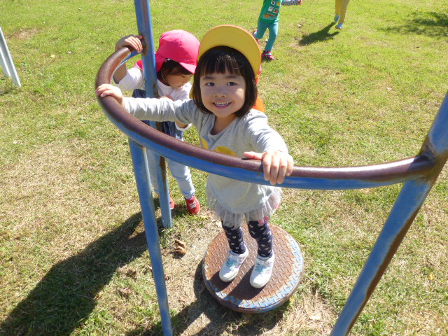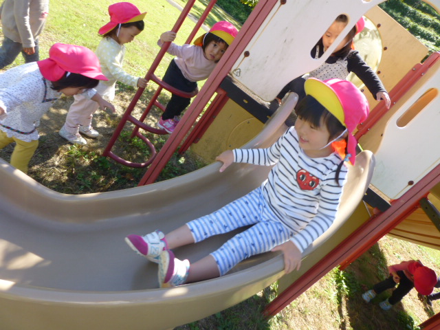 お天気にも恵まれて、青空の下たくさん体を動かして遊ぶことができました。滑り台やアスレチックなど繰り返し楽しむ様子が見られました。
