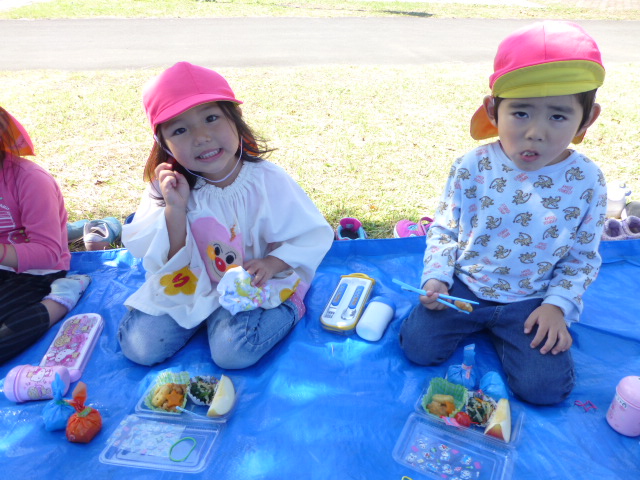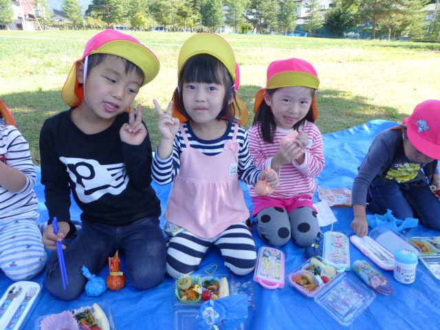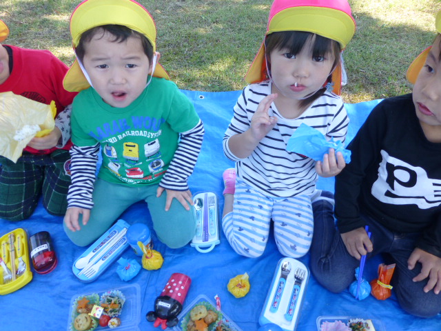 10月10日(木)さくら1,2組(年少児)さんが高畠町の中央公園に園外保育に行ってきました。