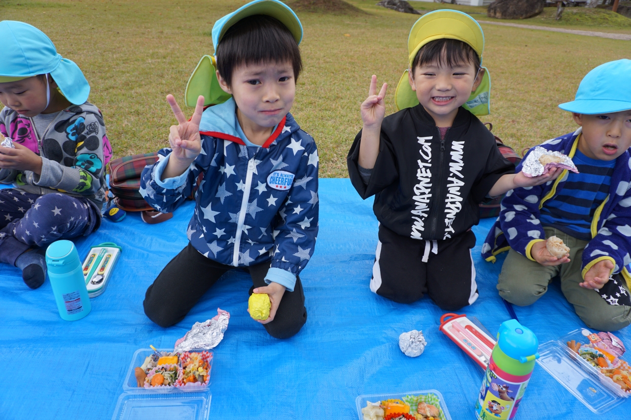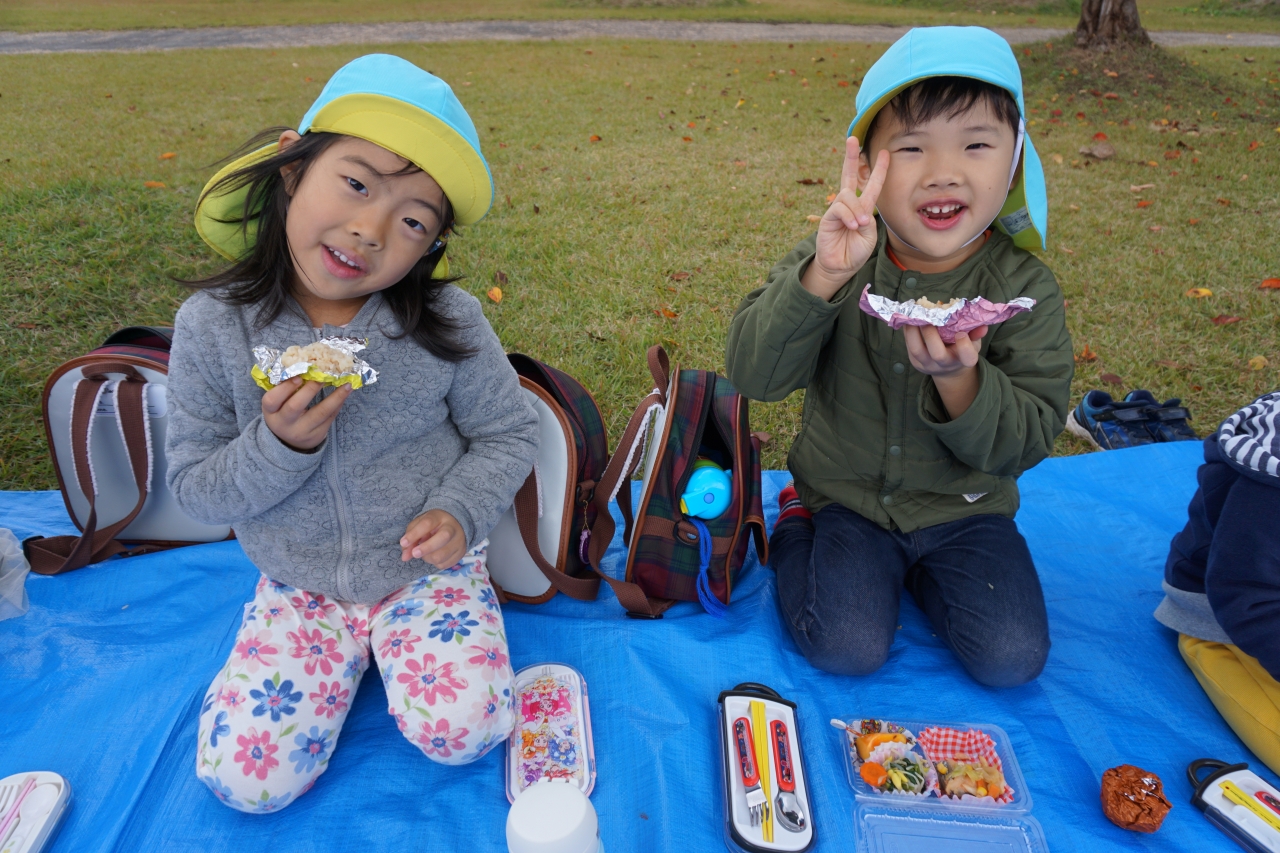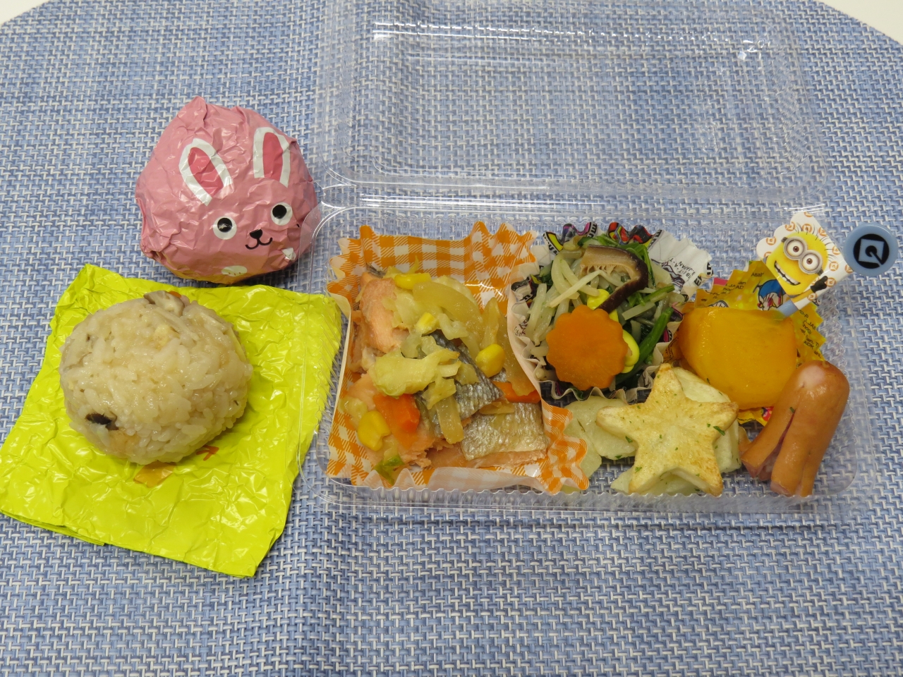たくさん遊んだあとは、給食の先生が作ってくれたお弁当を食べました。
