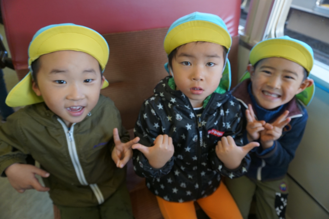 いつも園庭から、電車や新幹線を見ていますが、実際に自分達が乗るという経験ができるこの日を子ども達も楽しみにしていました。