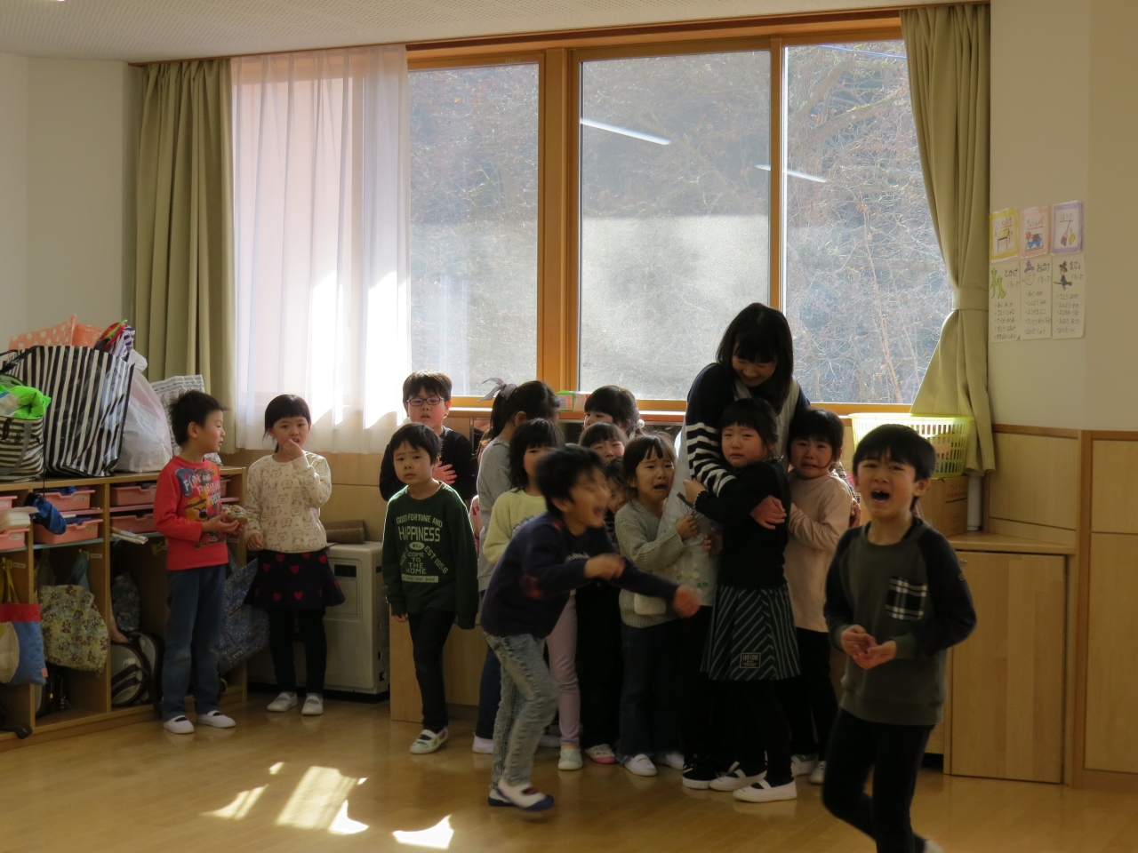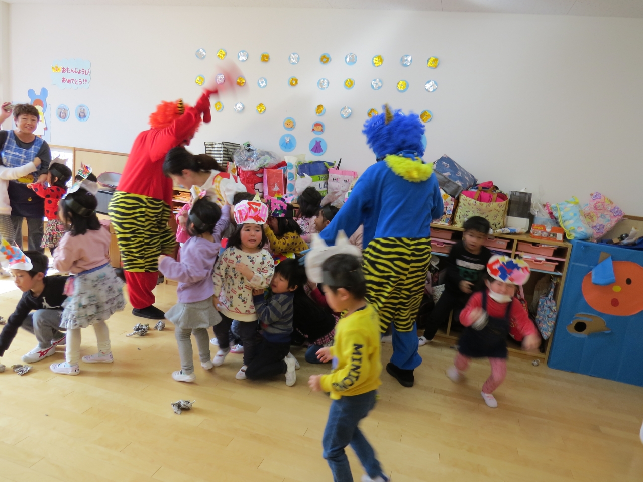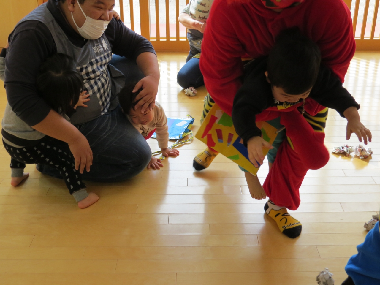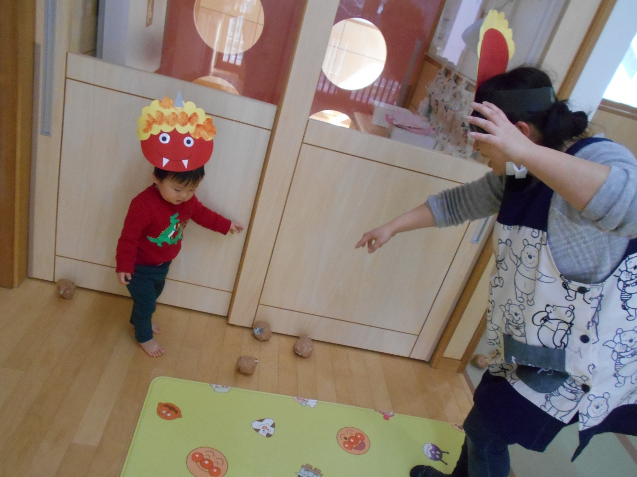鬼はいつやってくるのかな??そんな不安を抱えながら、ひよこ組さんとりす組さんはお部屋で遊んでいました。