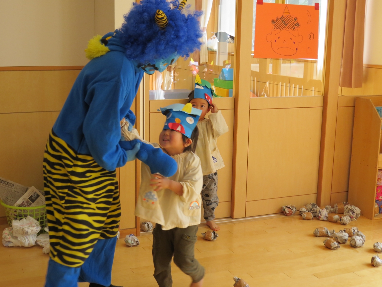 ぱんだ組さんと幼児さんは、集会を行いましたがそこでは鬼は現れず、今年は来なかった!と安心して部屋に戻り、各クラス活動をしました。