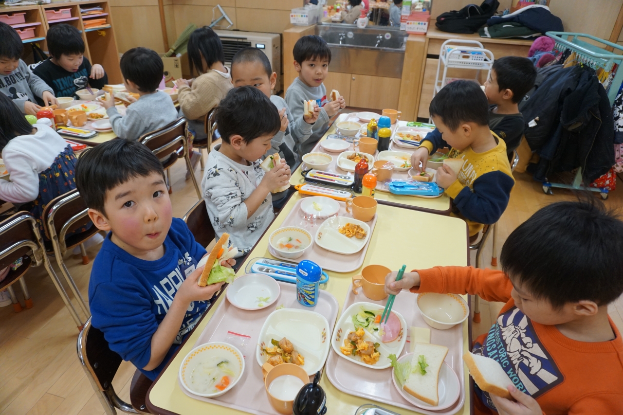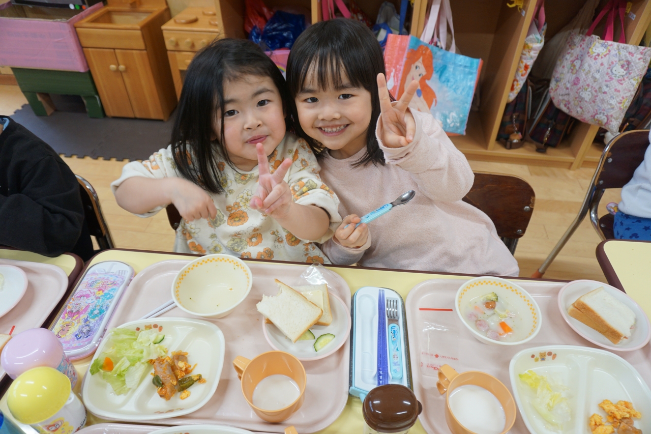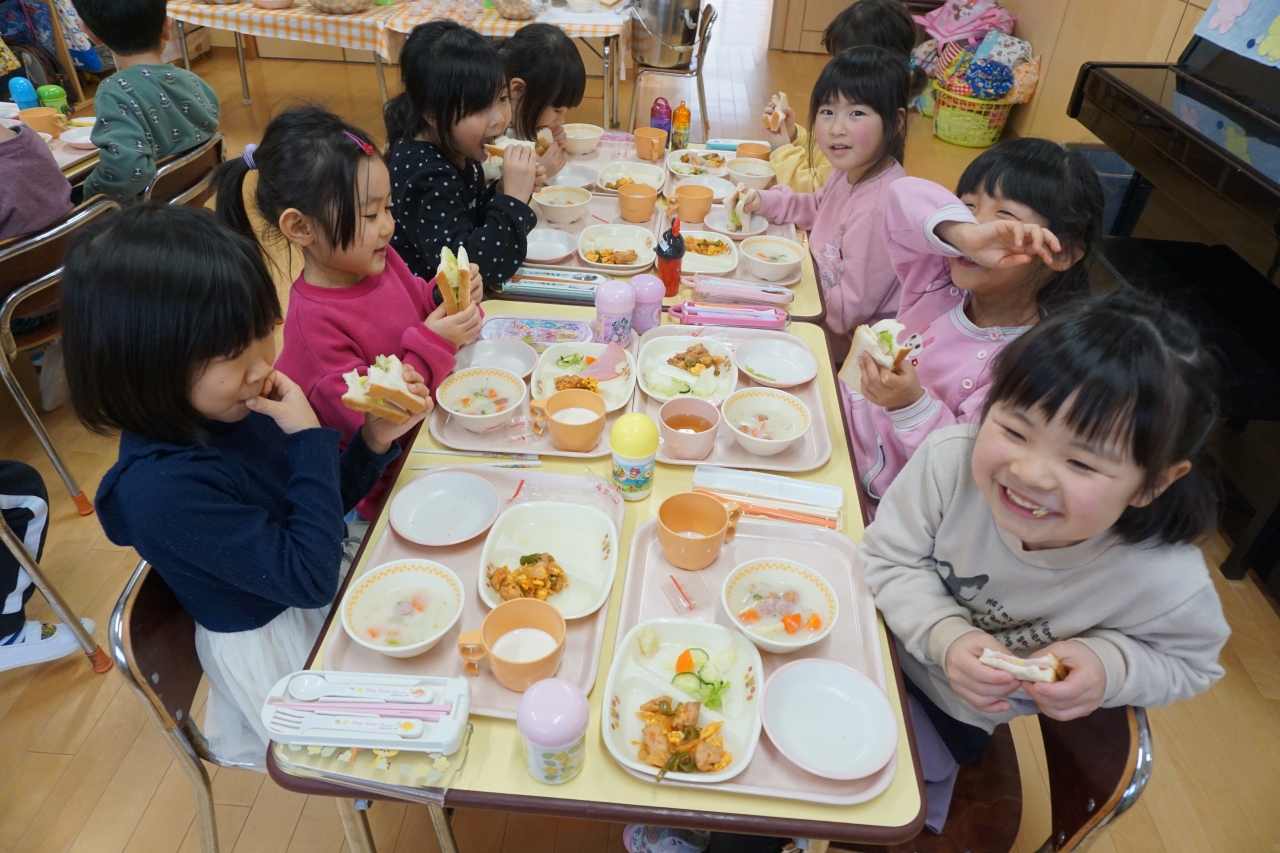 各クラスでお料理したものがひとつひとつのメニューにしっかり入っていました。みんなでお料理した給食は、いつも以上に美味しく感じることができ、子ども達の表情からは、満足した様子が十分に伝わってきました。機会がありましたら、お家でお子さんと一緒にお料理を楽しんでみて下さい♡