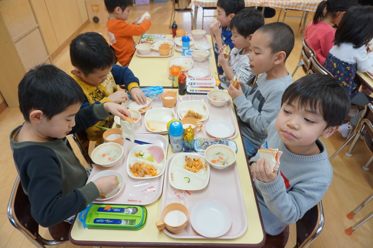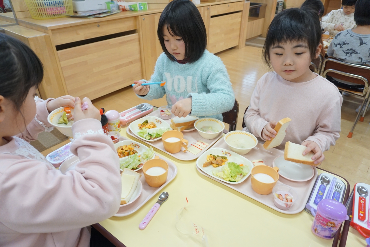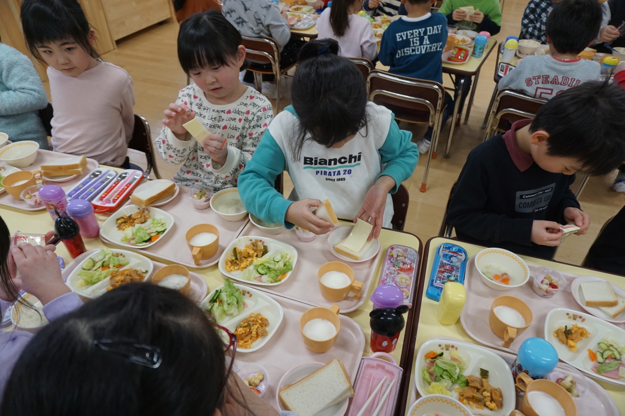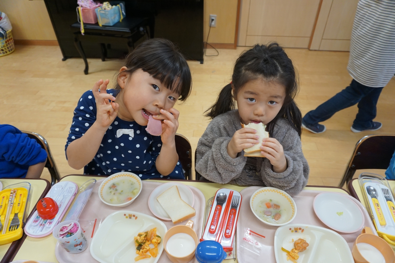 各クラスでお料理したものがひとつひとつのメニューにしっかり入っていました。みんなでお料理した給食は、いつも以上に美味しく感じることができ、子ども達の表情からは、満足した様子が十分に伝わってきました。機会がありましたら、お家でお子さんと一緒にお料理を楽しんでみて下さい♡