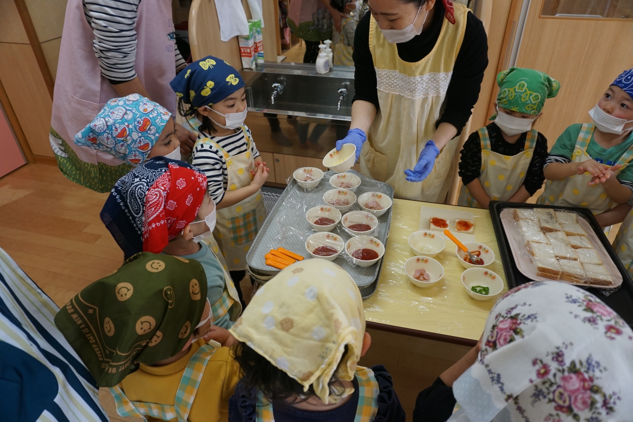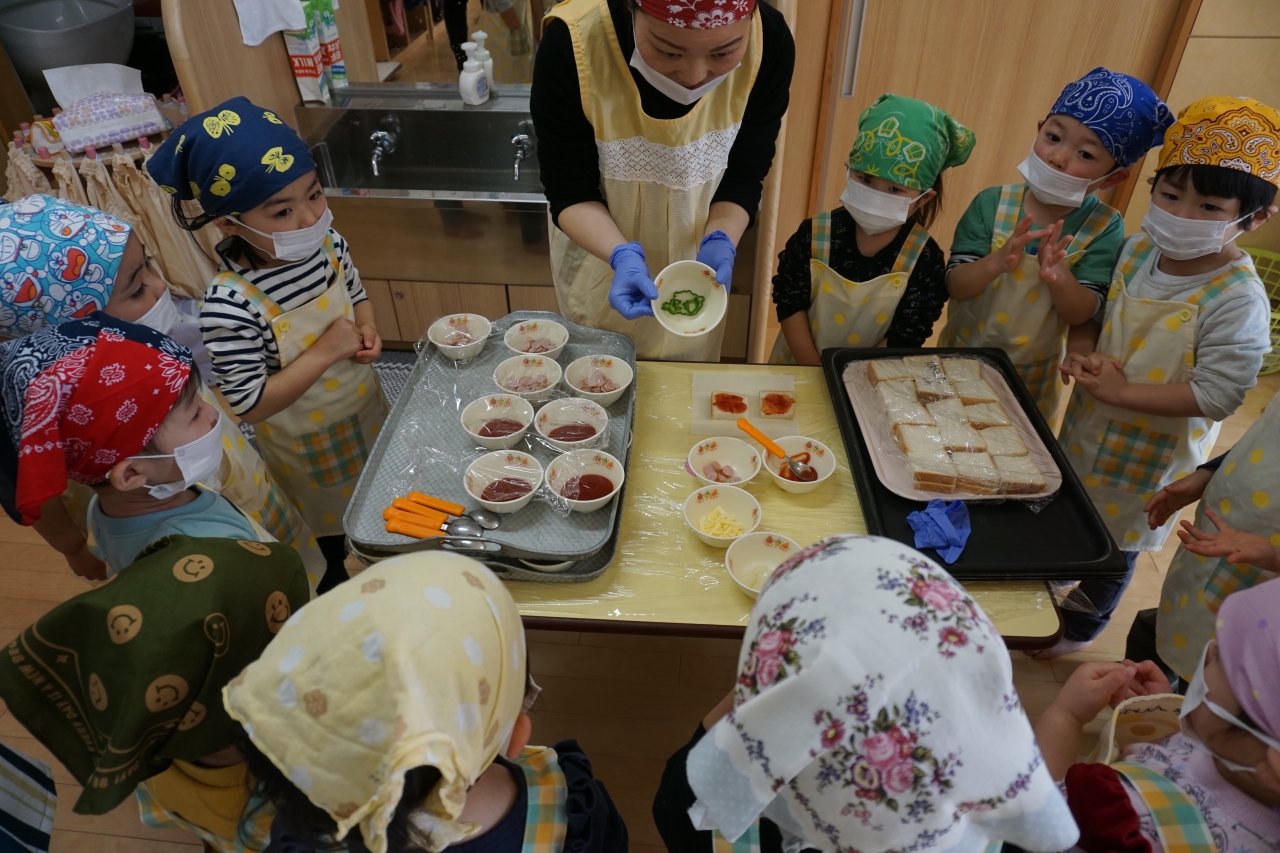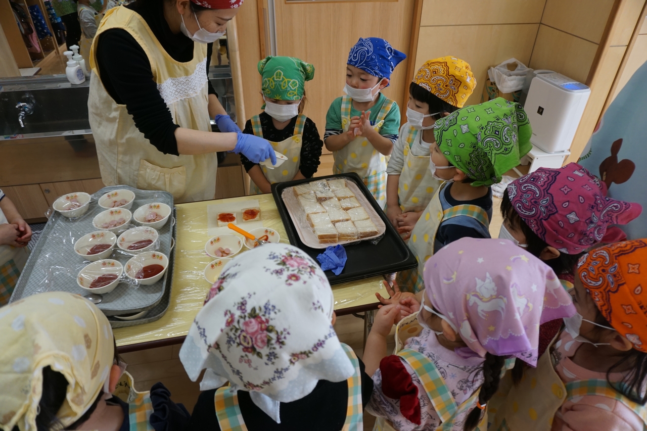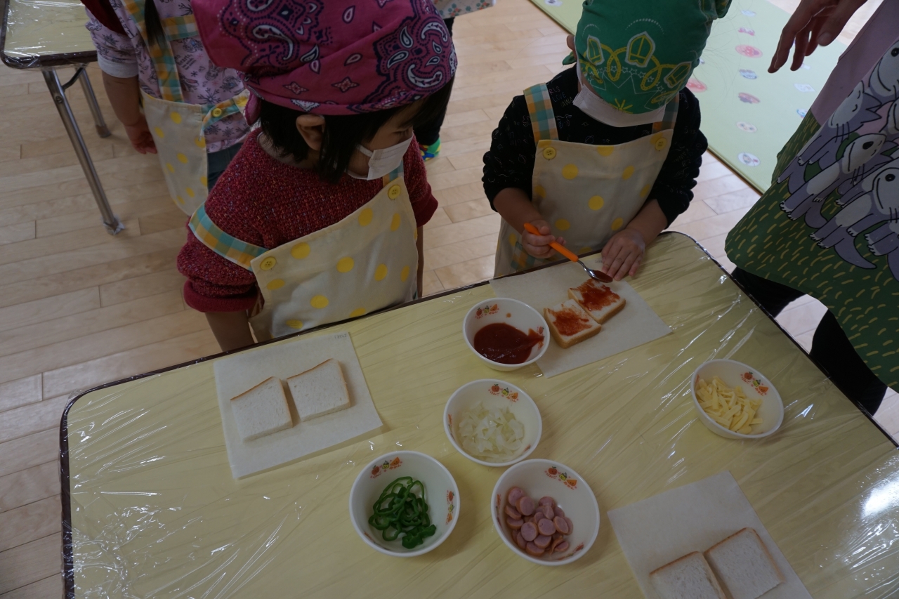 3月5日(木)にぱんだ組さんがピザトースト作りを行いました。