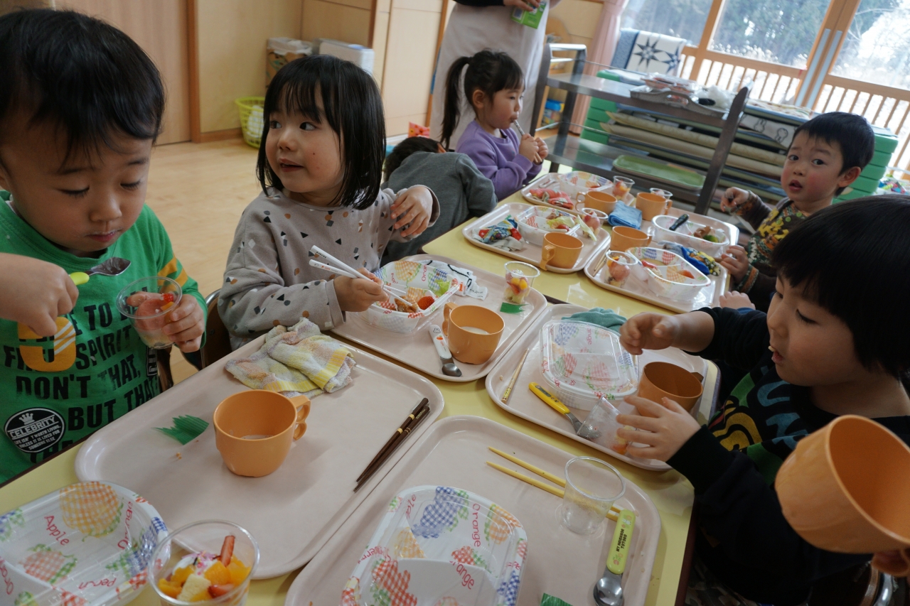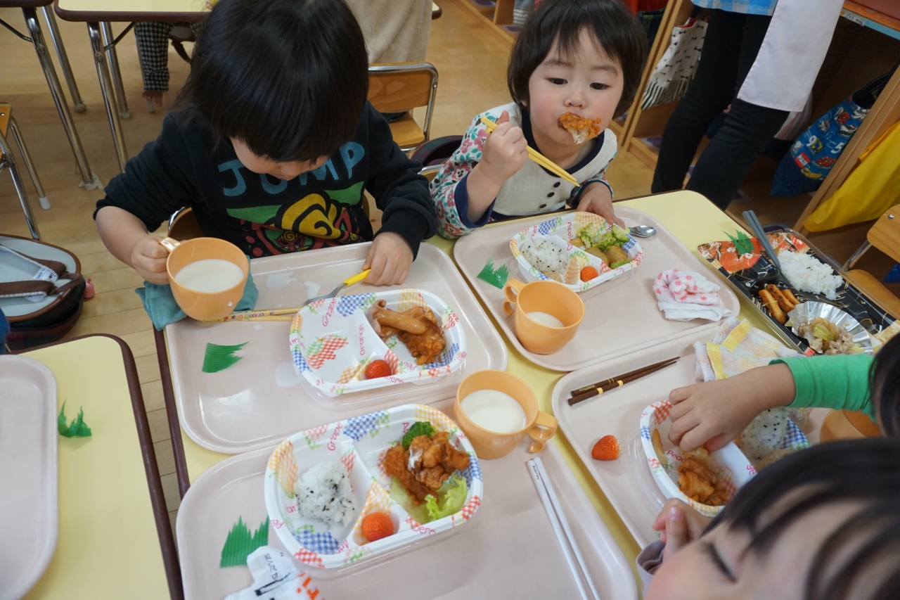 3月6日の給食は、盛沢山のお弁当にパフェでした。