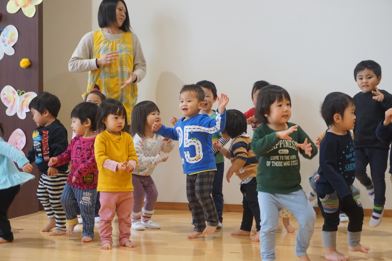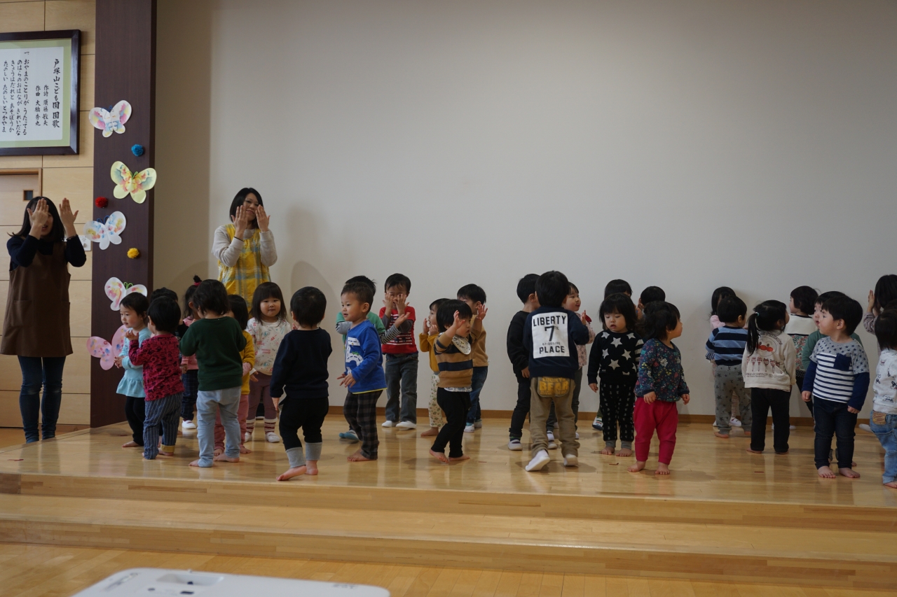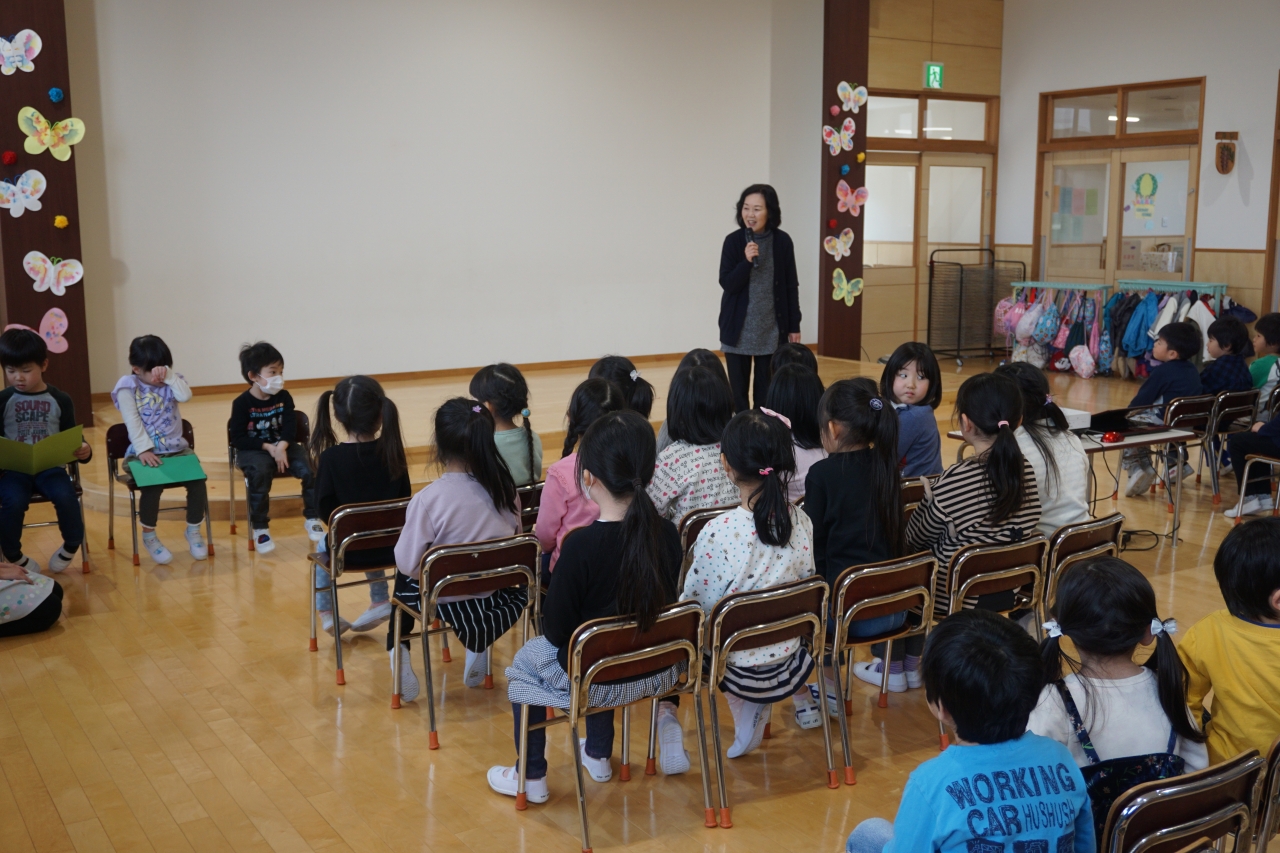 その中で、この回を進め中心となったのが年中さんでした。会の進行や劇のプレゼントなどを年長さんには内緒で頑張って練習してくれていました。年少さんは、歌のプレゼントと手作りのマグネットをプレゼントし、乳児組さんは元気な踊りのプレゼントを贈りました。