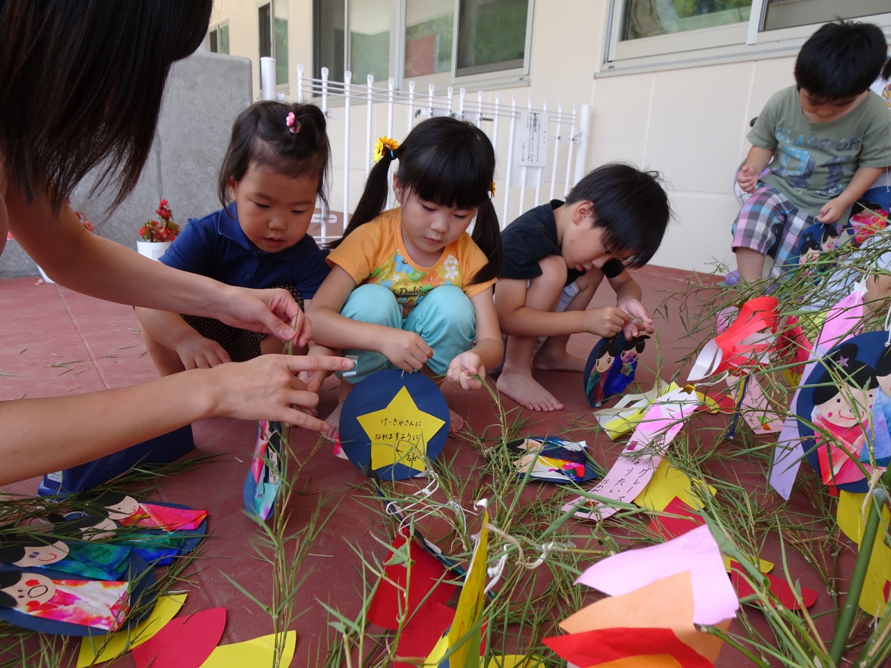 先週子どもたちと一緒に七夕の飾りつけをしました♪