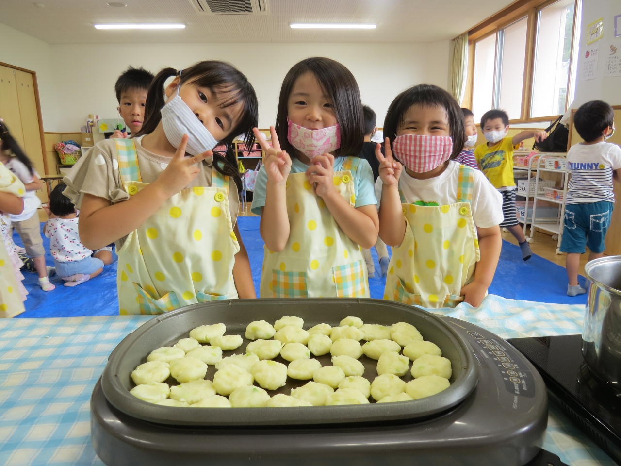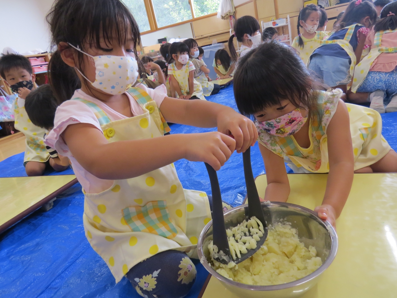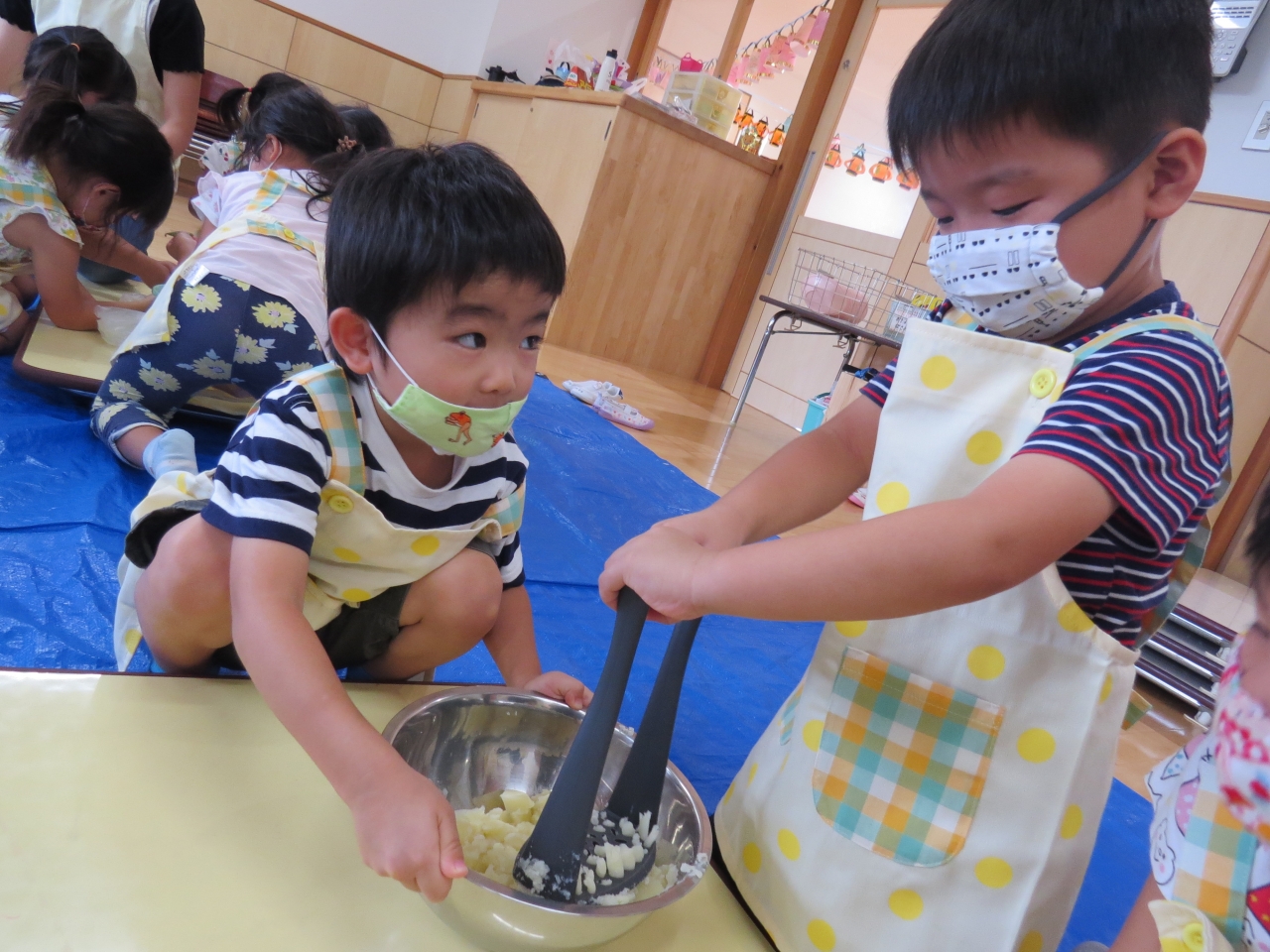 年中組さんが育てたじゃがいもと枝豆を使って、じゃがもち作りをしました!