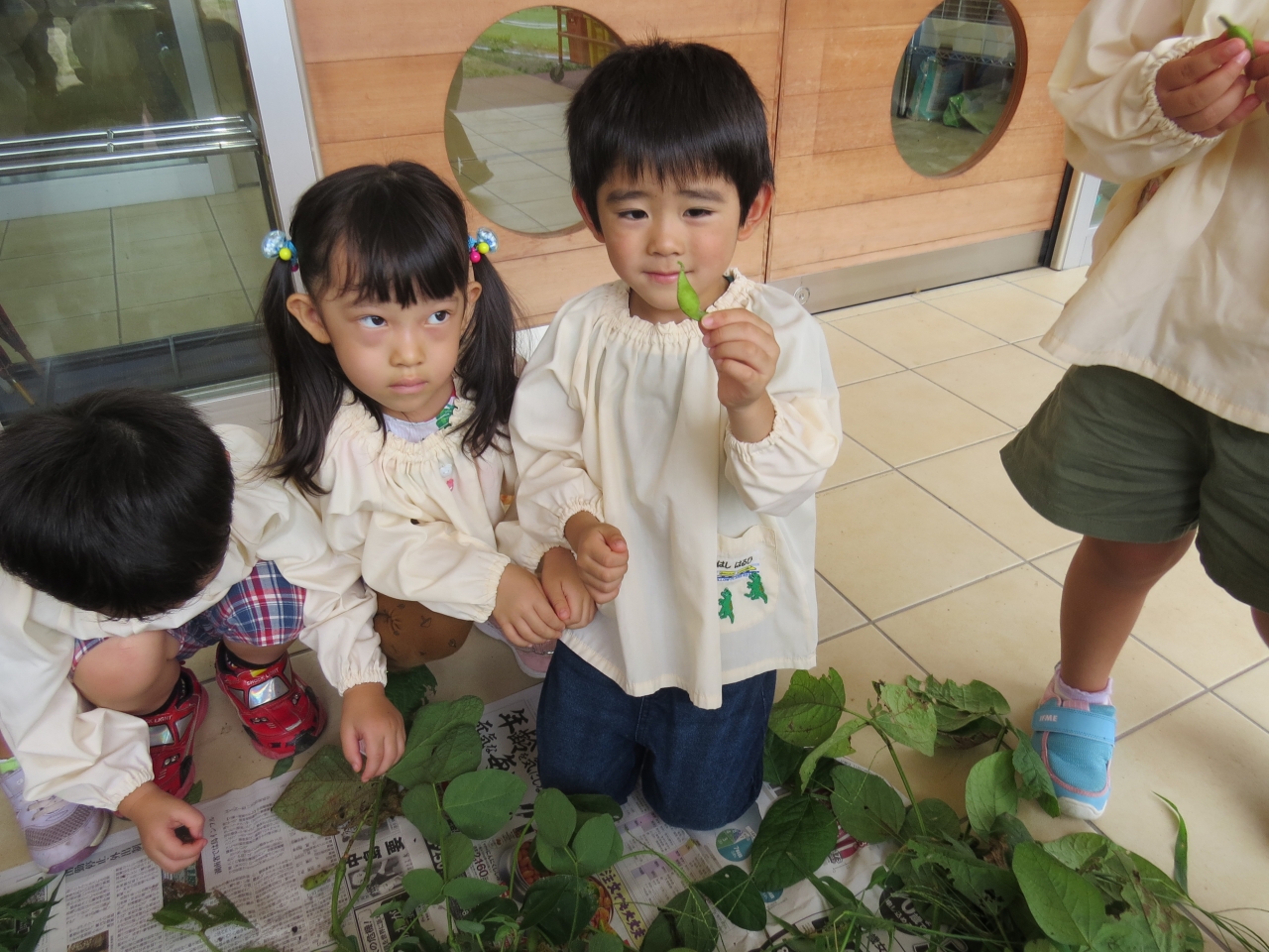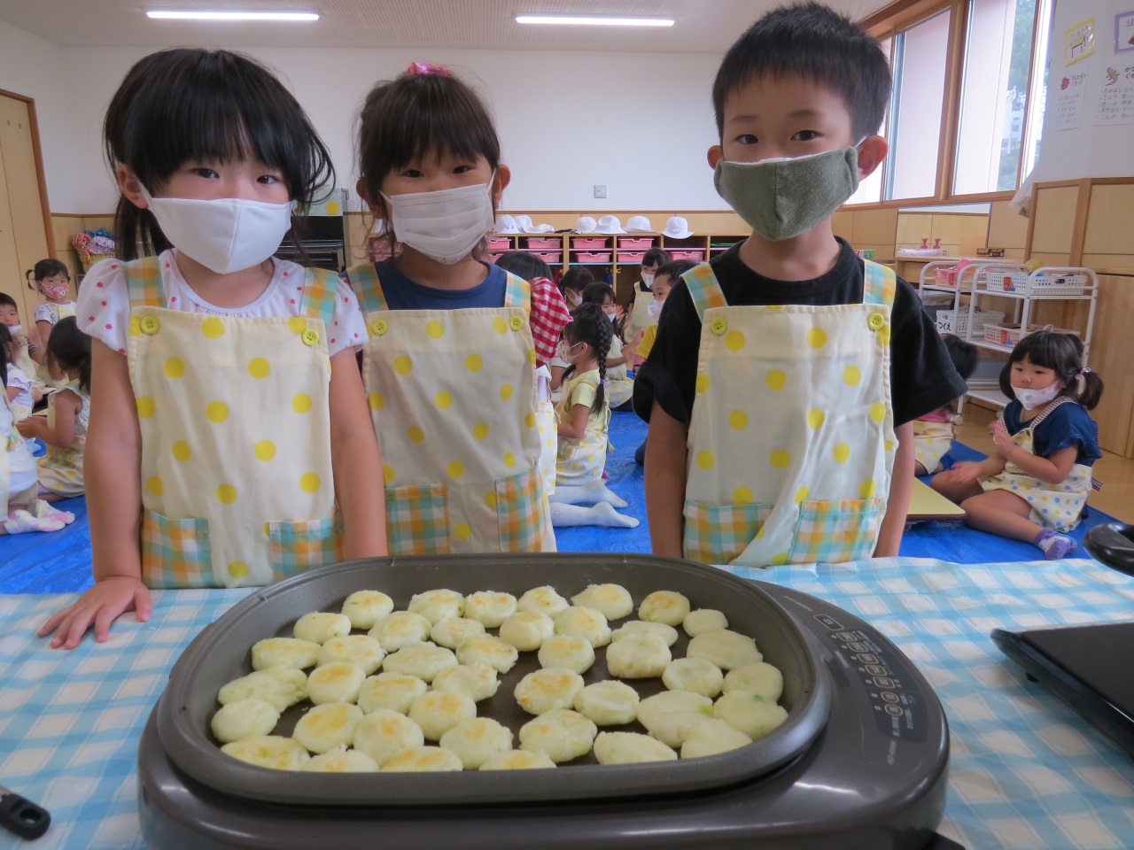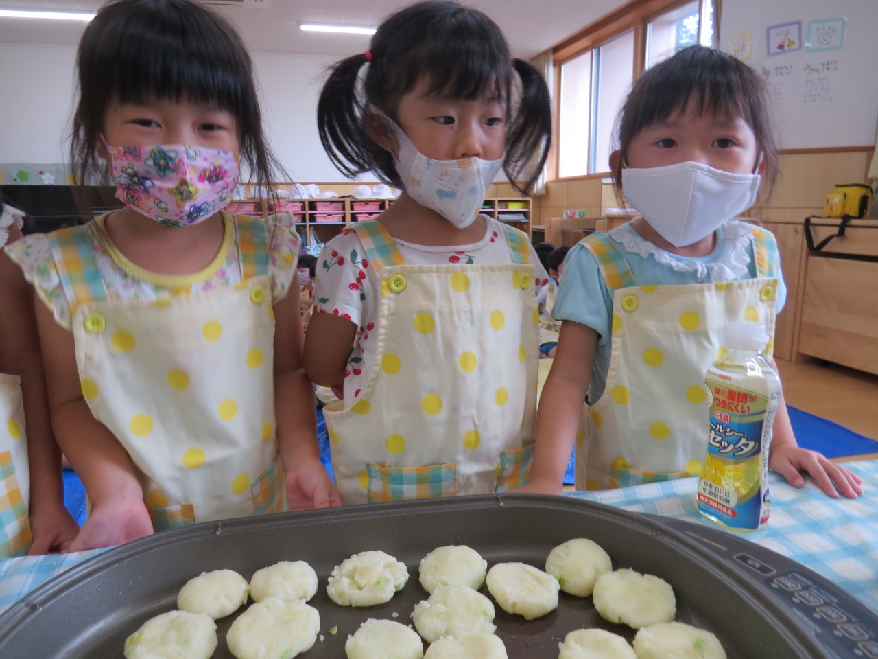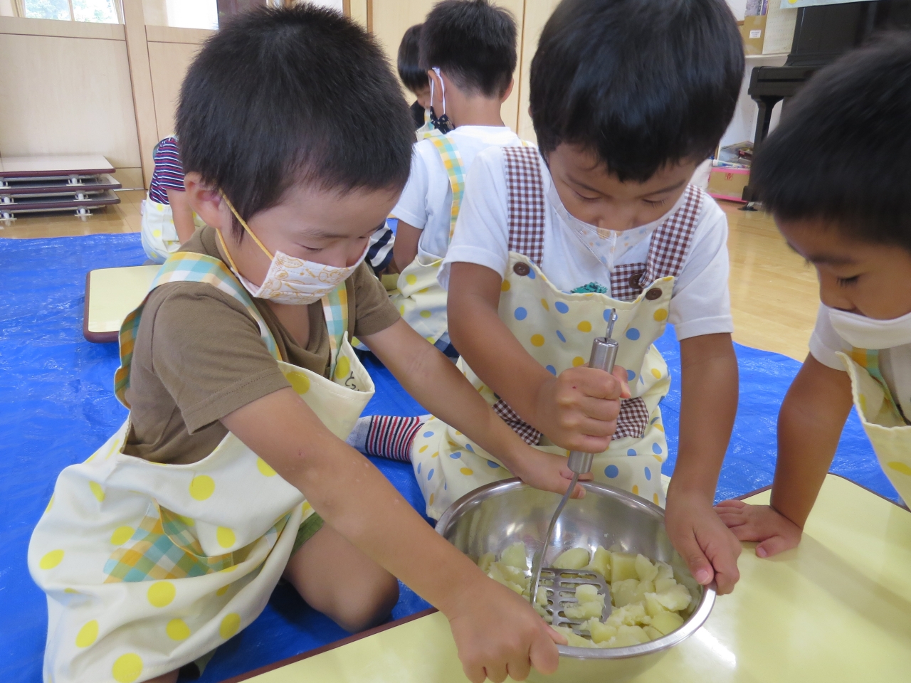 年中組さんが育てたじゃがいもと枝豆を使って、じゃがもち作りをしました!