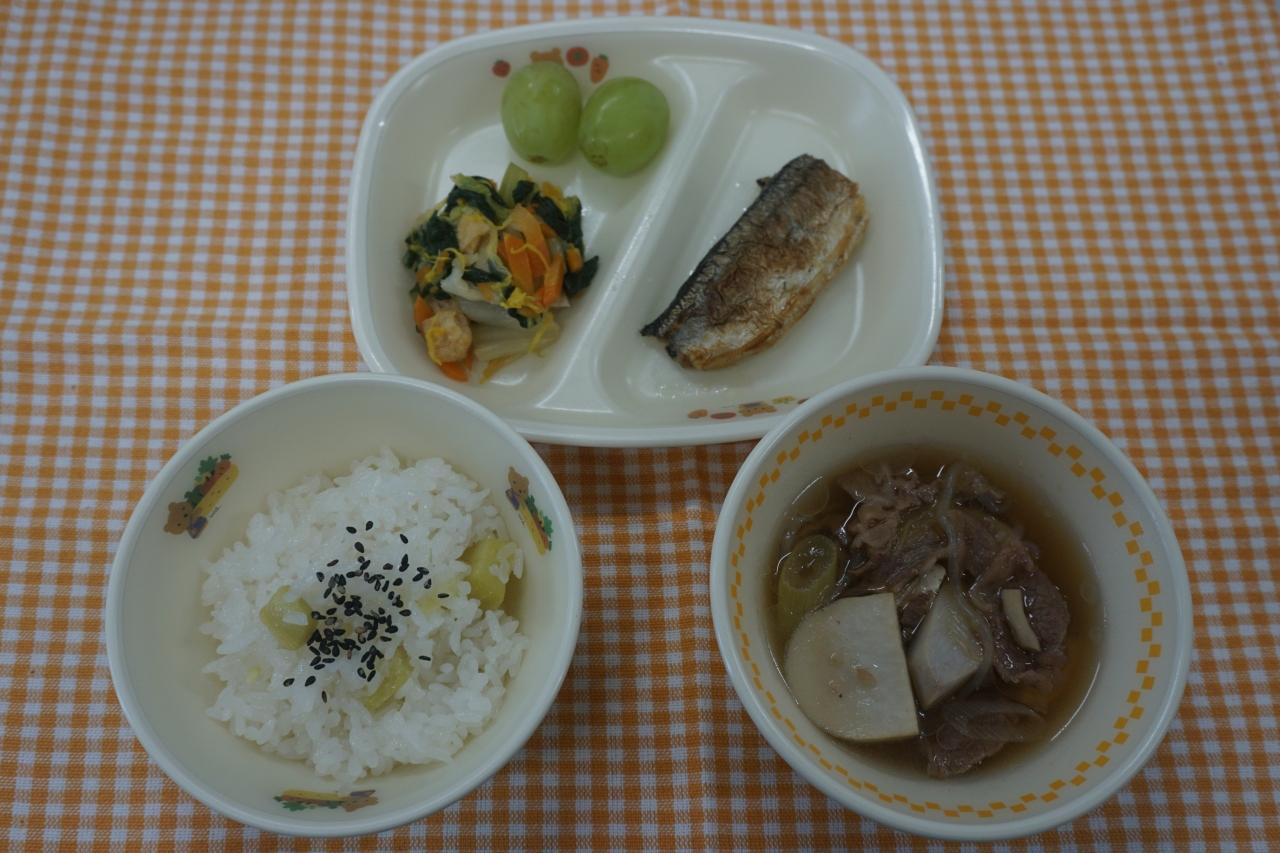 本日は、毎年おいしくいただいている、秋の味覚たっぷりの給食でした。