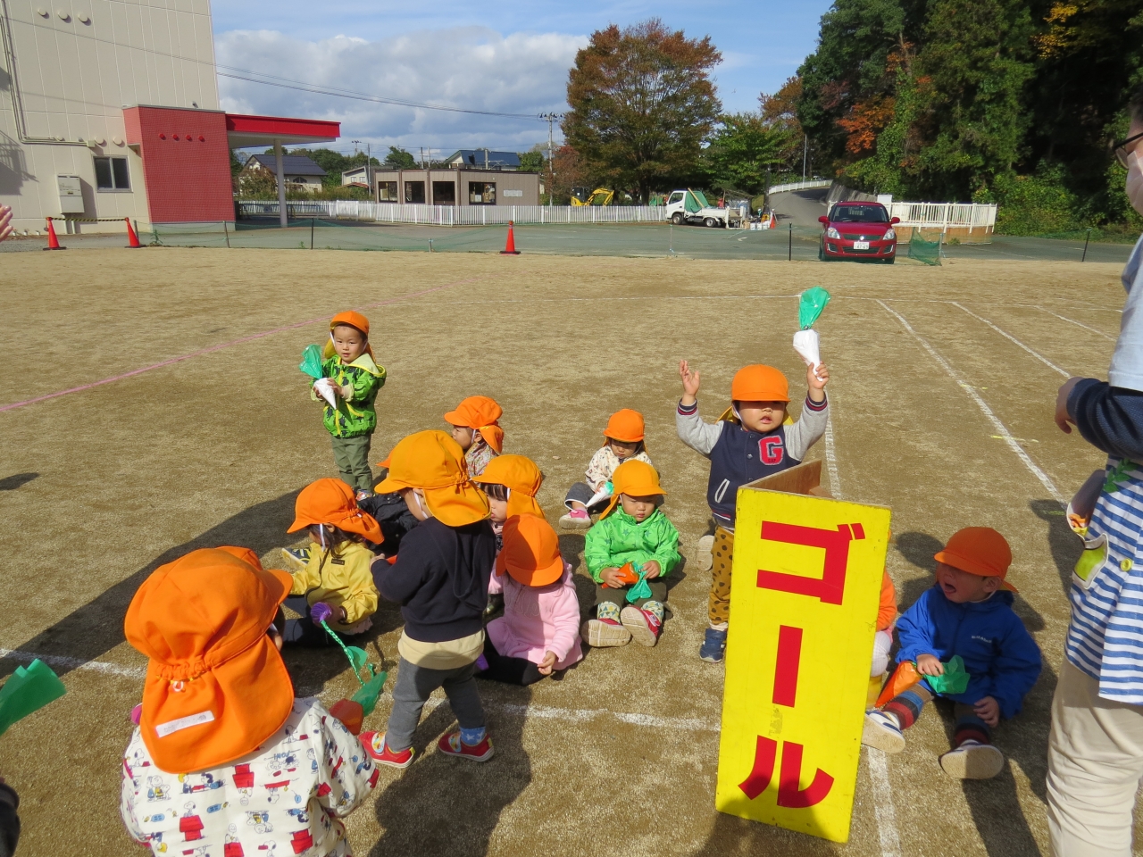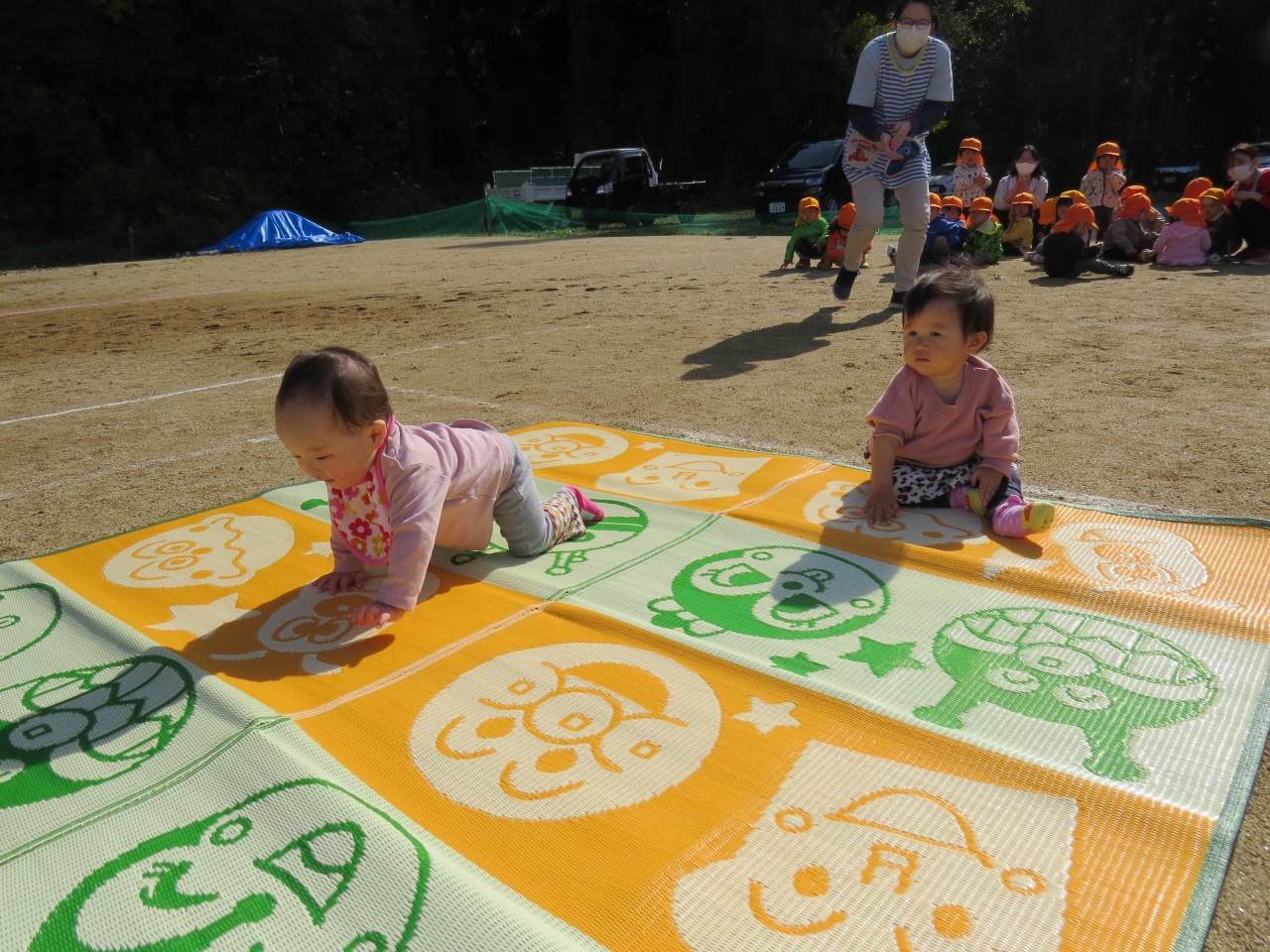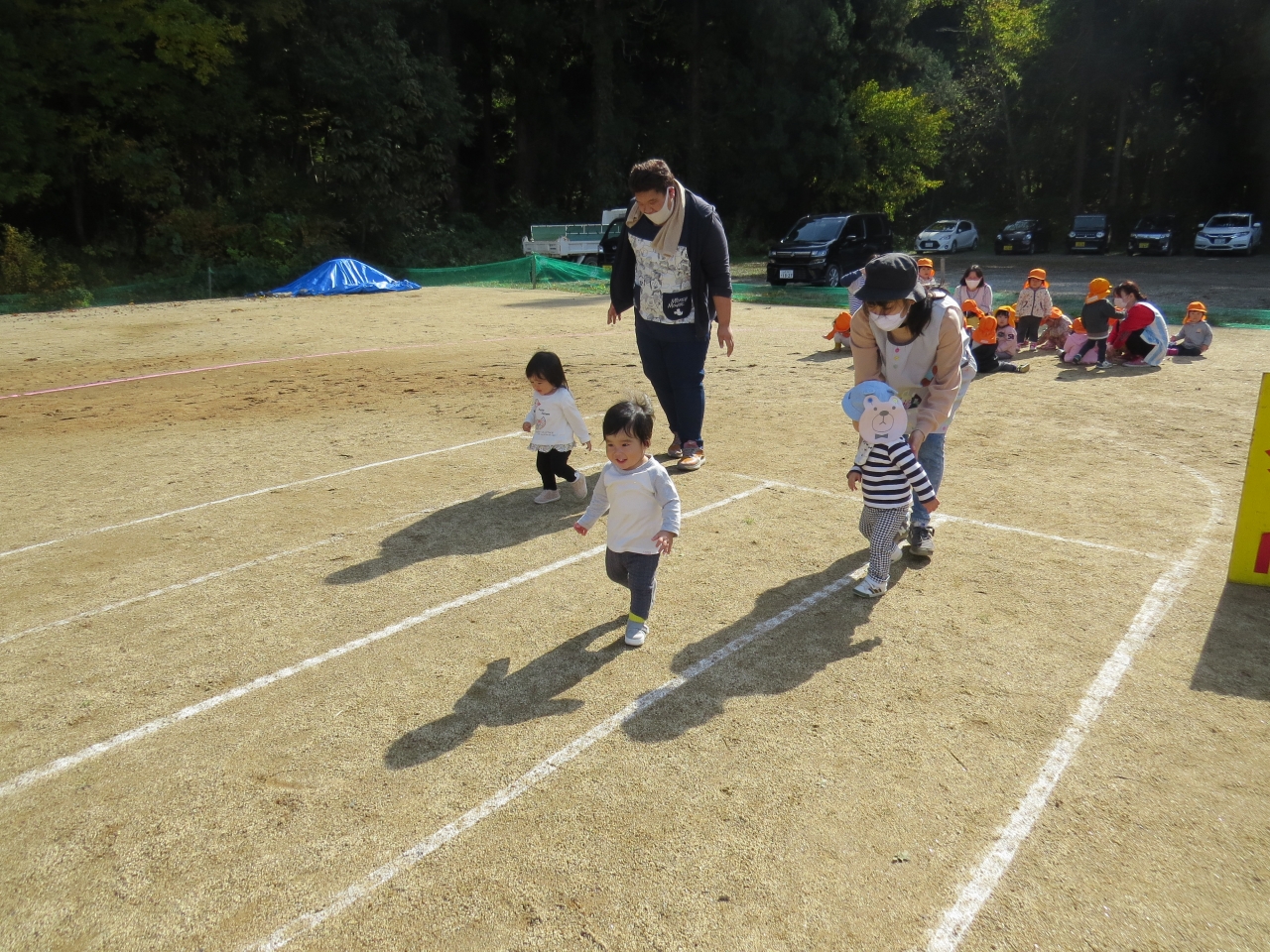 ひよこ組さんは歩ける子も、ハイハイの子も、ゴール目指して一生懸命頑張りました。