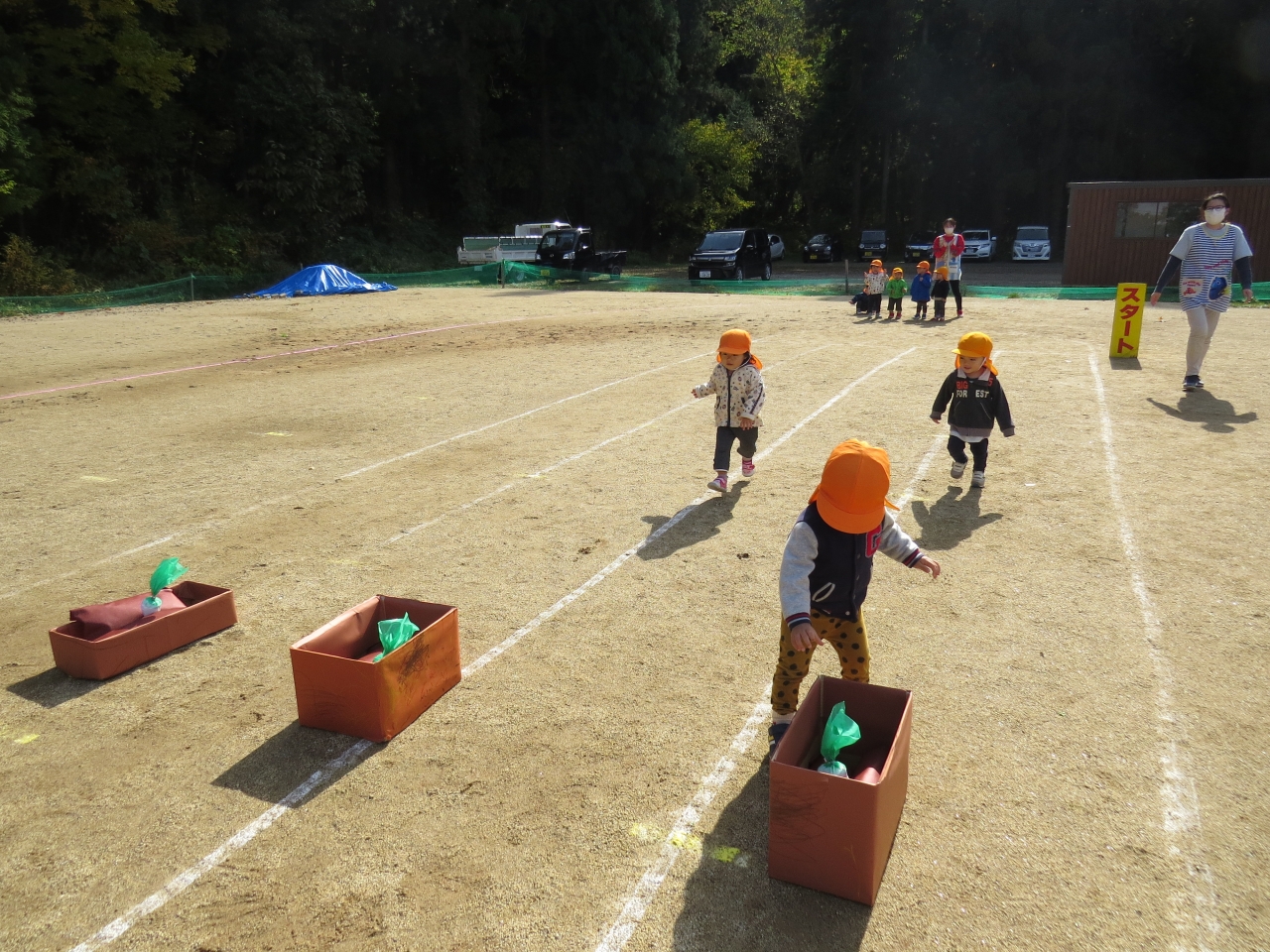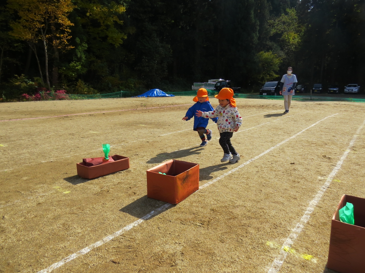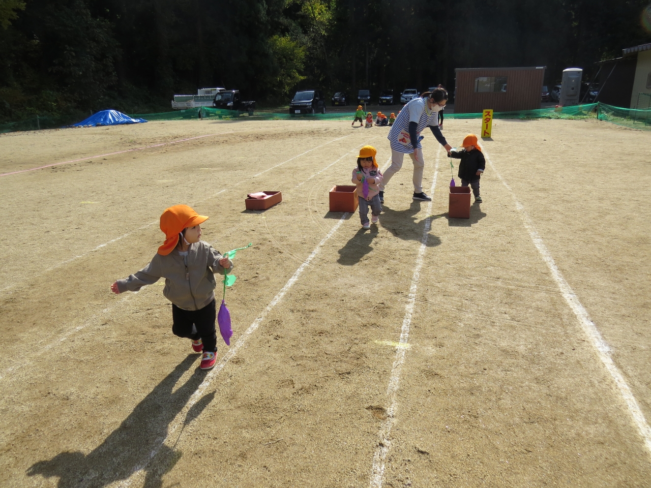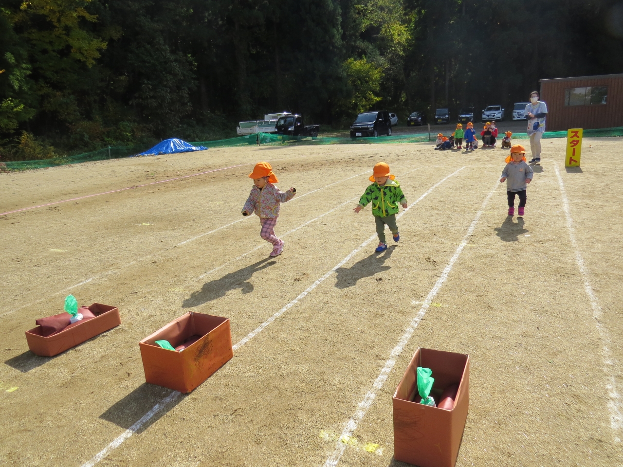 ひよこ組さんは歩ける子も、ハイハイの子も、ゴール目指して一生懸命頑張りました。