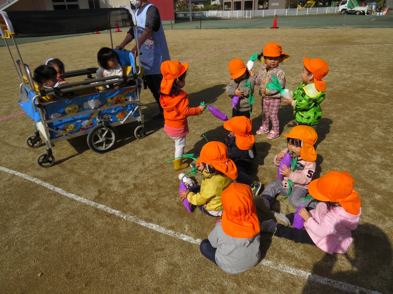 りす組さんは上手に走って野菜を収穫することができ、嬉しそうな笑顔でした。