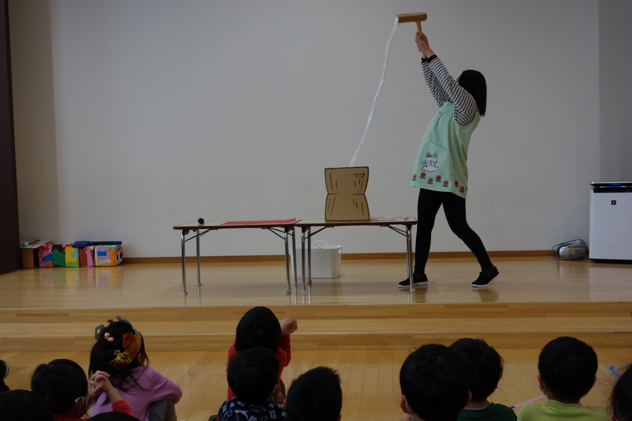 先生からの出し物はトイレットペーパーシアター「ペラペラちゃんとはらぺこちゃん」