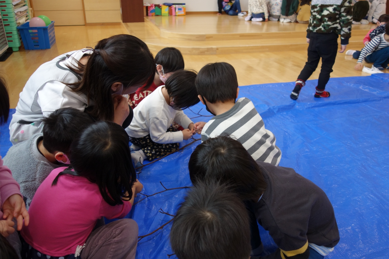 お誕生会の後は団子の木飾りをしました。今年もみんなすくすくと元気に育ちますように…★