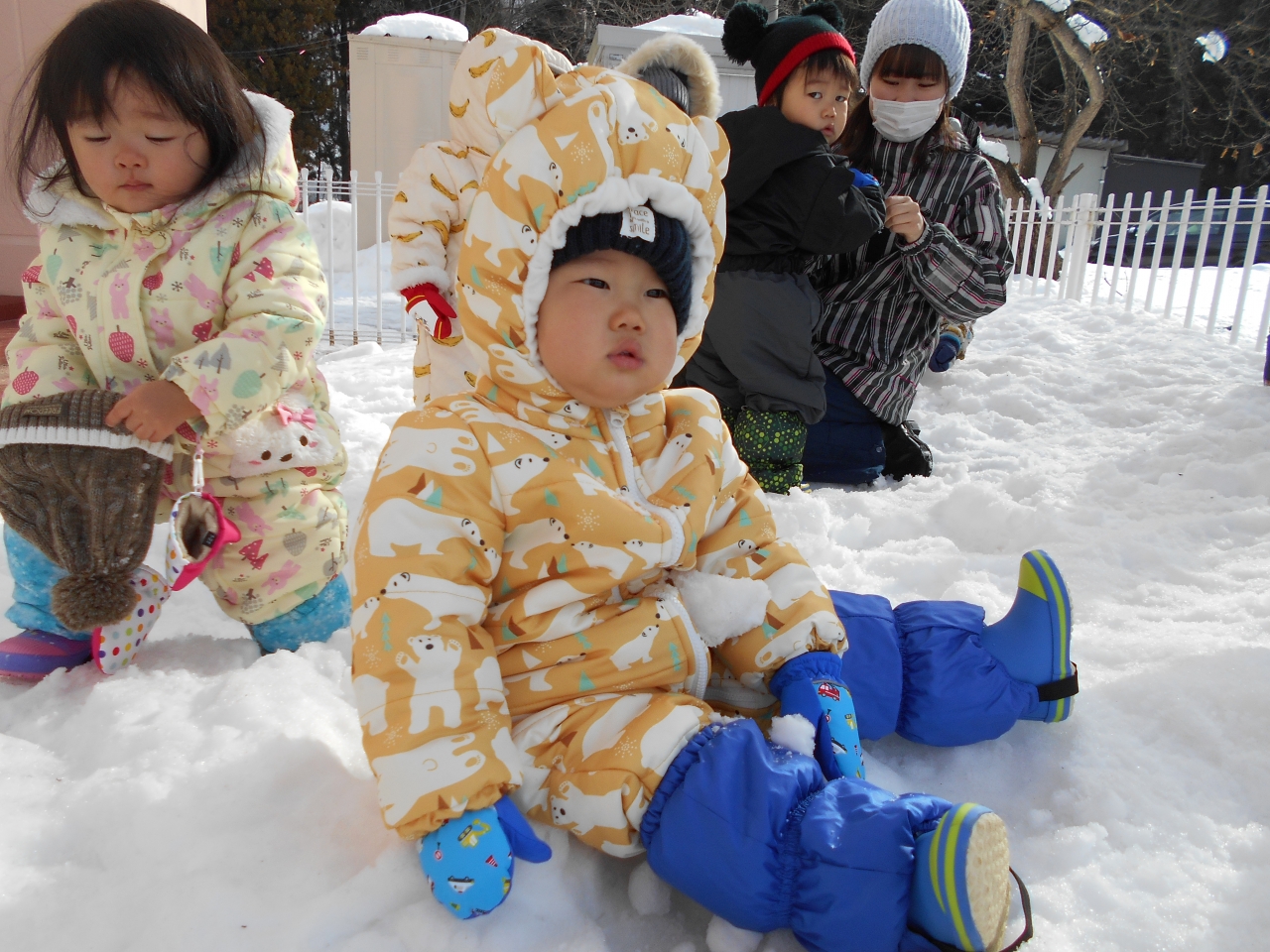 乳児組のお友だちも雪遊びを楽しんでおります!!