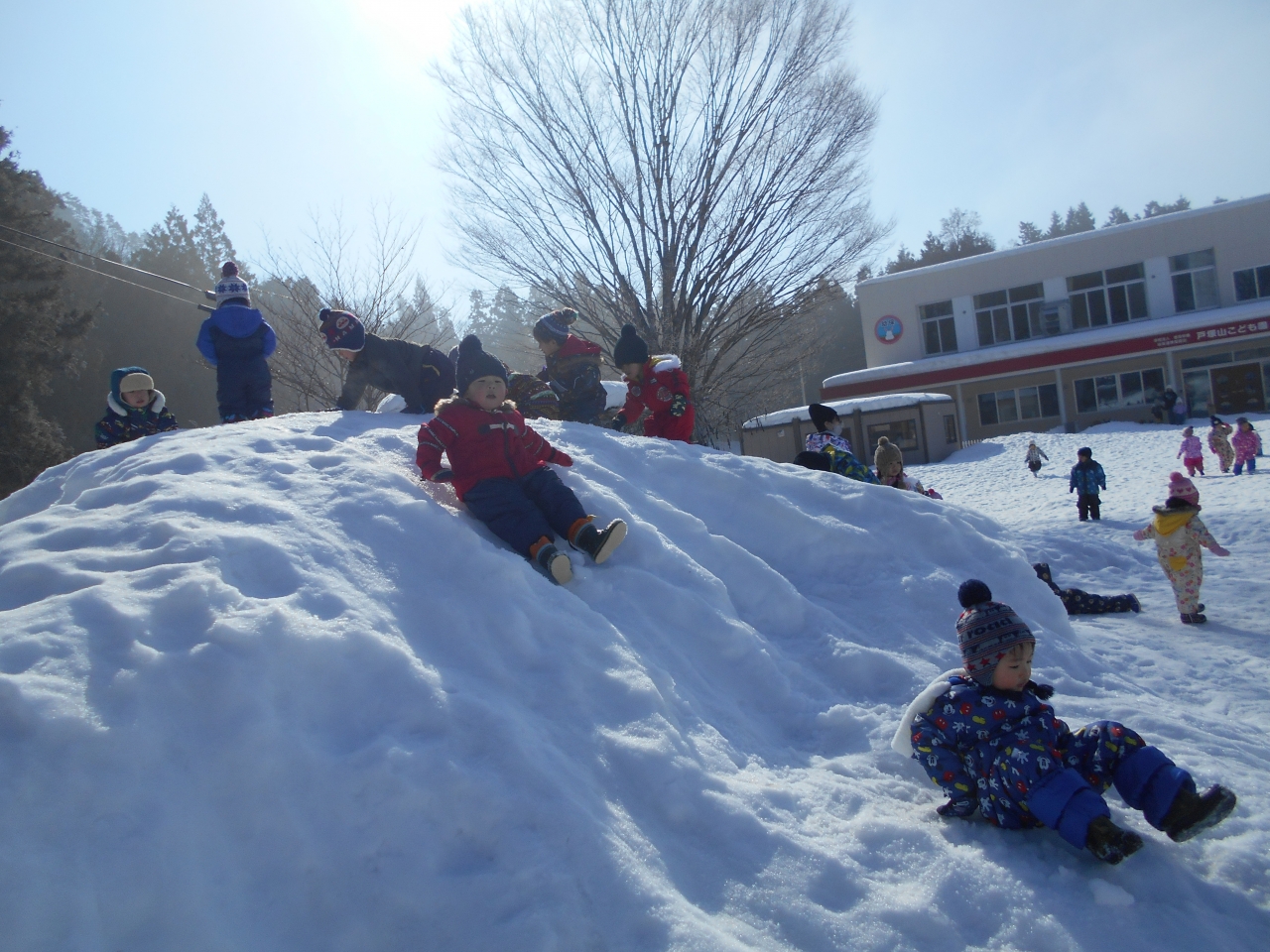 みんな雪山を「ヨイショ!ヨイショ!」頑張って登ります。たくましいですね!!